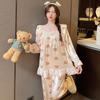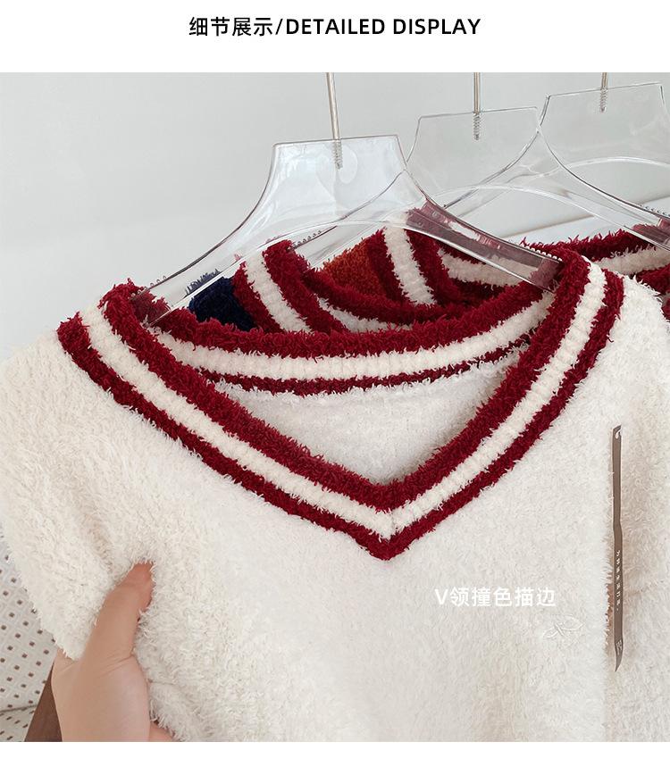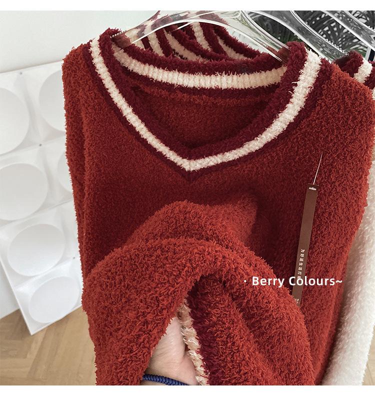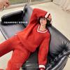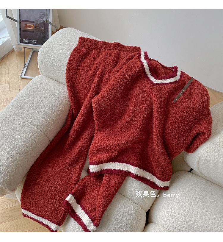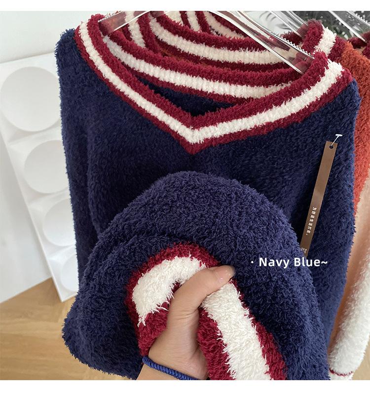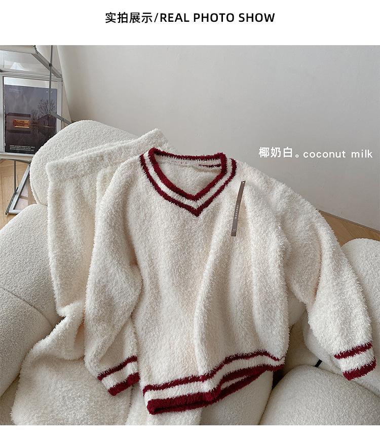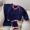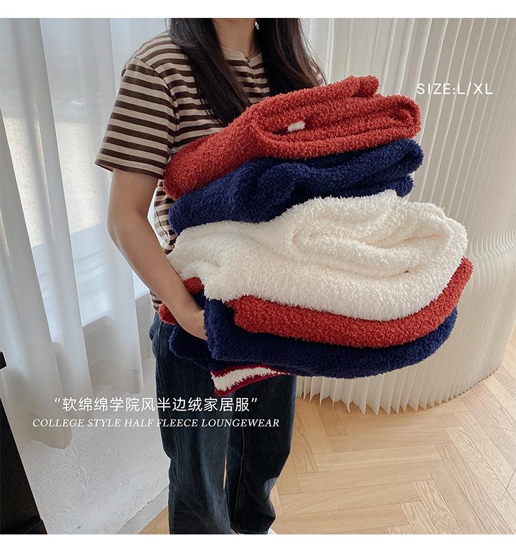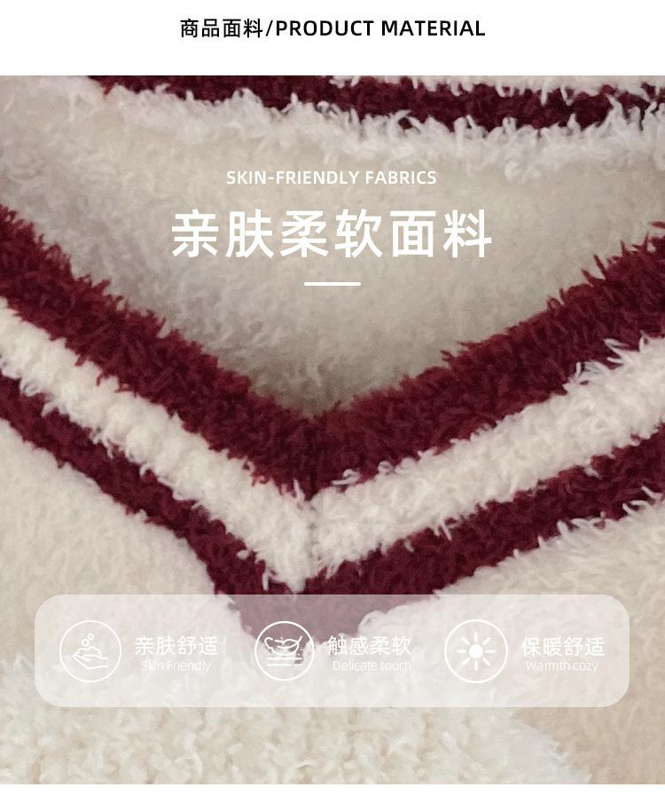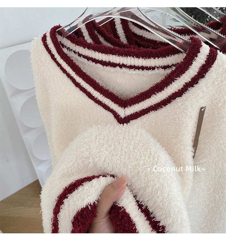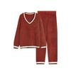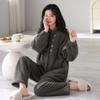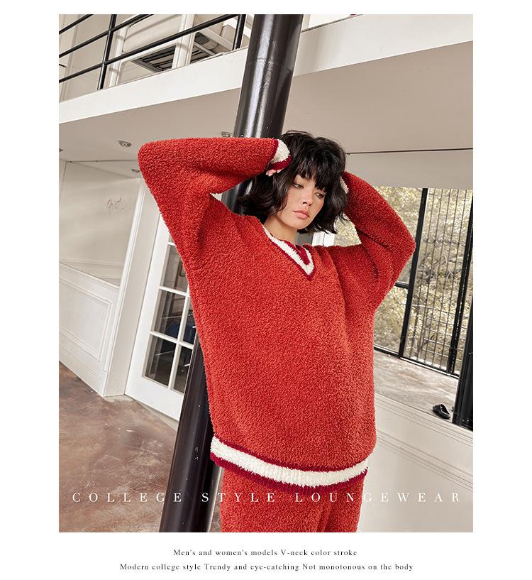 Otoño e Invierno suave cuello en V neutro estilo preppy pijama de mujer media felpa cálido grueso traje de uso en casa se puede usar afuera