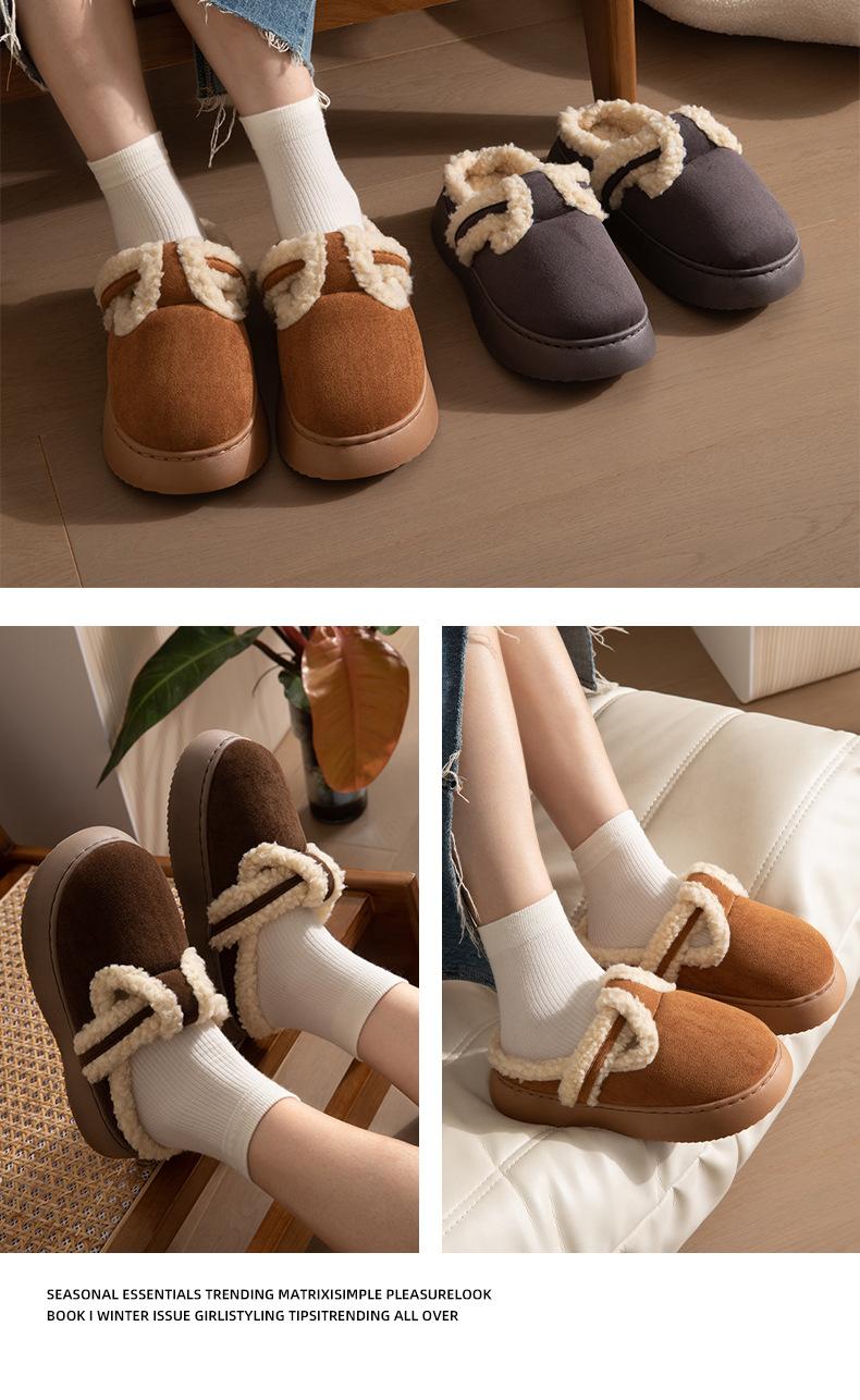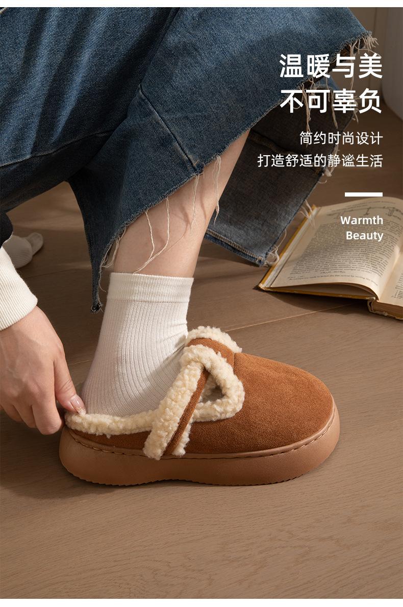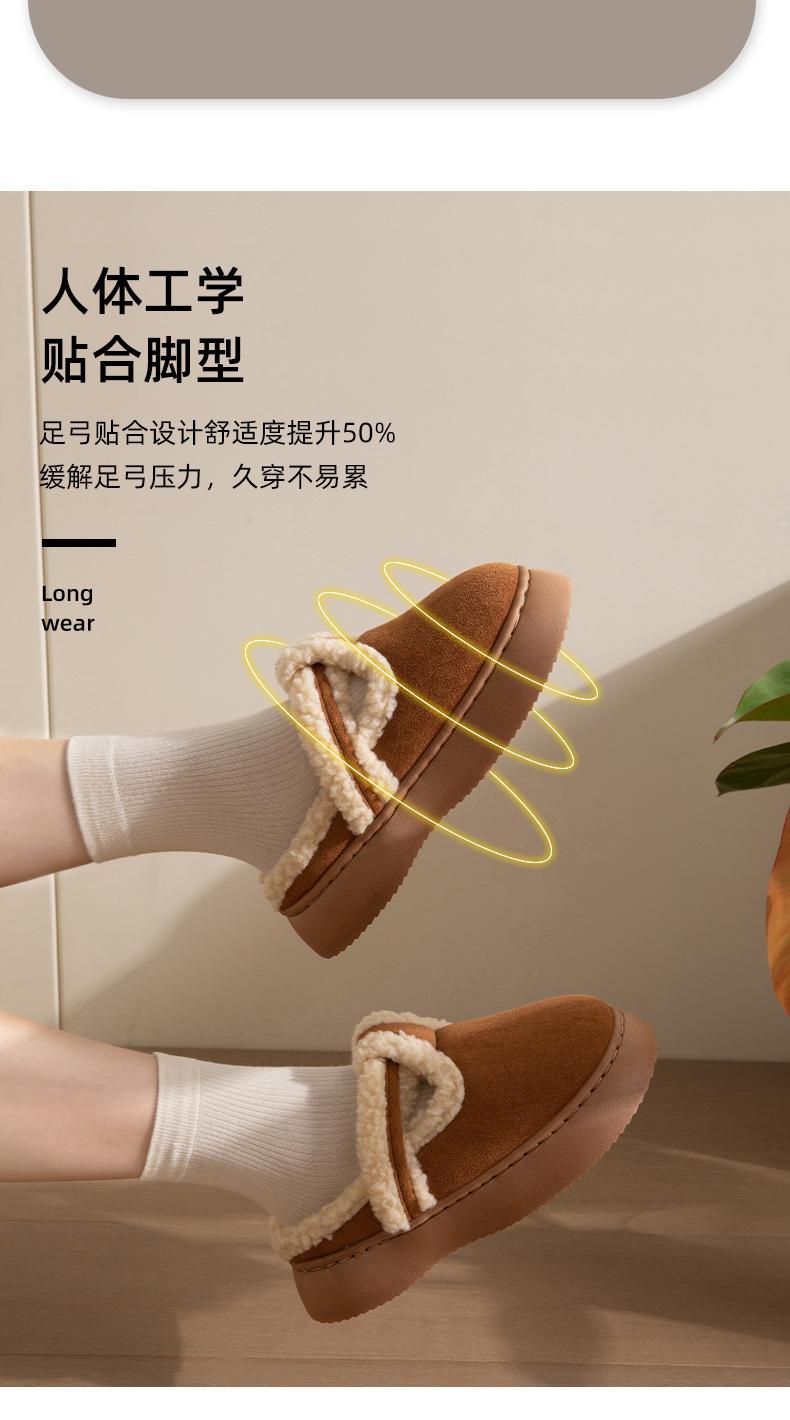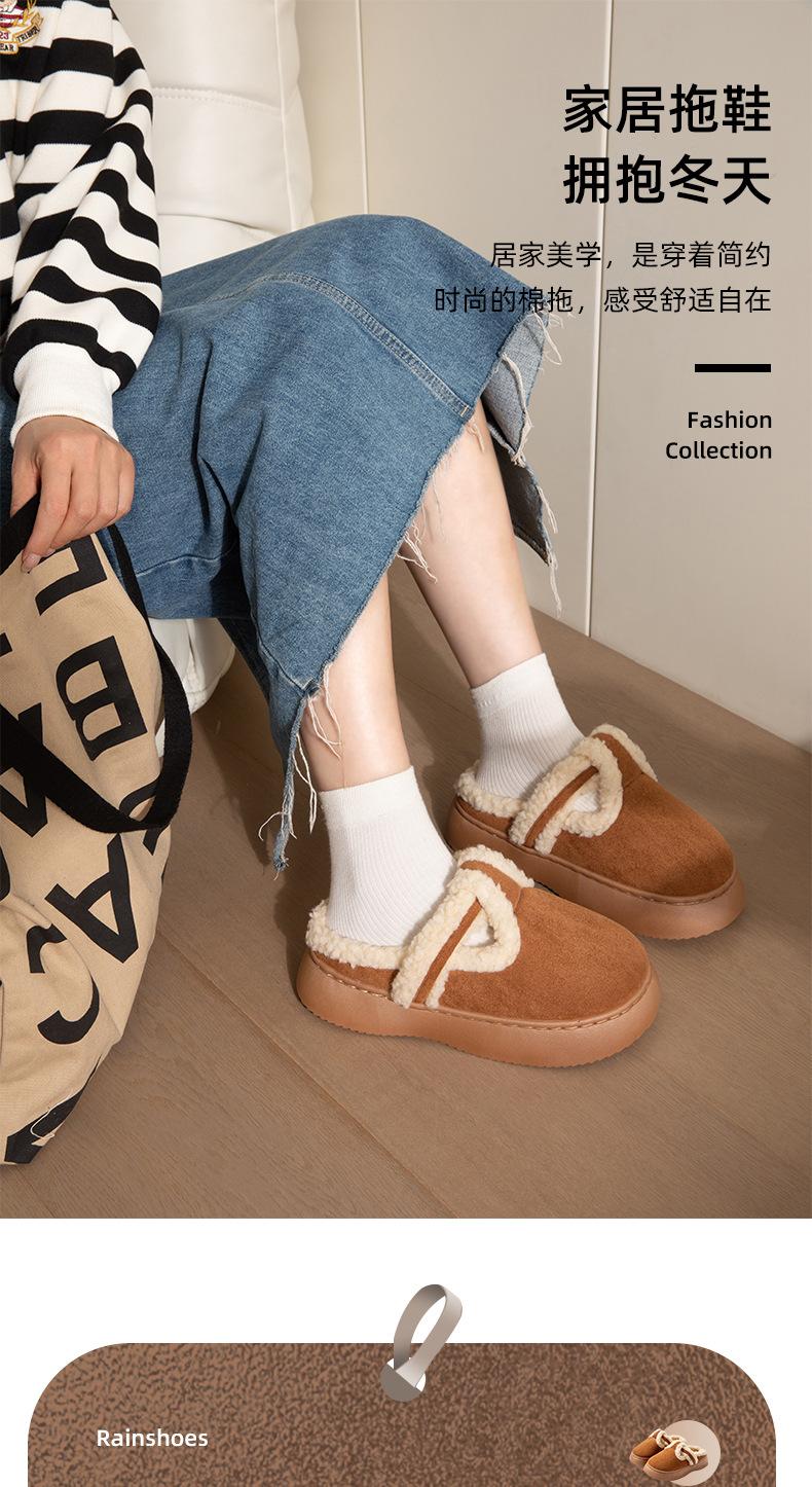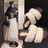Zapatillas de algodón al por mayor para mujer, otoño e invierno, gamuza, celebridades de Internet, ins, moda, todo en uno, cálidas, forradas en polar, ropa exterior, suela gruesa, zapatillas de lana con punta cerrada