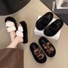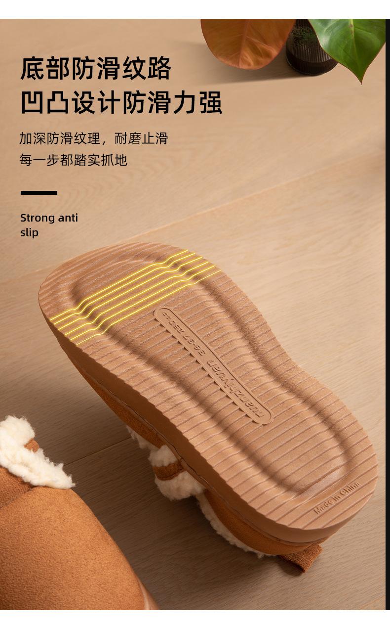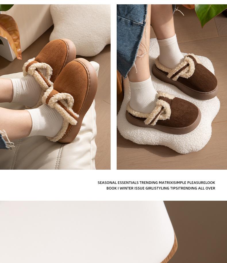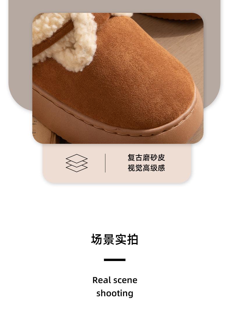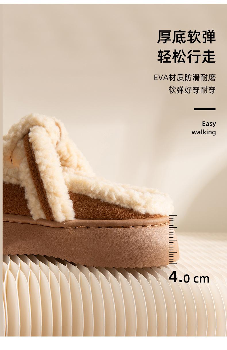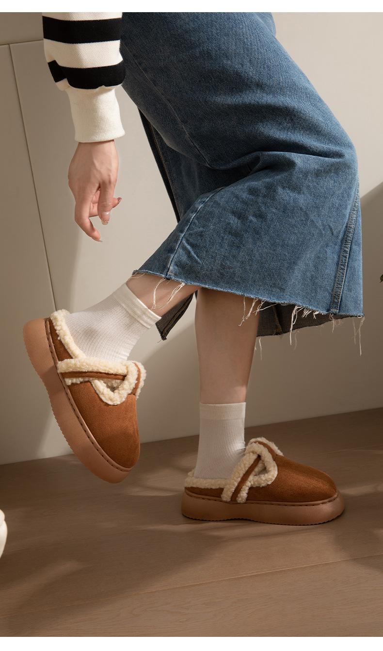 Zapatillas de algodón al por mayor para mujer, otoño e invierno, gamuza, celebridades de Internet, ins, moda, todo en uno, cálidas, forradas en polar, ropa exterior, suela gruesa, zapatillas de lana con punta cerrada