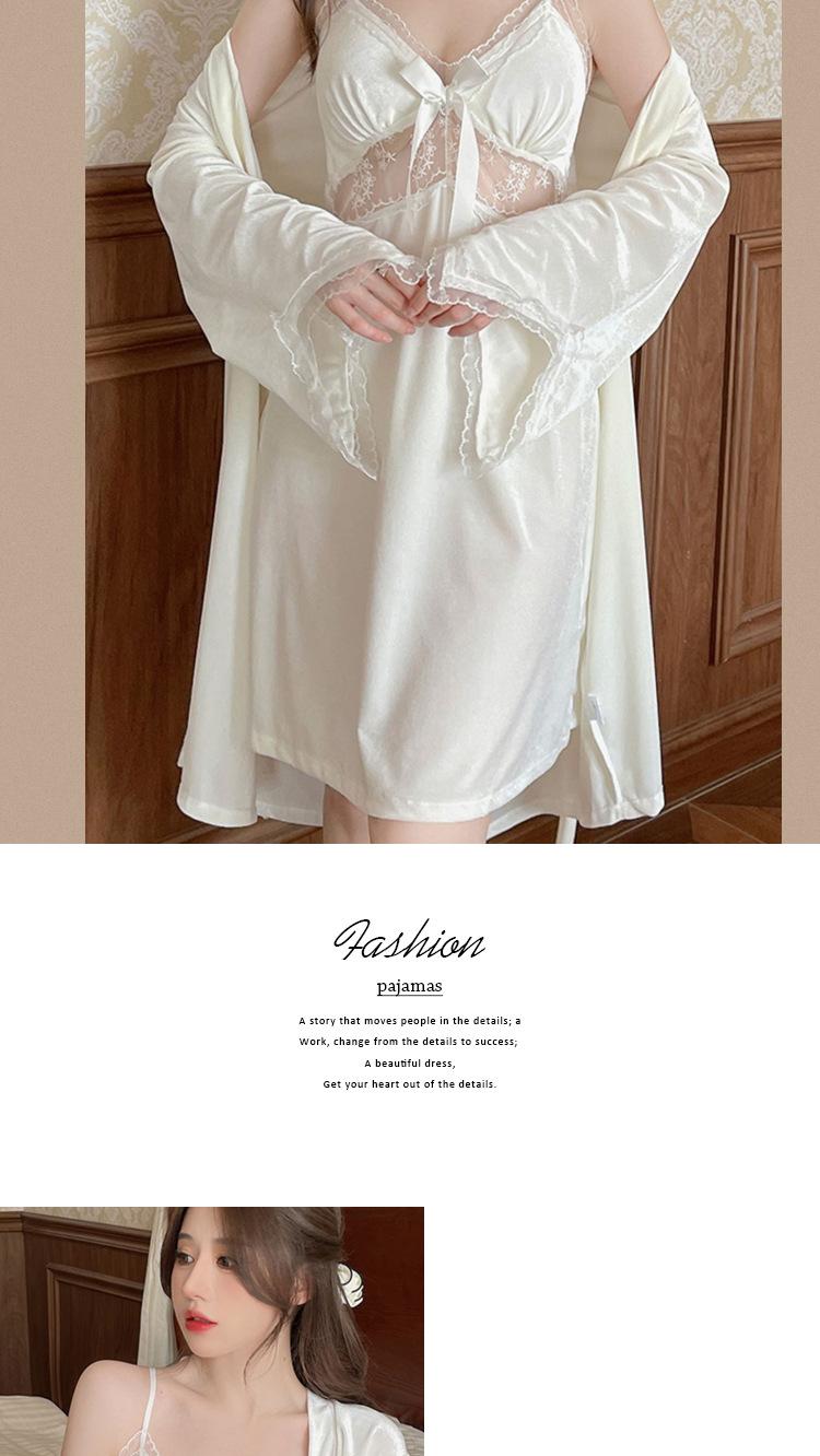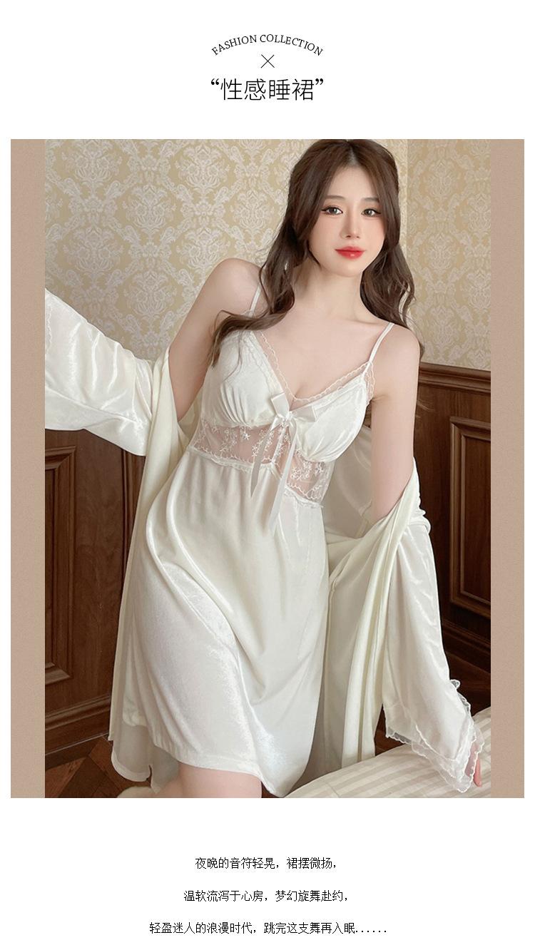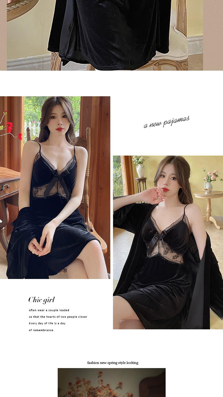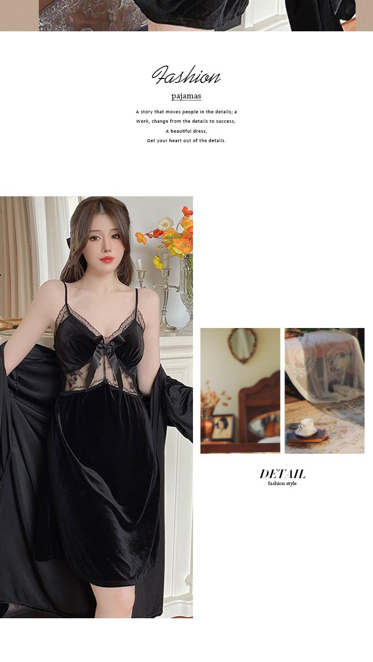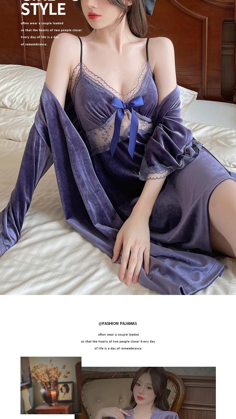 Pijama Sexy para Mujer Terciopelo Dorado Sensación de Alta Gama Nuevo Otoño e Invierno Encaje Camisola Camisón Conjunto de Dos Piezas para el Cabello