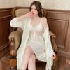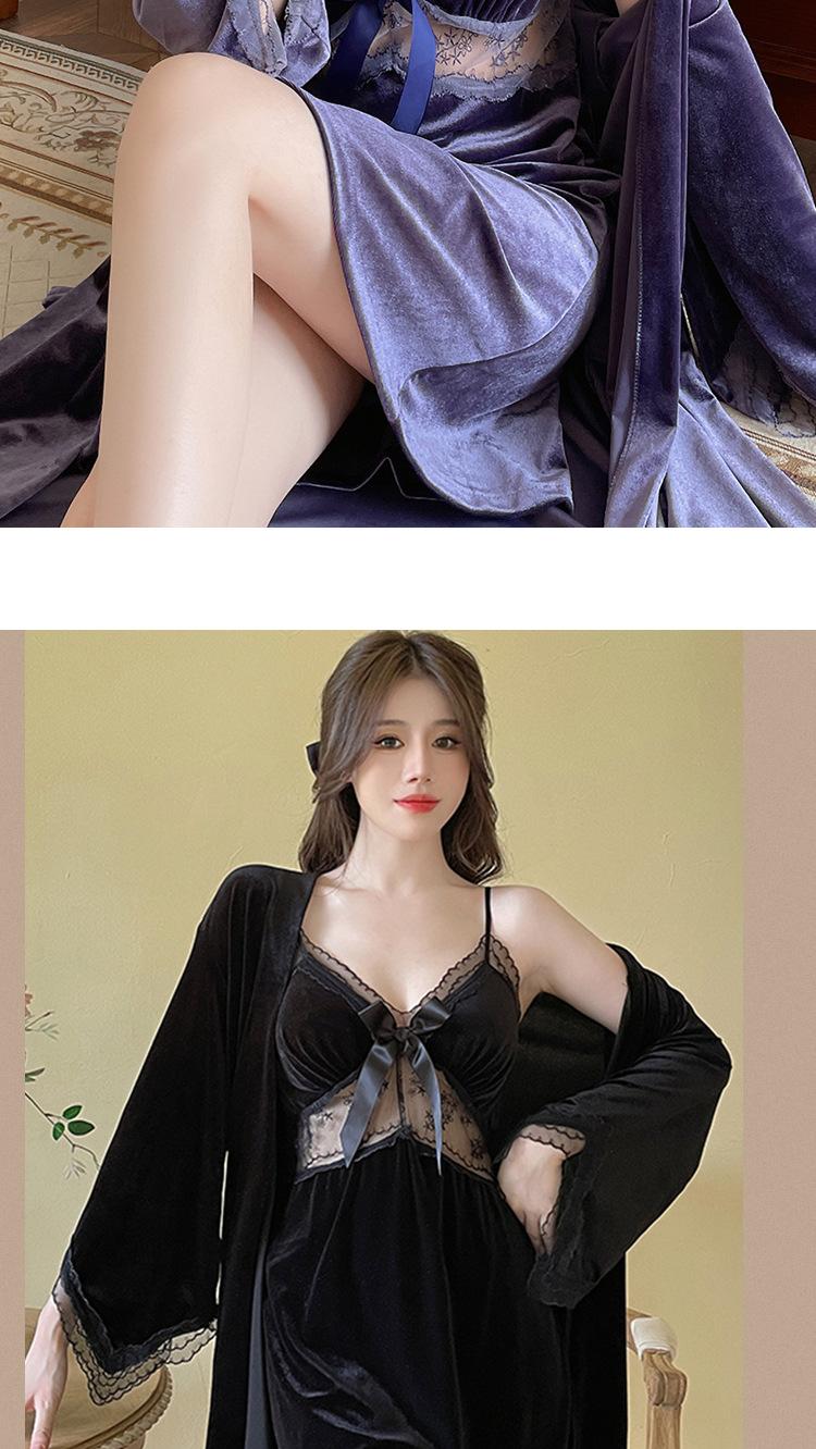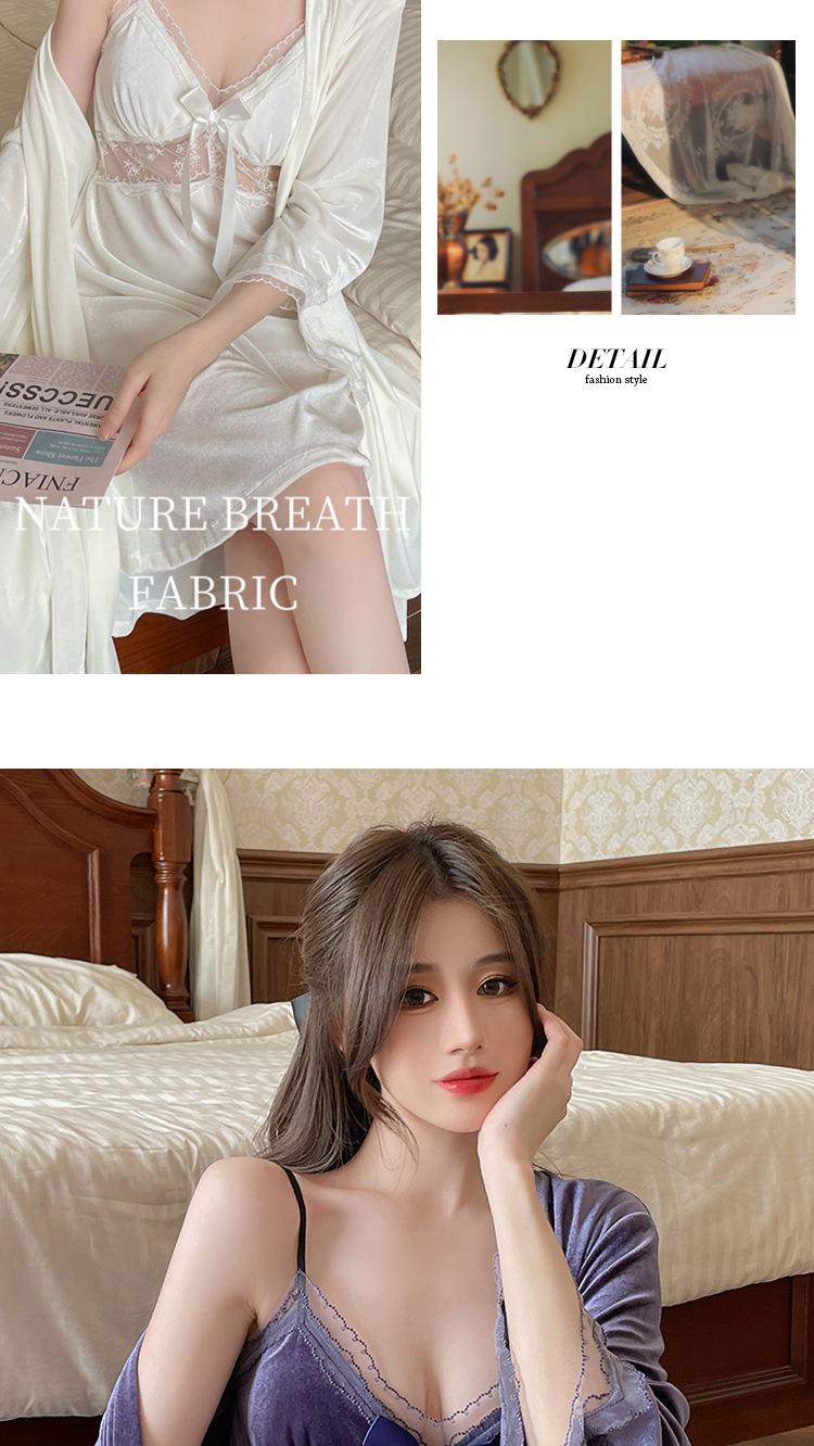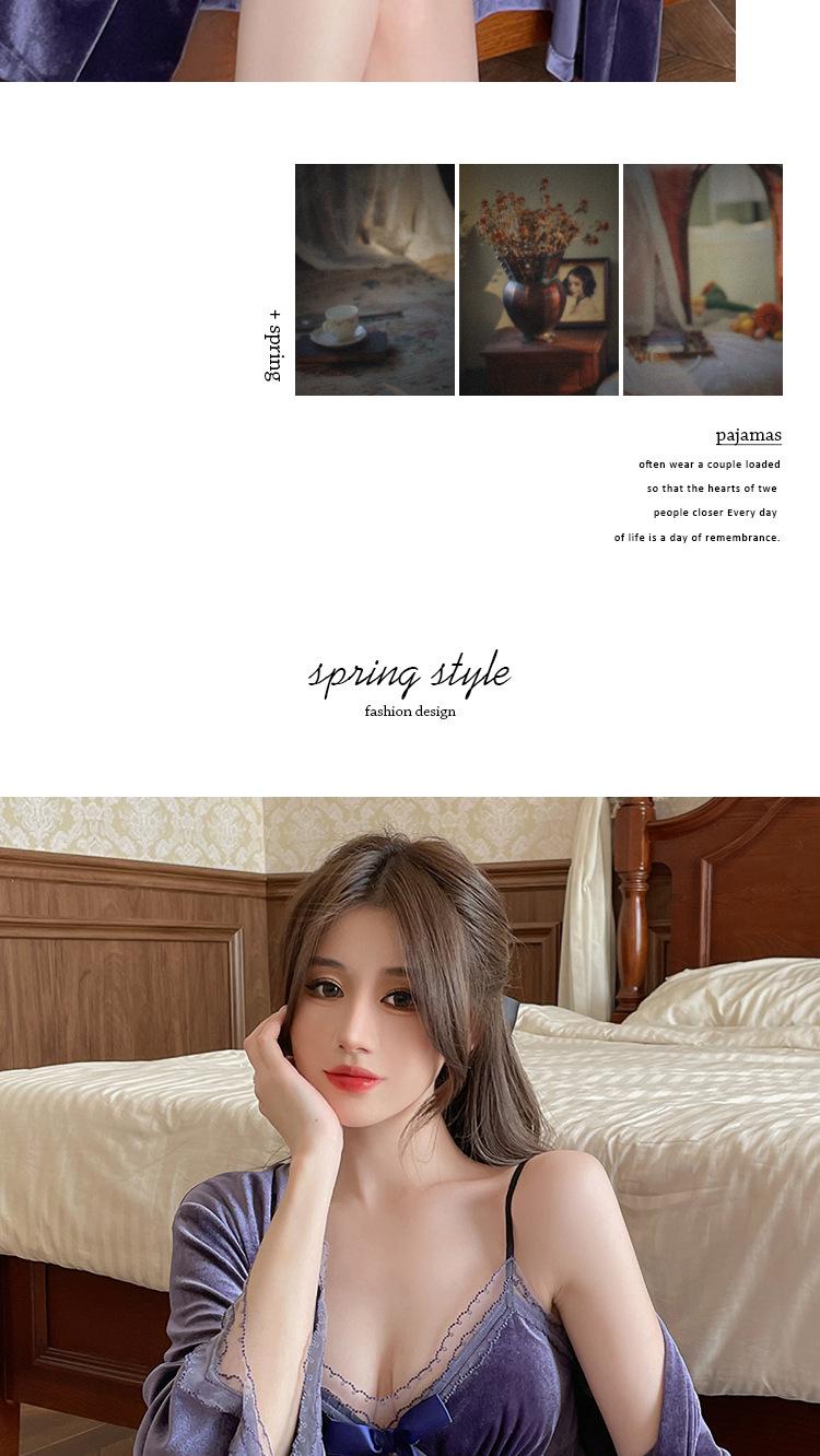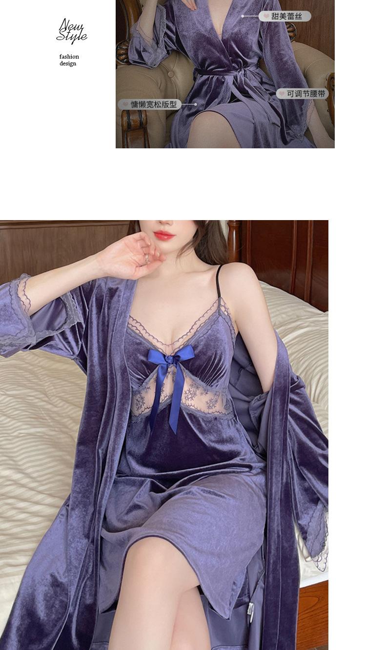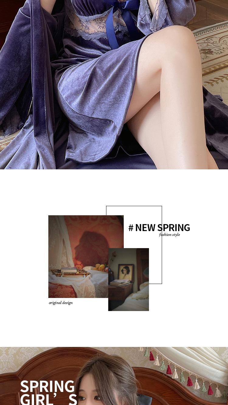Pijama Sexy para Mujer Terciopelo Dorado Sensación de Alta Gama Nuevo Otoño e Invierno Encaje Camisola Camisón Conjunto de Dos Piezas para el Cabello