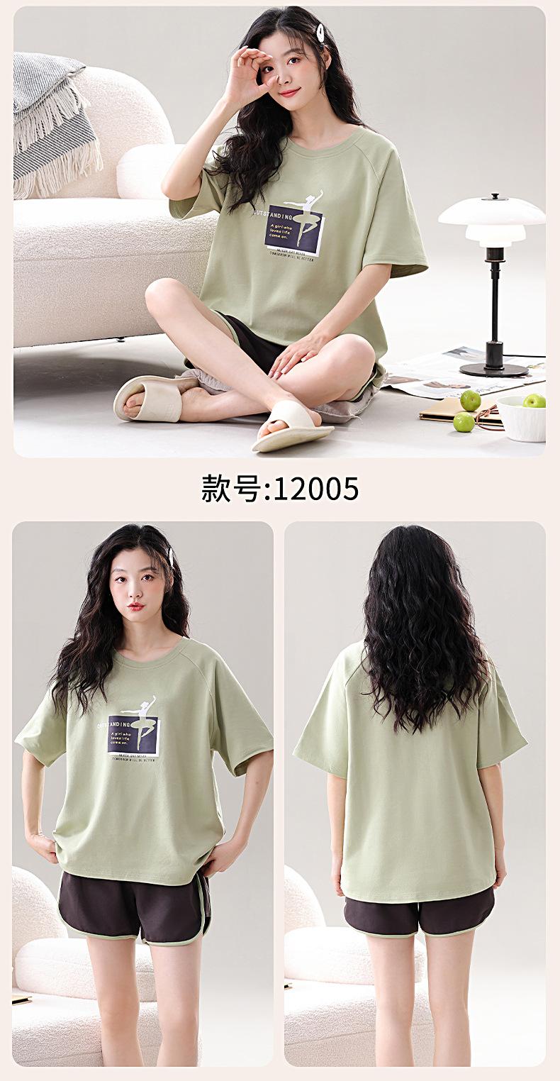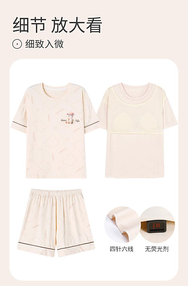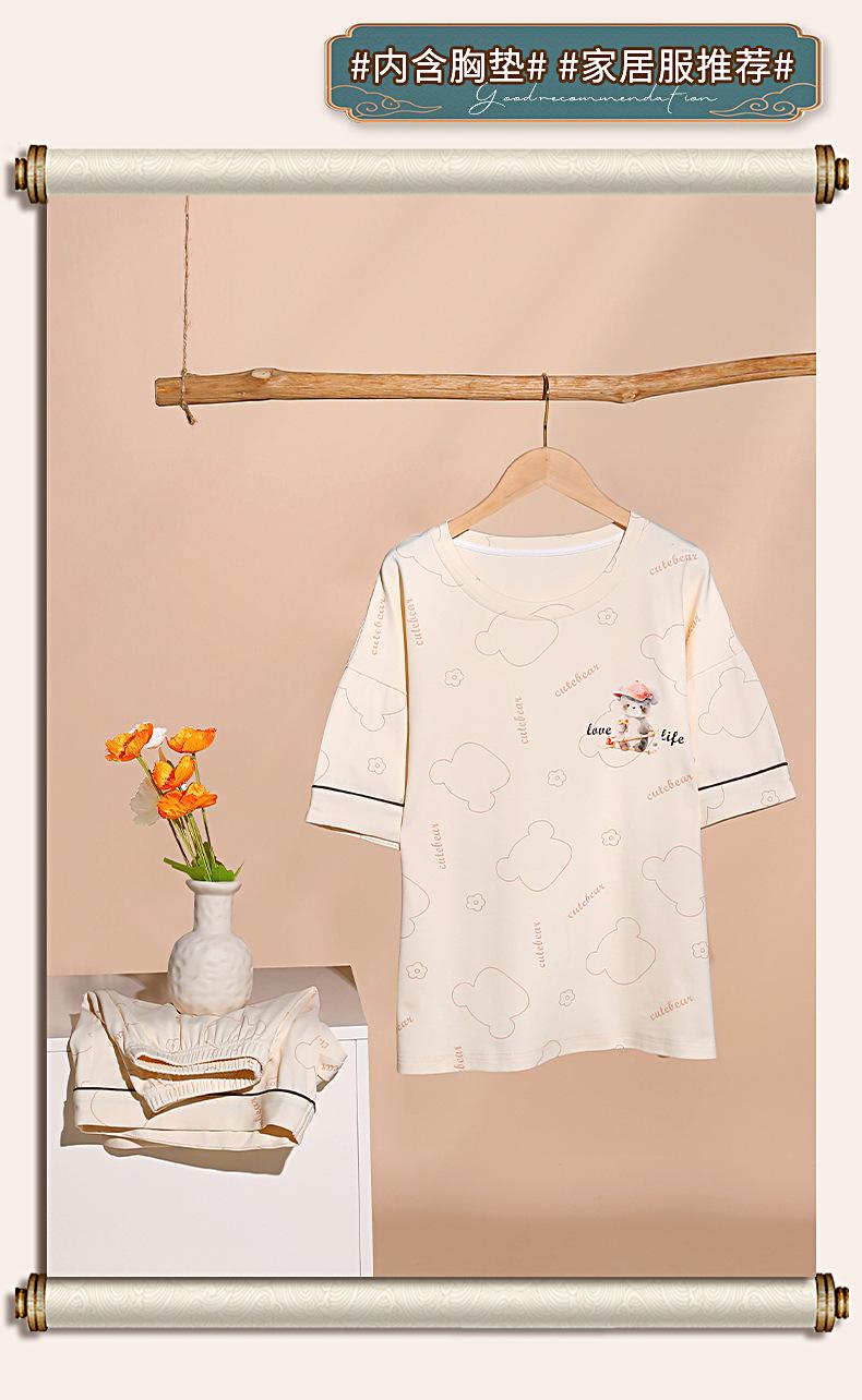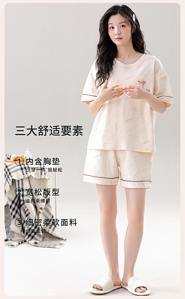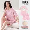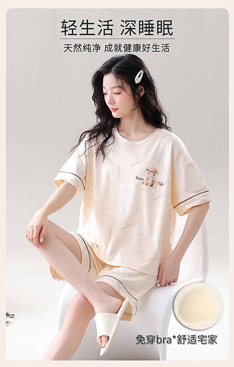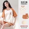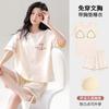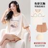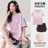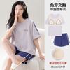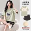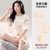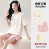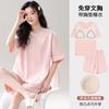Pijama de Algodón Puro de Manga Corta para Mujer, Verano 2025, con Almohadillas en el Pecho, Cuello Redondo Holgado, Puede Usarse Fuera, Conjunto de Ropa de Descanso Sencillo