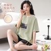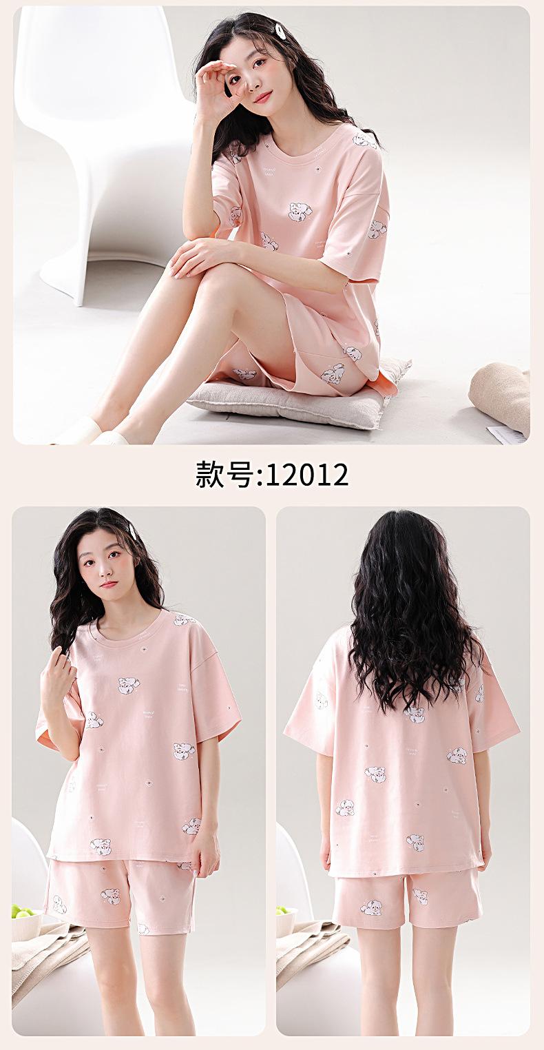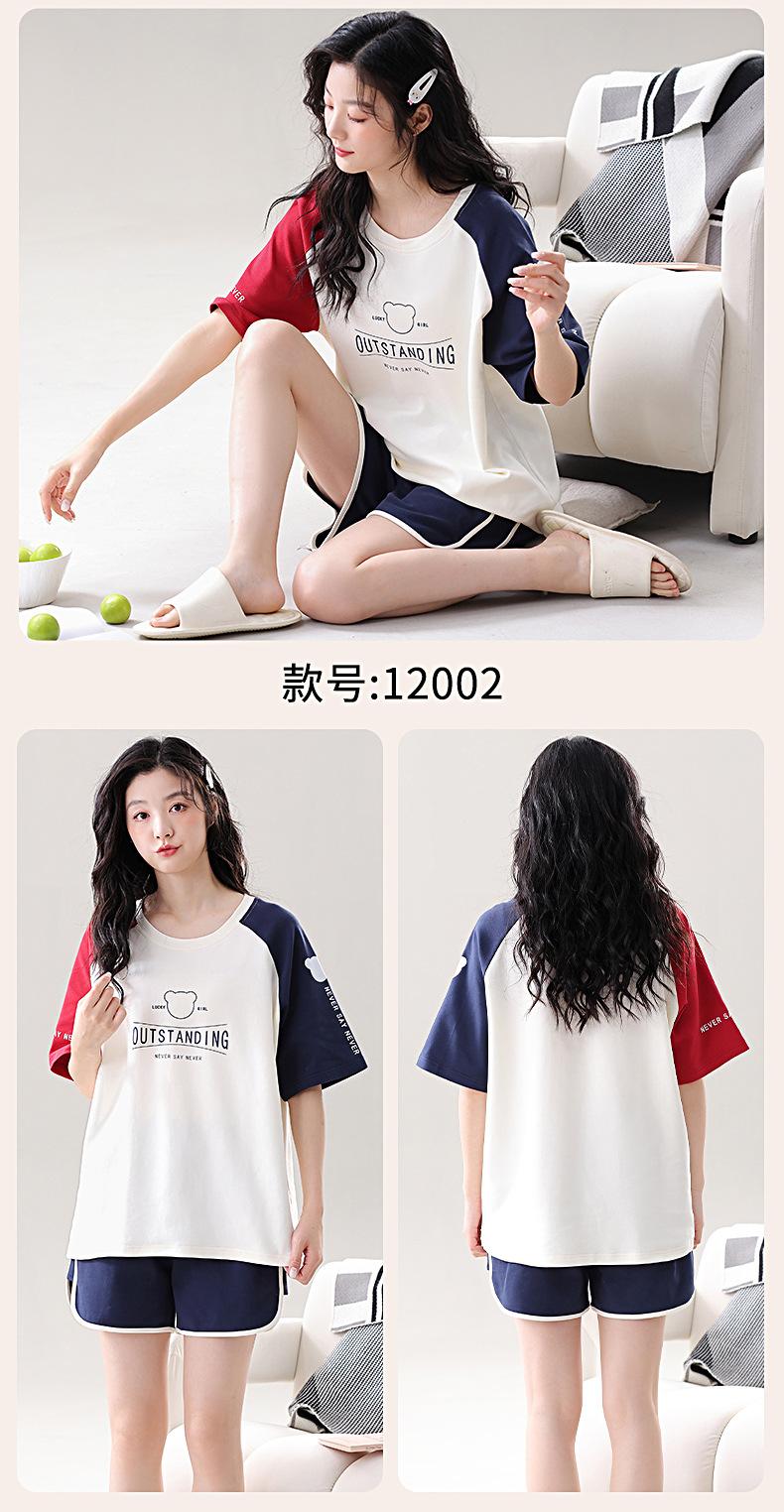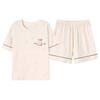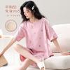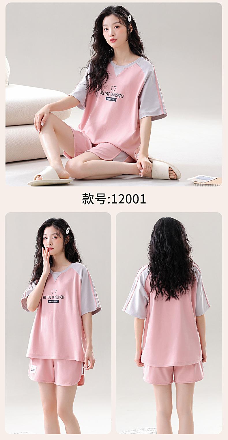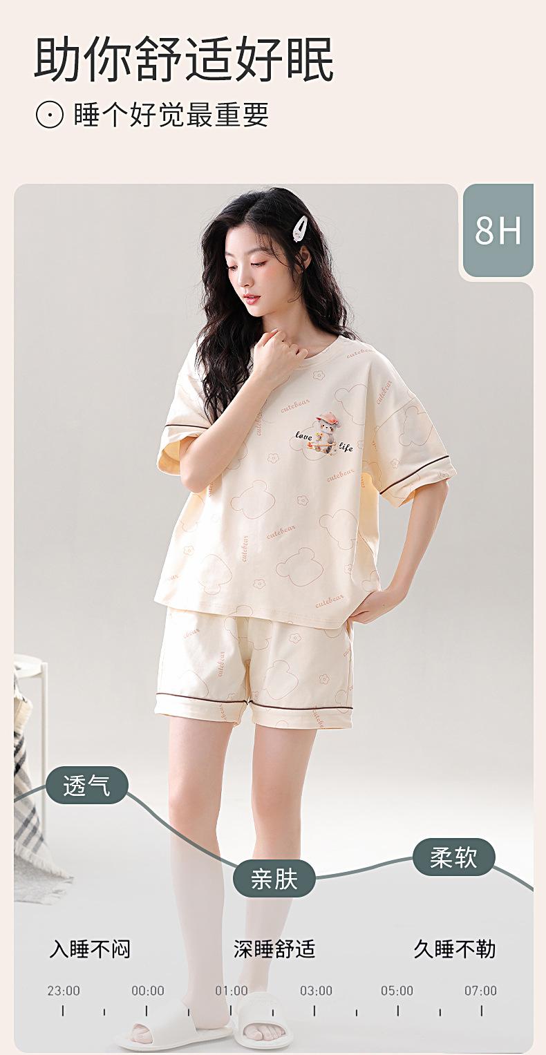 Pijama de Algodón Puro de Manga Corta para Mujer, Verano 2025, con Almohadillas en el Pecho, Cuello Redondo Holgado, Puede Usarse Fuera, Conjunto de Ropa de Descanso Sencillo