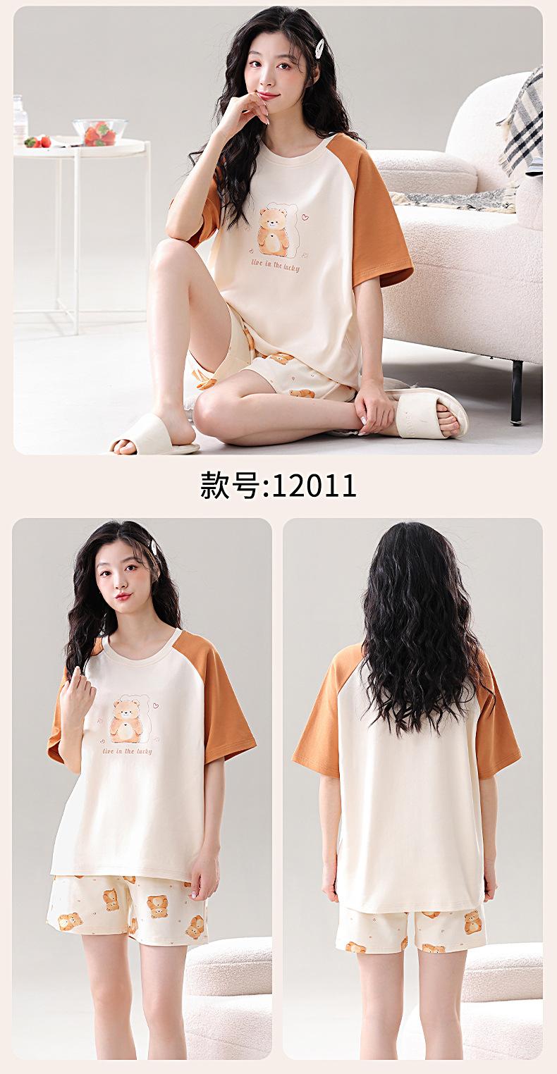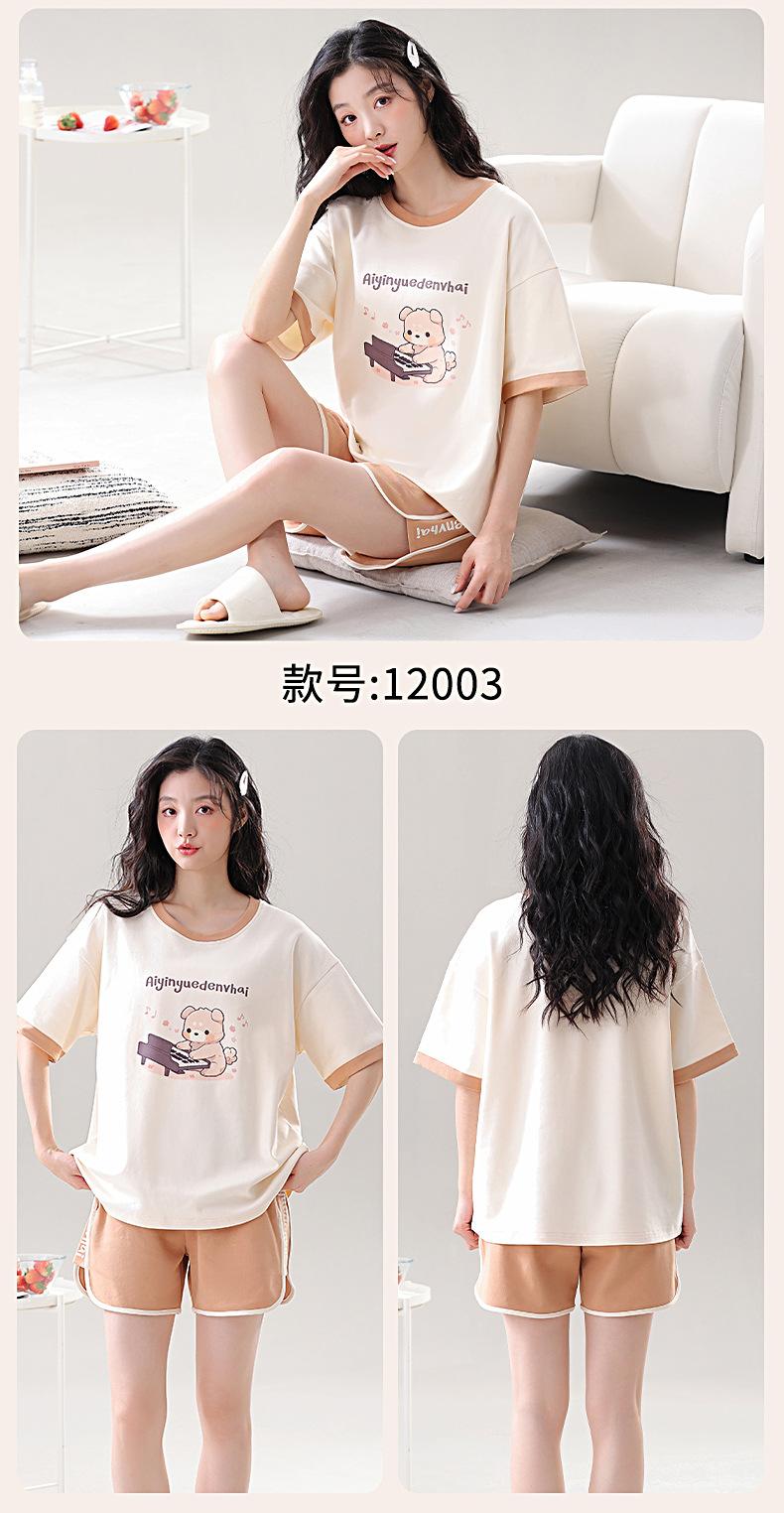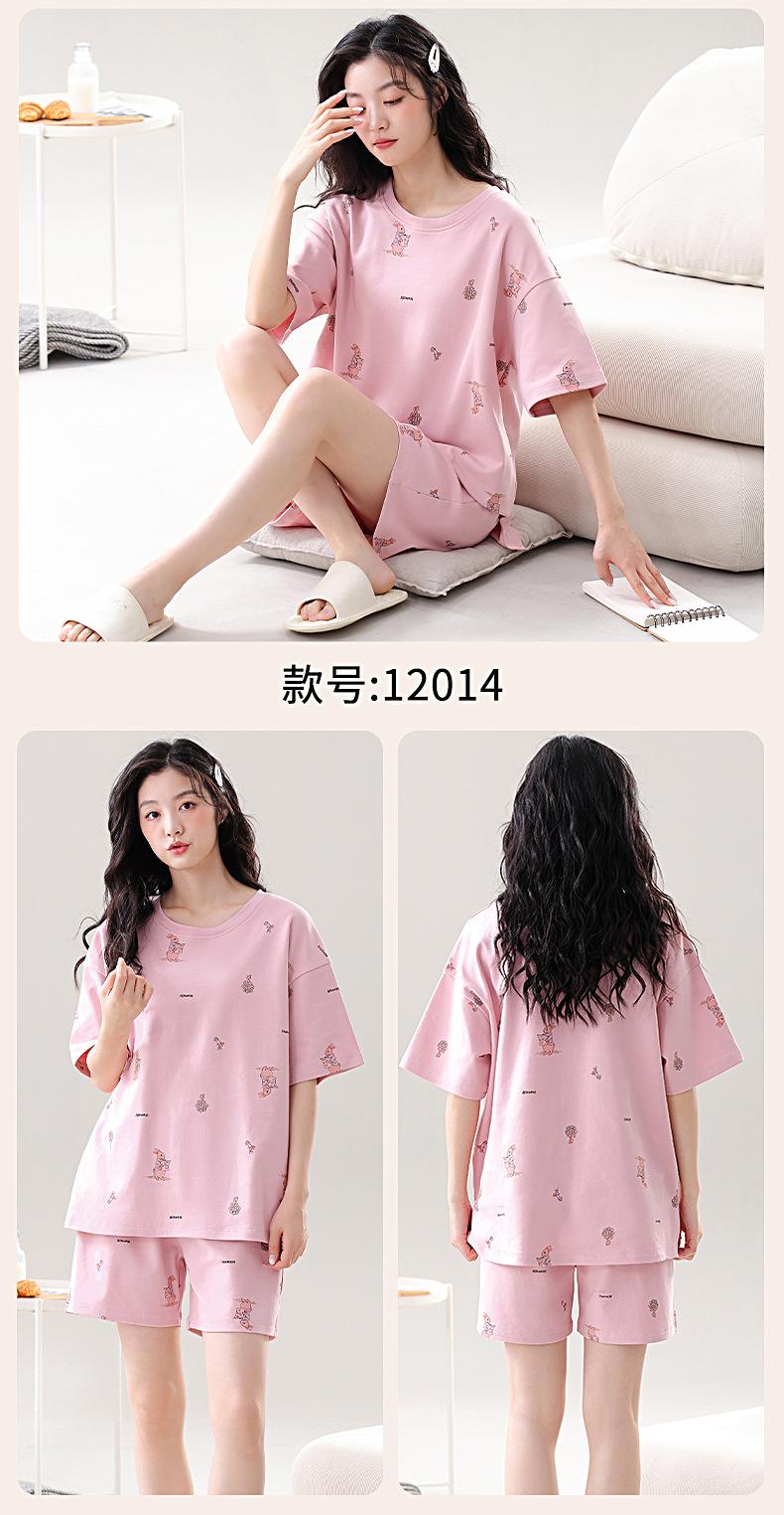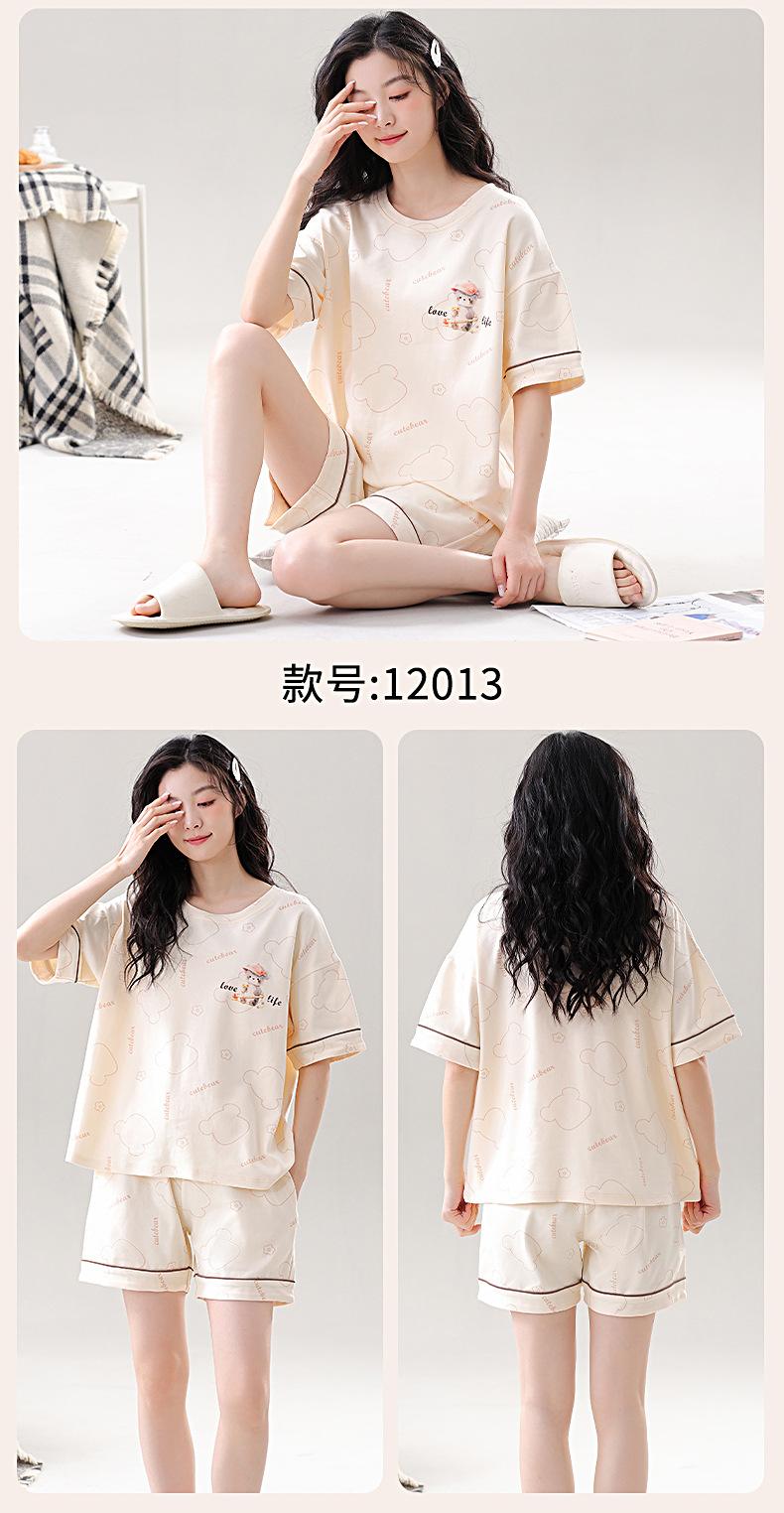 Pijama de Algodón Puro de Manga Corta para Mujer, Verano 2025, con Almohadillas en el Pecho, Cuello Redondo Holgado, Puede Usarse Fuera, Conjunto de Ropa de Descanso Sencillo
