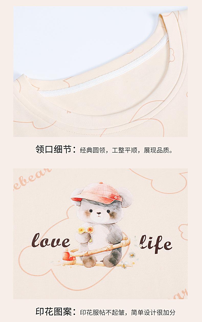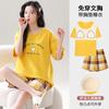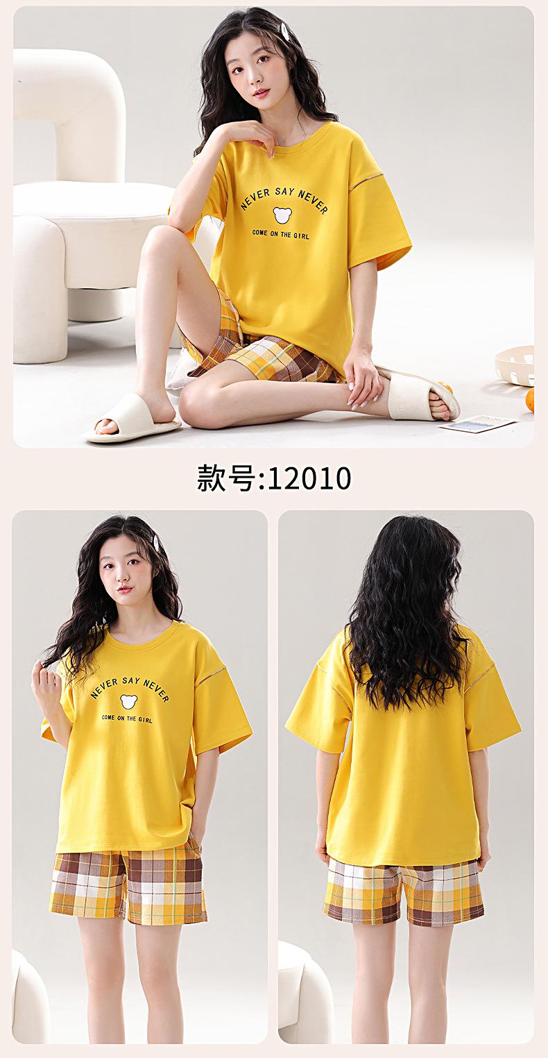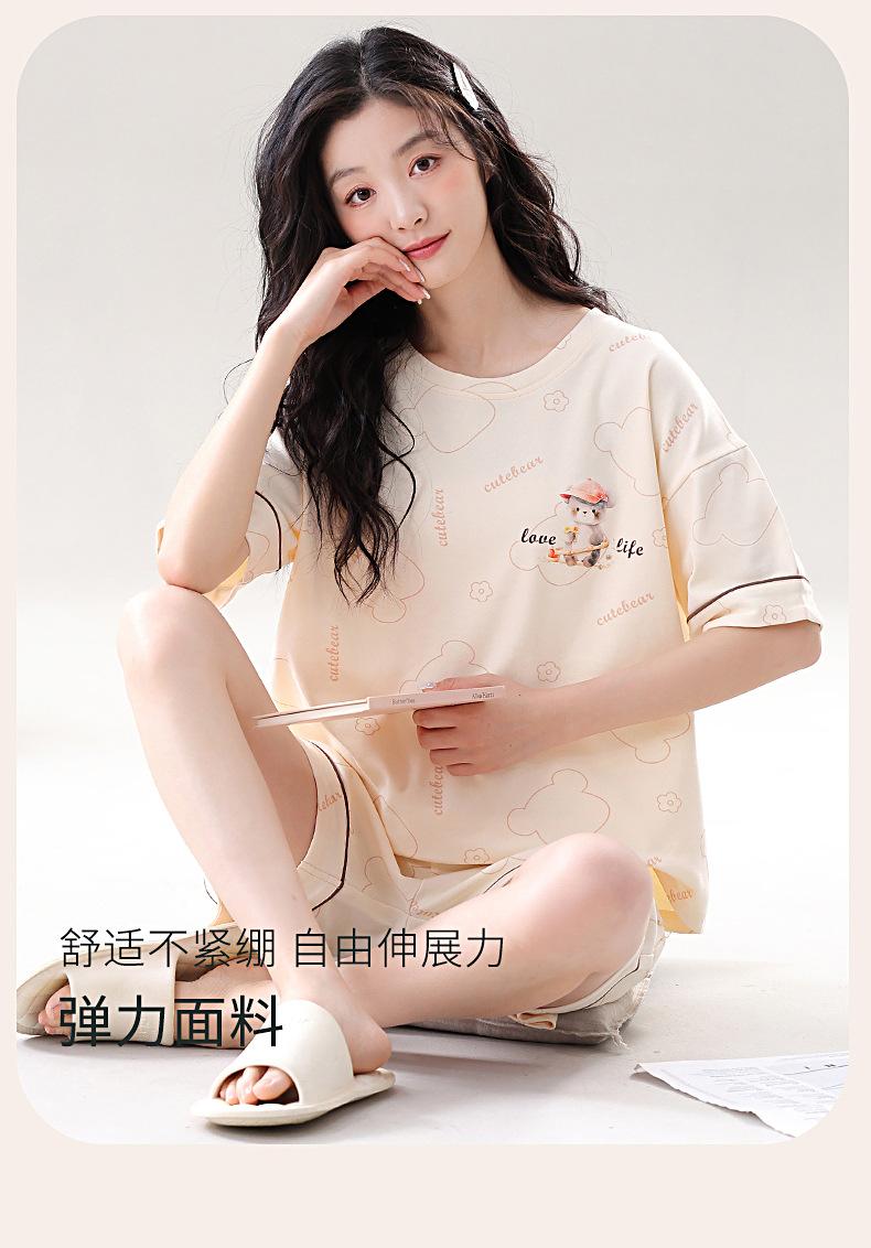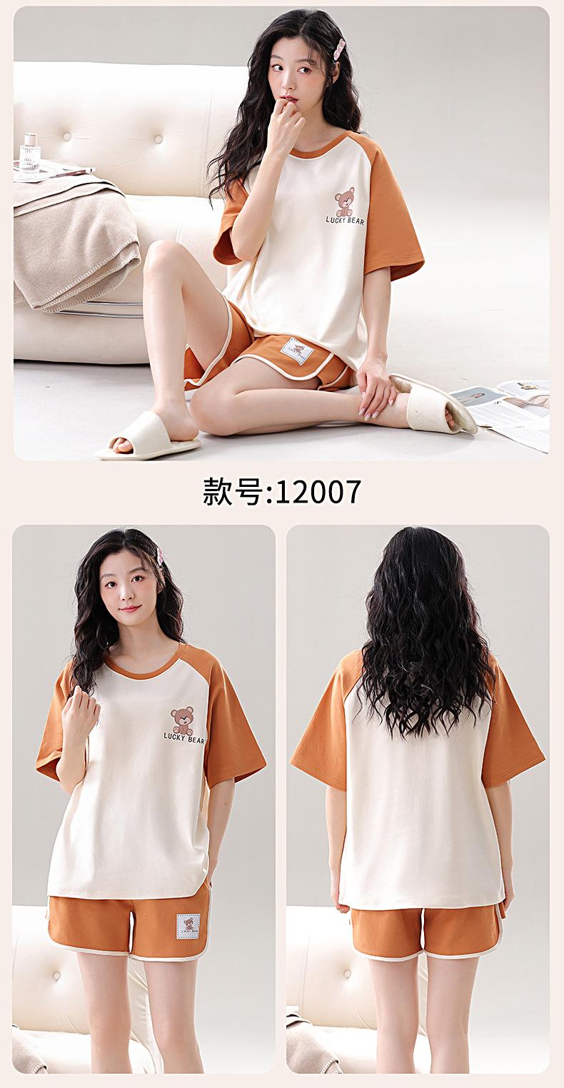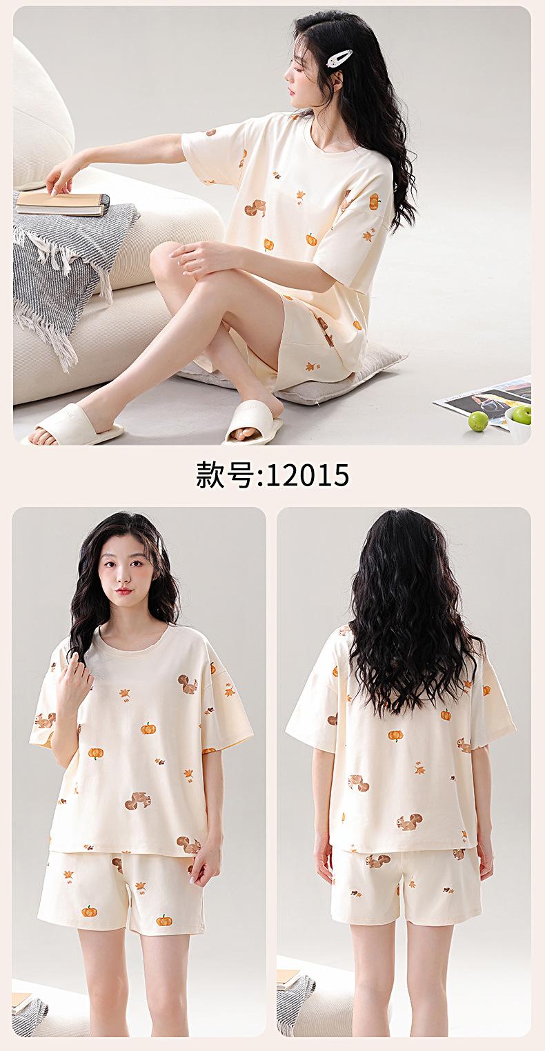 Pijama de Algodón Puro de Manga Corta para Mujer, Verano 2025, con Almohadillas en el Pecho, Cuello Redondo Holgado, Puede Usarse Fuera, Conjunto de Ropa de Descanso Sencillo