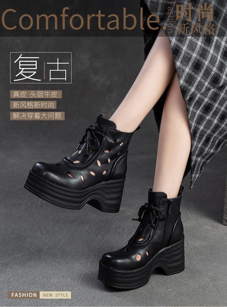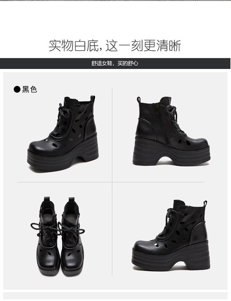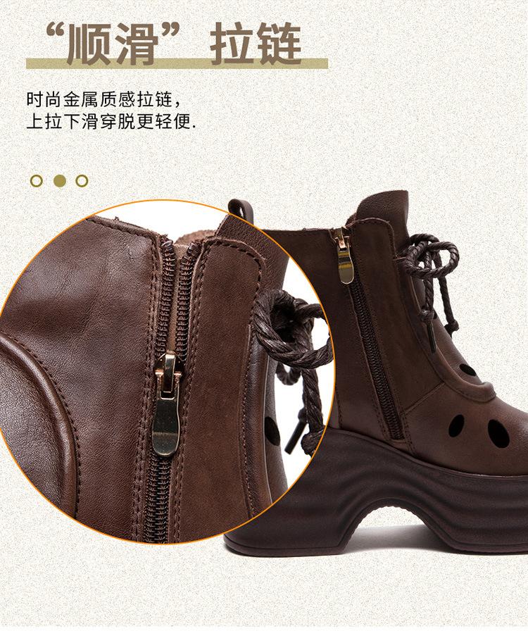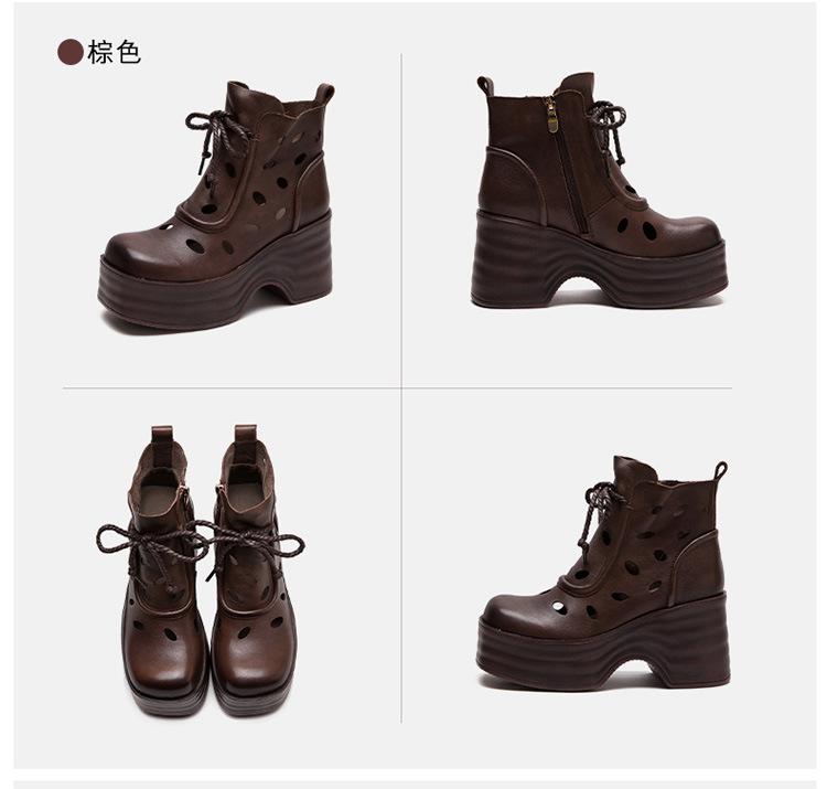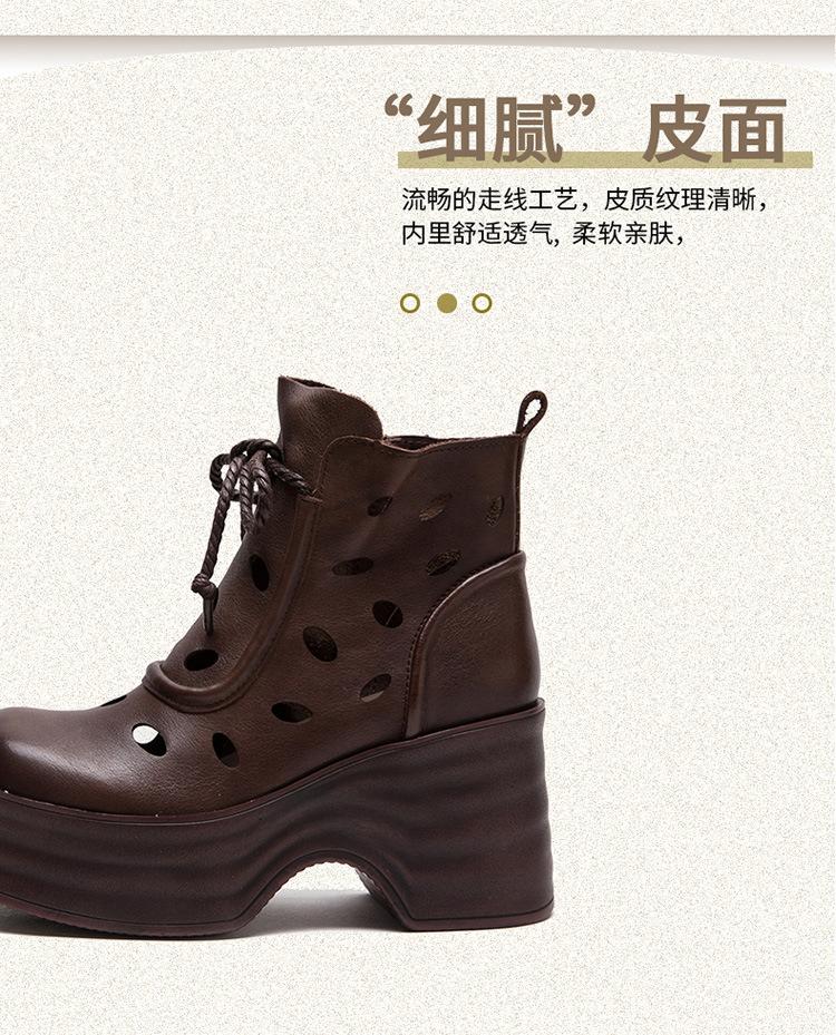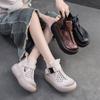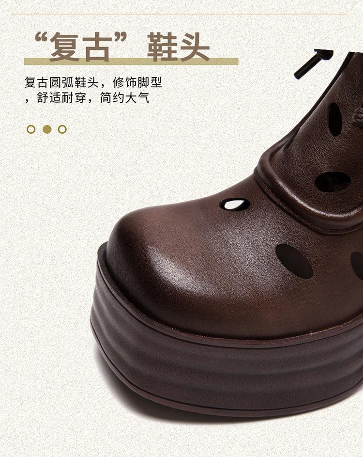 Sandalias Shanghai Jie shu 2024 primavera nuevas transpirables caladas sandalias de pequeña altura sandalias de cuña estilo retro zapatos de mujer