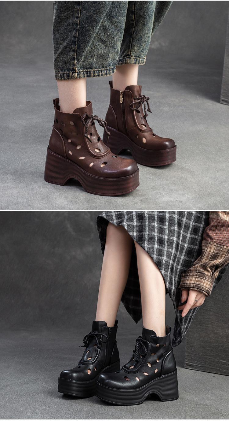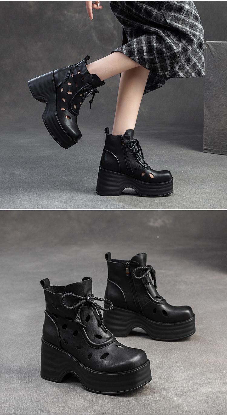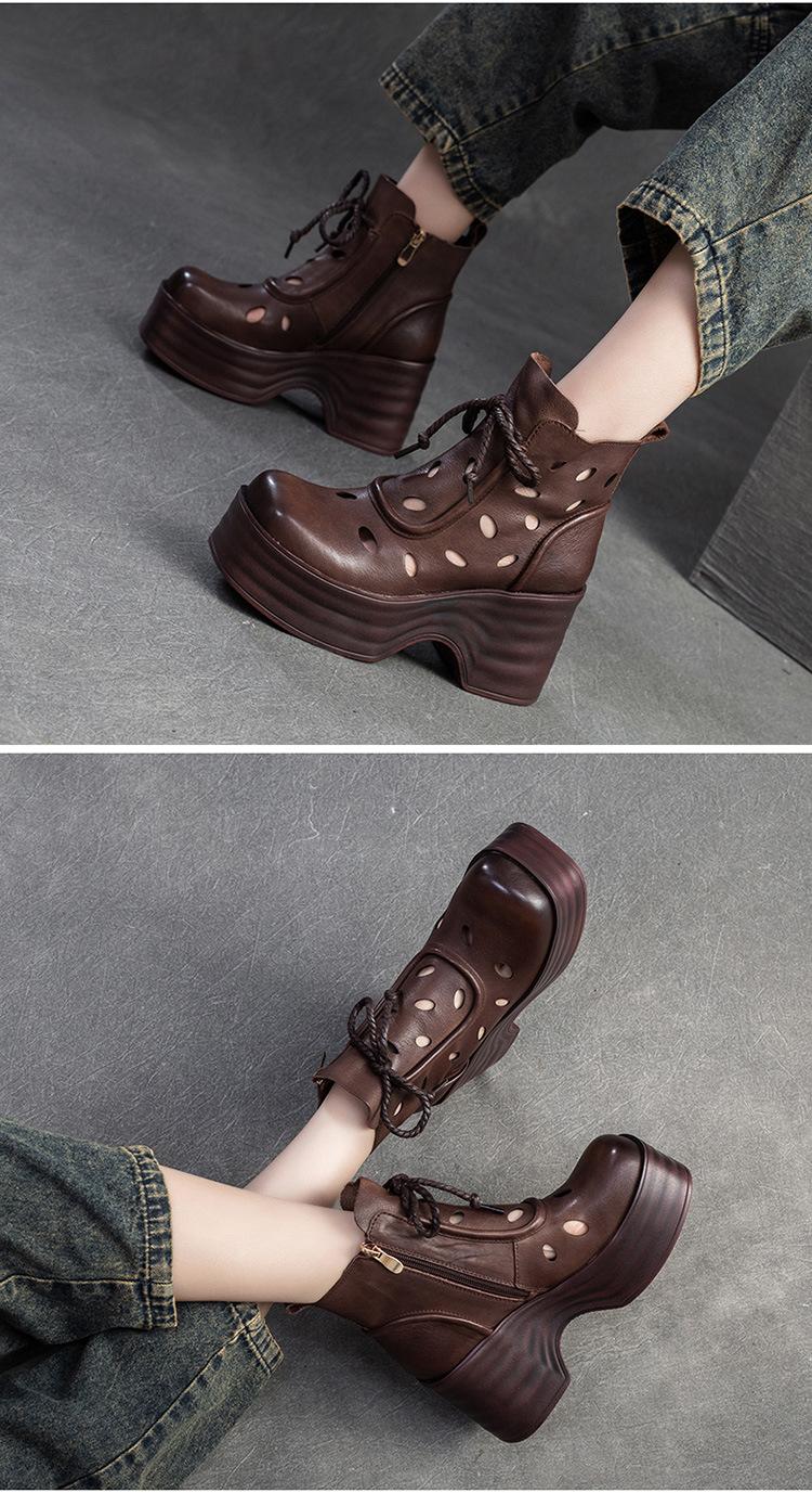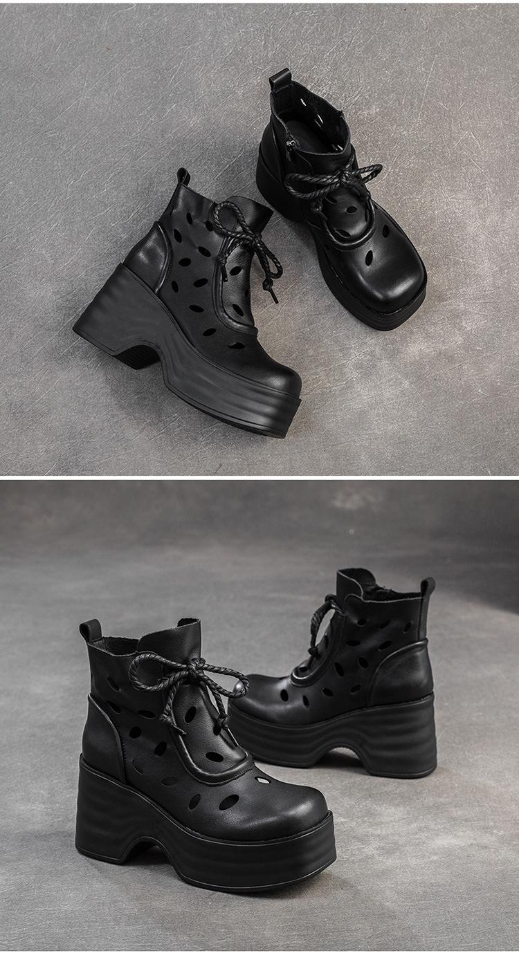 Sandalias Shanghai Jie shu 2024 primavera nuevas transpirables caladas sandalias de pequeña altura sandalias de cuña estilo retro zapatos de mujer