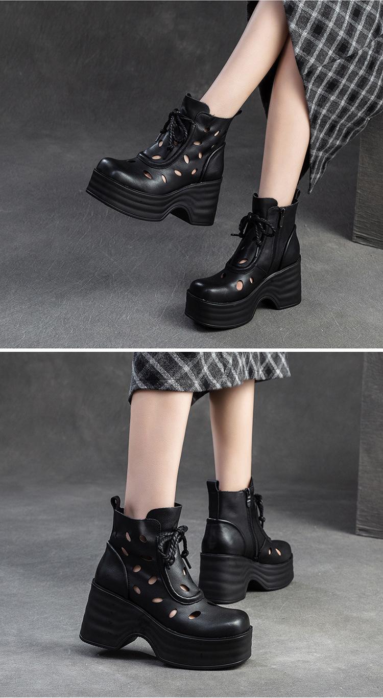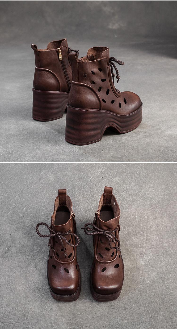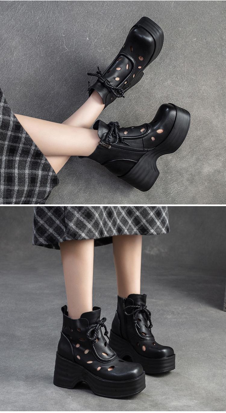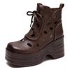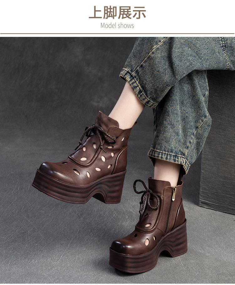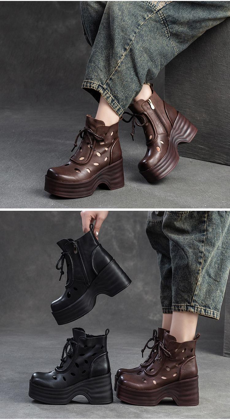 Sandalias Shanghai Jie shu 2024 primavera nuevas transpirables caladas sandalias de pequeña altura sandalias de cuña estilo retro zapatos de mujer