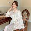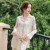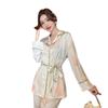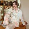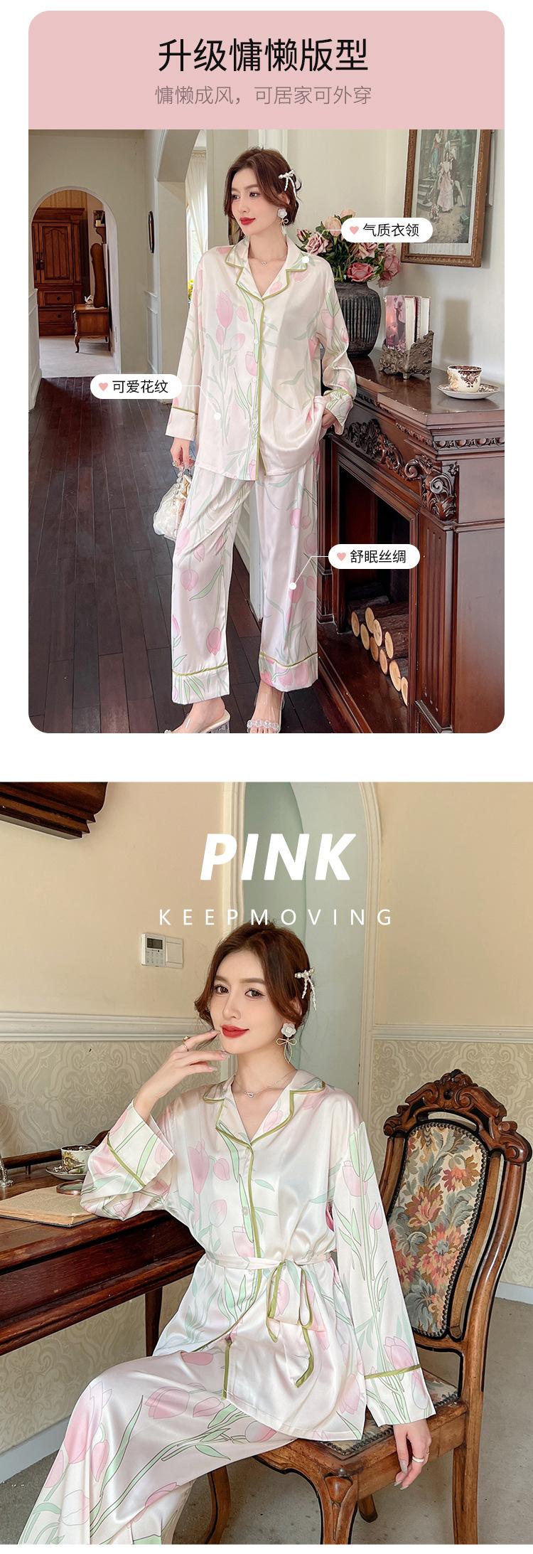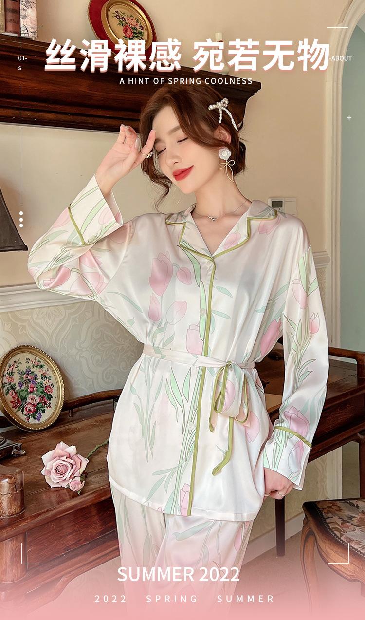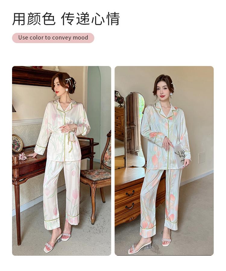 Pijamas de seda helada, elegantes y frescos, de primavera y otoño de 2024, para mujer, con pantalones de manga larga y estampado de tulipán, ropa de casa.