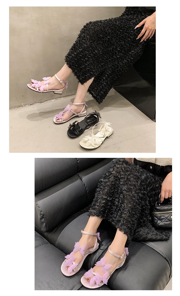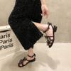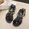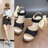Vestido Estilo Hada Lazo Sandalias de Moda Verano 2024 Nuevo Estilo Coreano Cuña Hebilla Zapatos Romanos