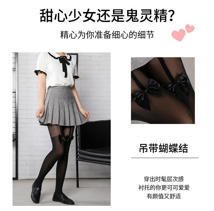 Calcetines japoneses de primavera y verano para mujer, con lazo, de terciopelo, con costuras altas falsas, 140D