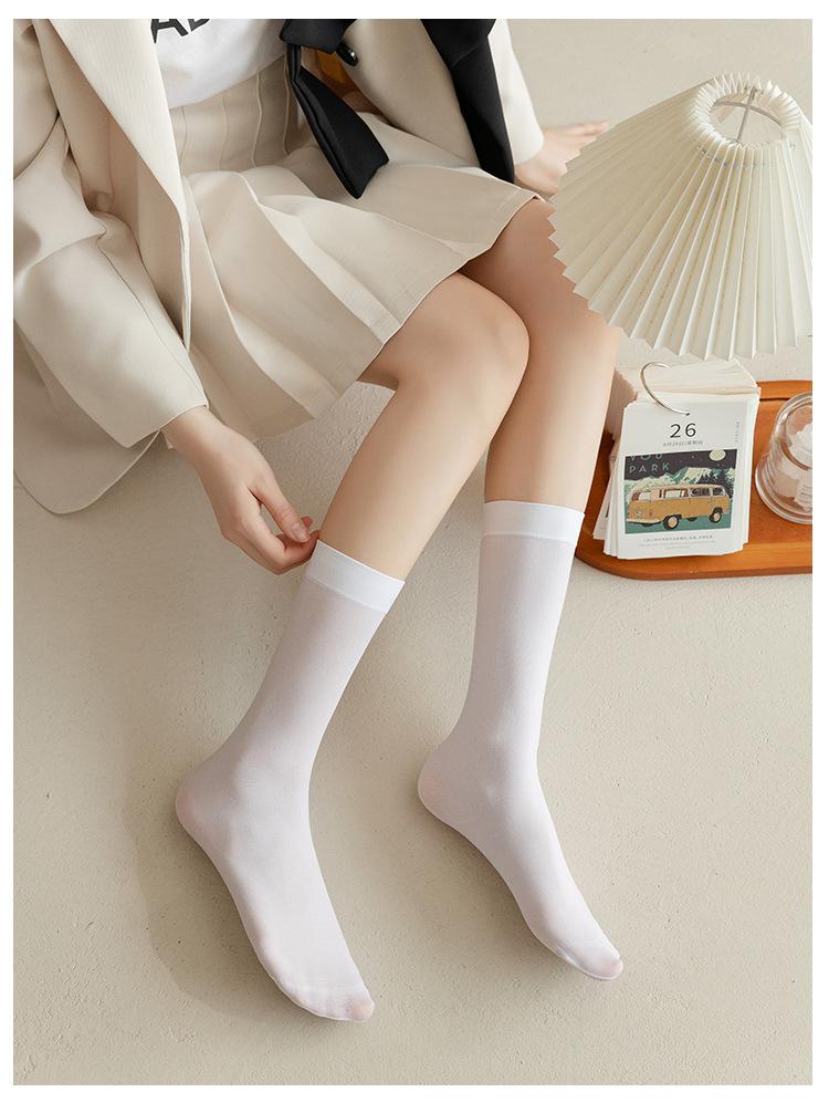 Calcetines JK Negros para Mujer Verano Delgados Media Pantorrilla Color Puro Largos Sobre la Rodilla Zhuji Look Adelgazante Calcetines para Pantorrilla Venta al Mayoreo