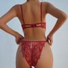 Lencería sexy transfronteriza para mujer, sujetador francés fino de satén con encaje, rojo Benmingnian, conjunto de lencería de talla grande