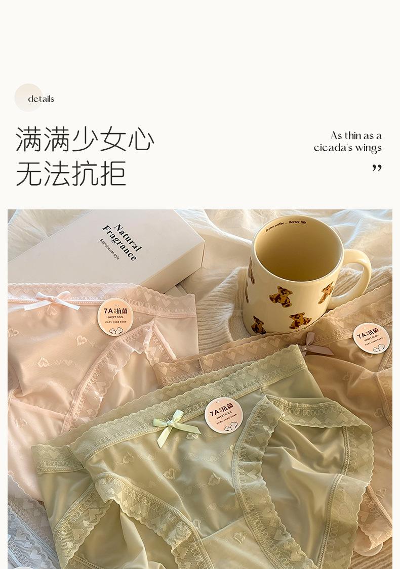 Ropa interior de encaje de cintura para niñas, ropa interior de verano para mujer, seda de hielo, viento puro, talla grande, algodón 7A, entrepierna antibacteriana para mujeres, venta al por mayor
