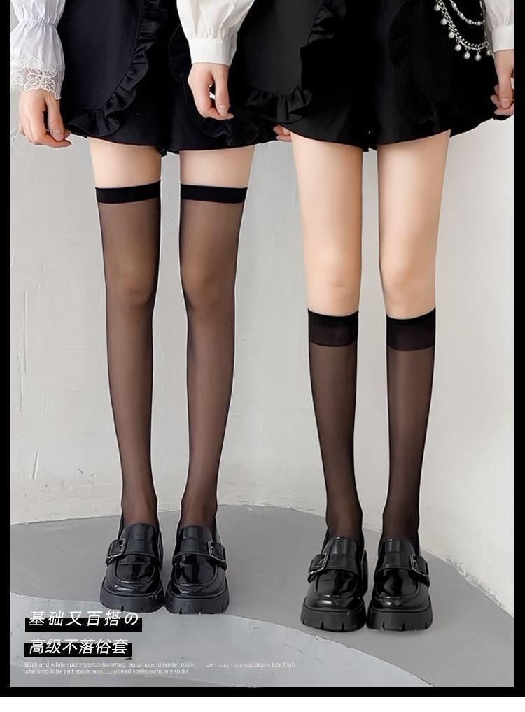 Calcetines al por mayor de fábrica para mujer primavera y verano tubo delgado medias negras transfronterizas jk calcetines de pantorrilla hasta la rodilla medias negras blancas