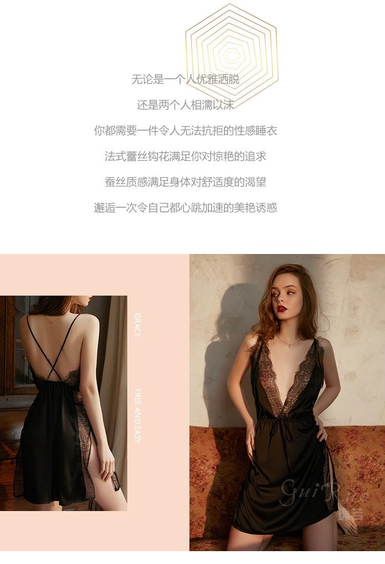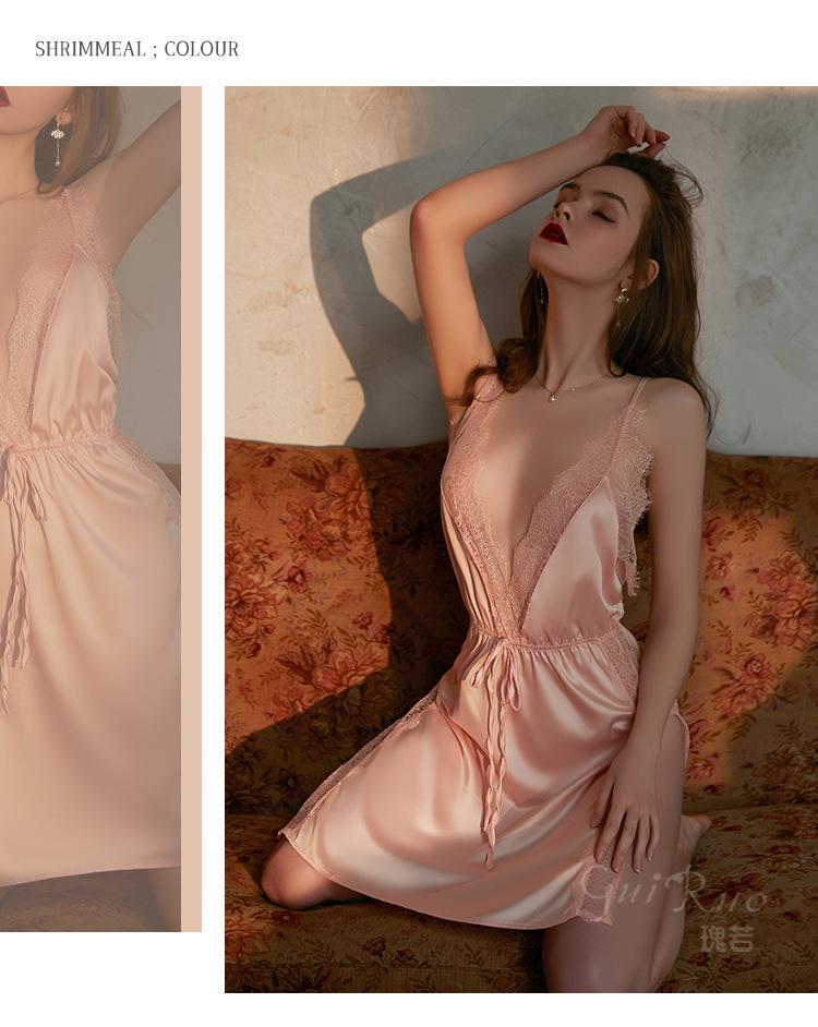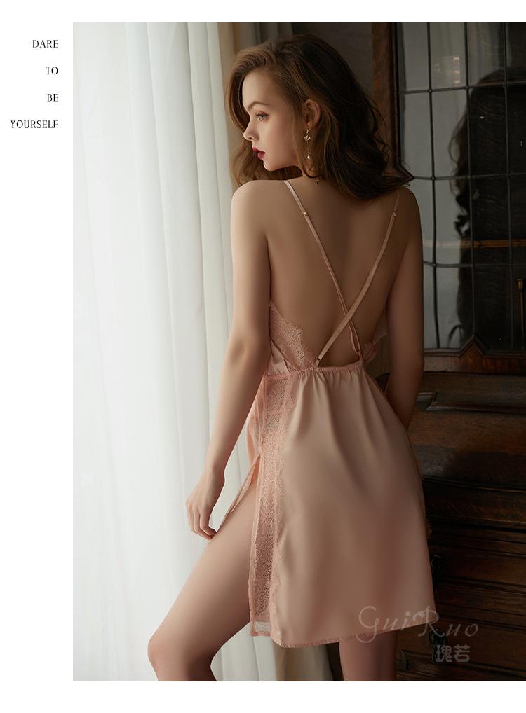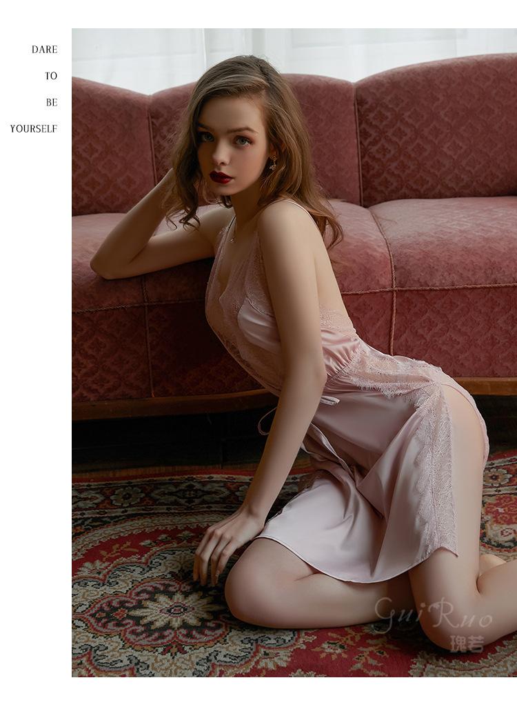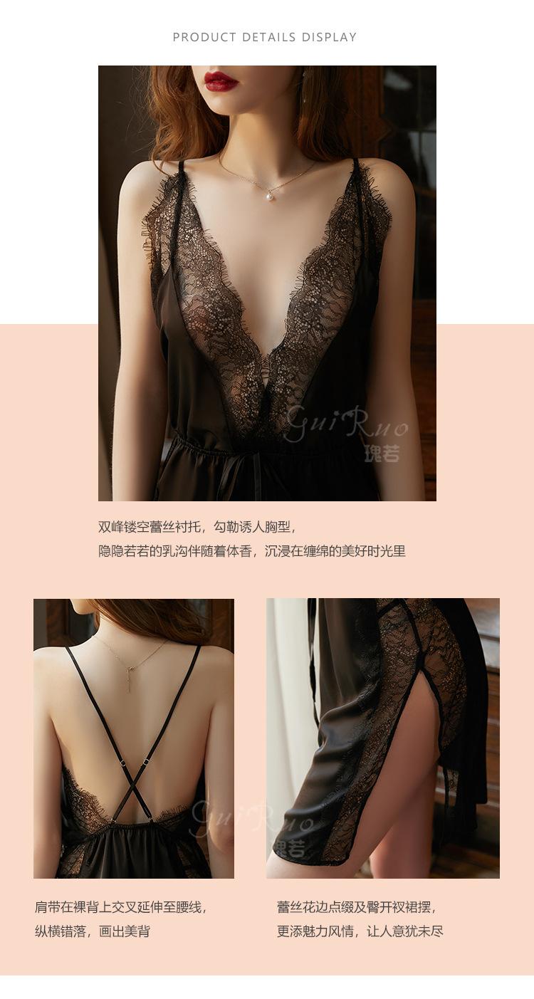 Pijama Sexy de Encaje con Perspectiva de Escote en V Profundo Marca Guiruo, Camisola con Abertura, Tentación, Conjunto de Ropa para el Hogar para 118