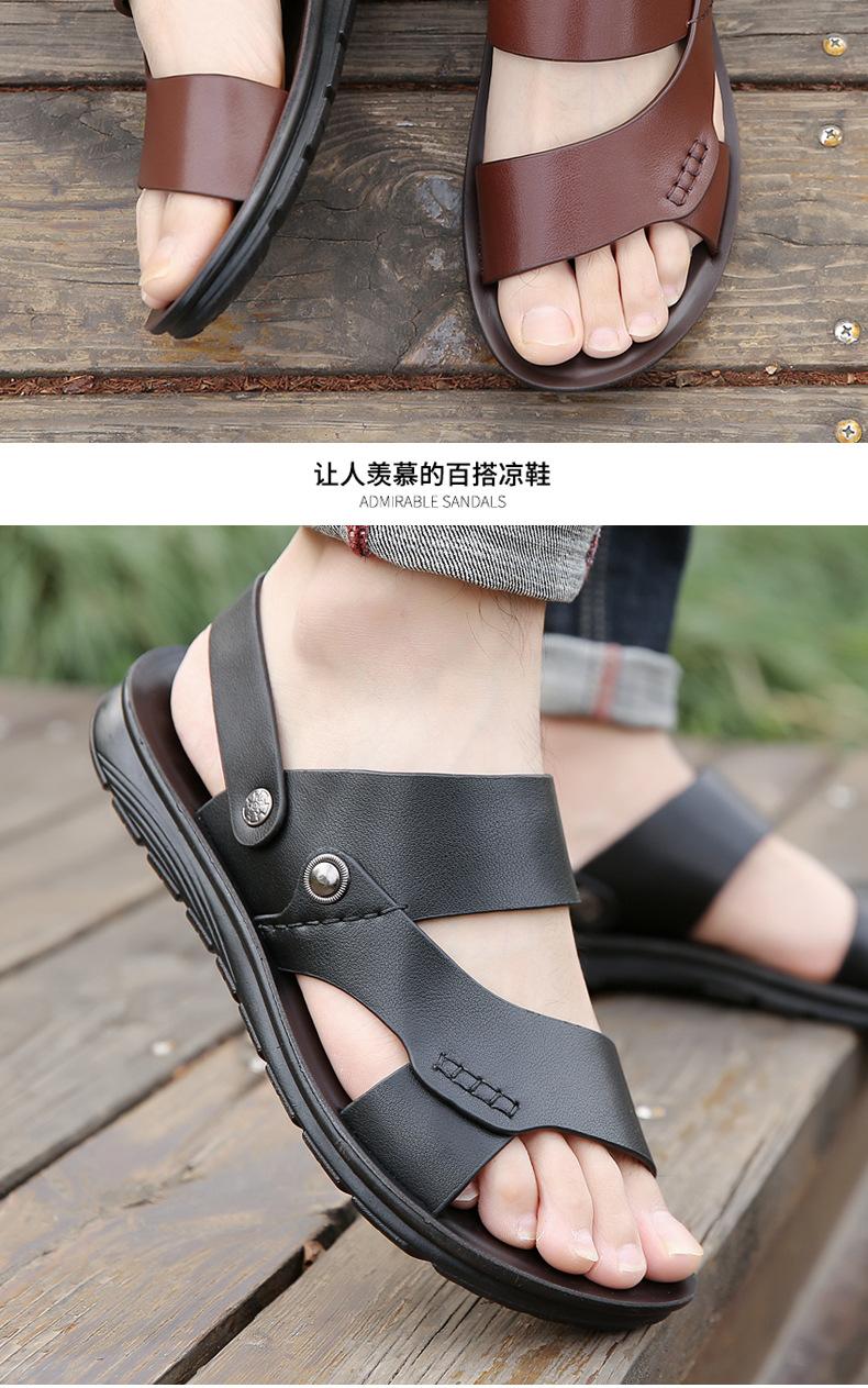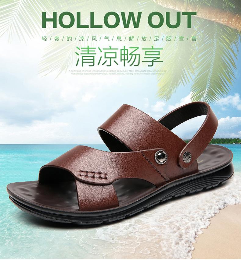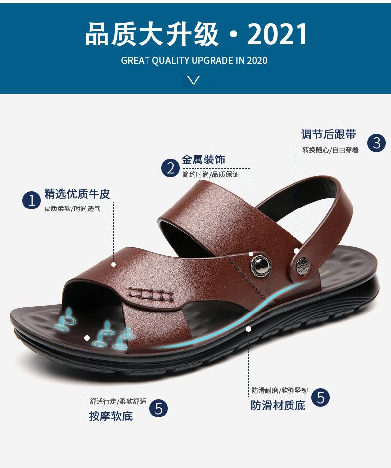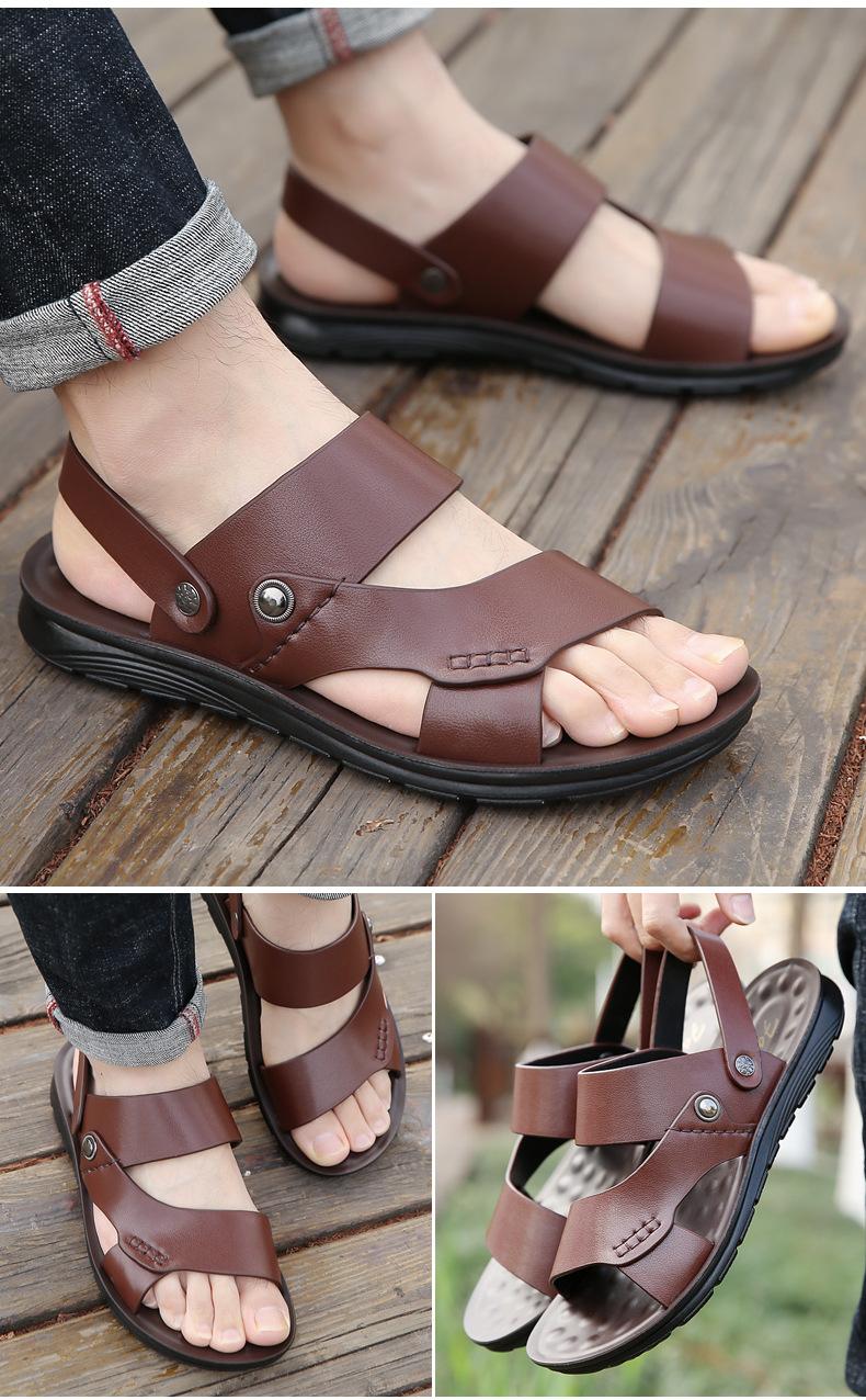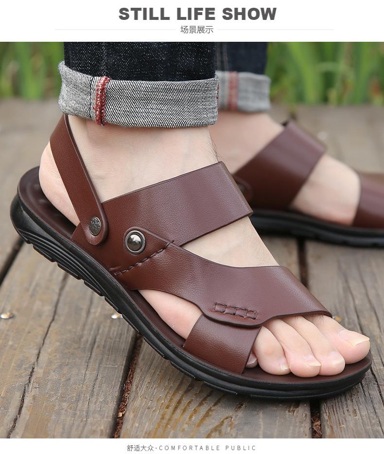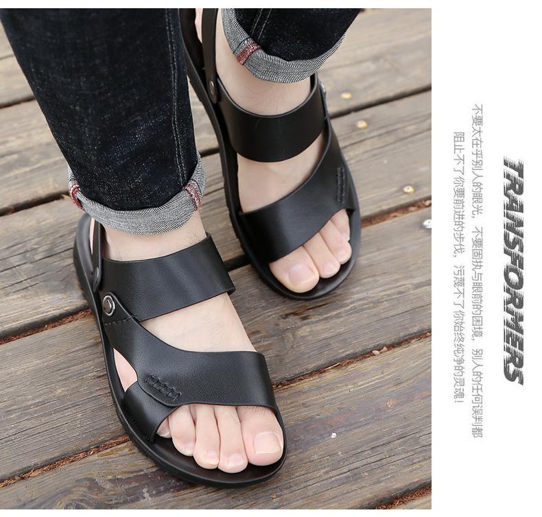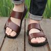 Sandalias de Verano para Hombre de Cuero Genuino Nuevas para Exterior Casual Playa Pantuflas de Doble Uso para Papá Ropa Exterior Sandalias de Cuero Talla Grande para Hombre