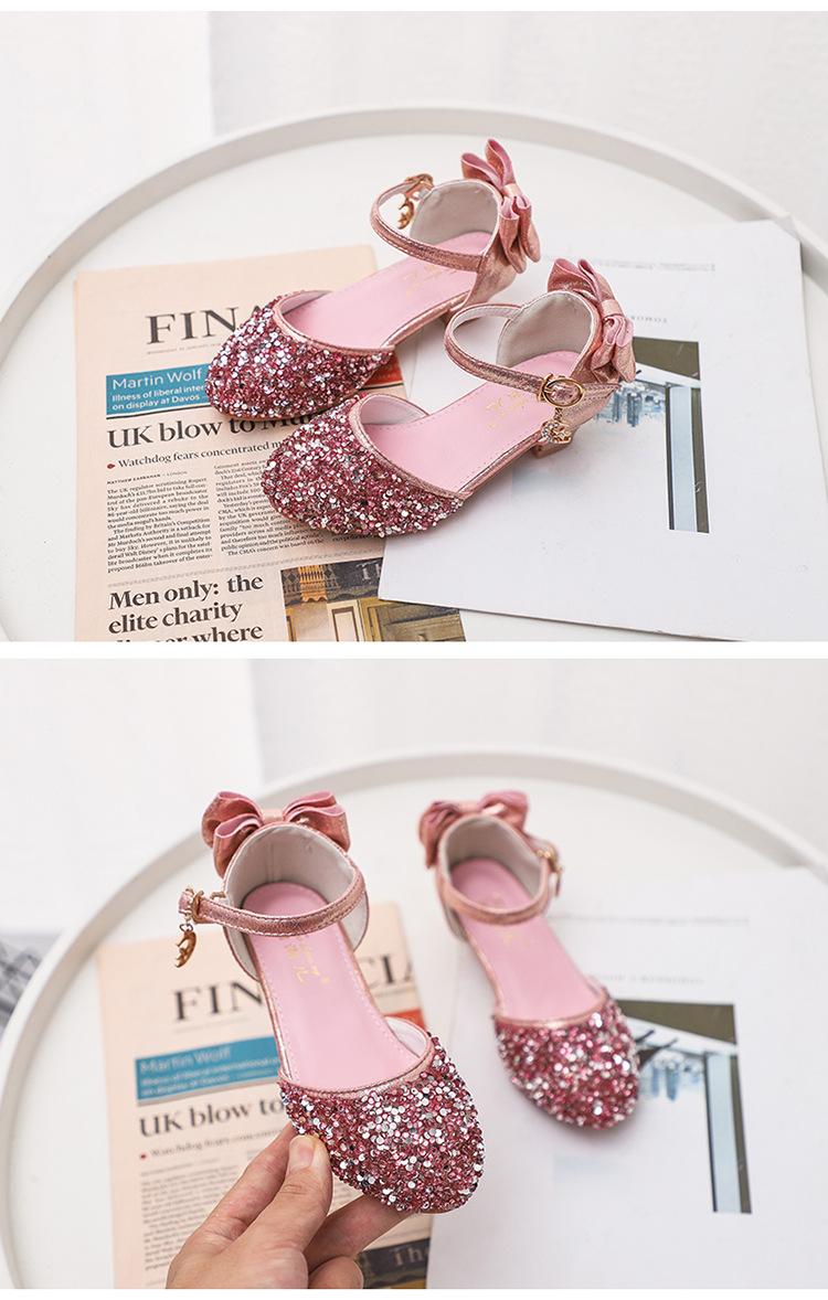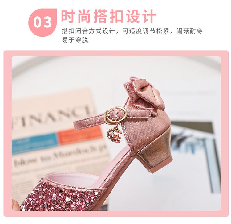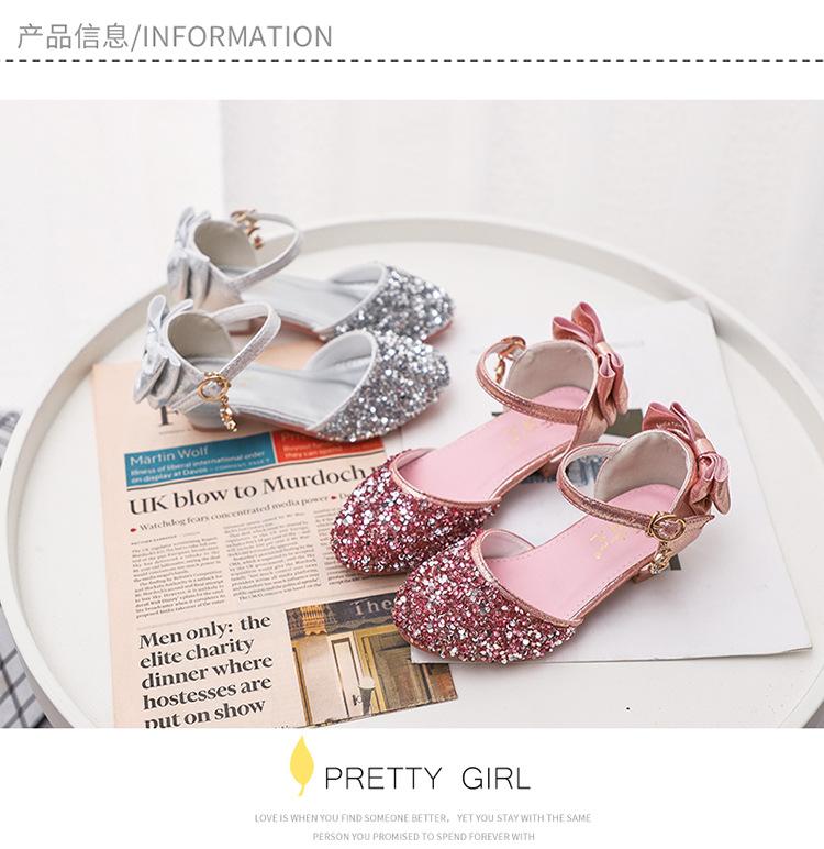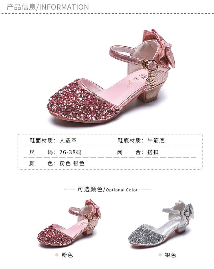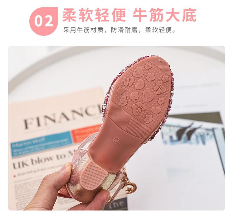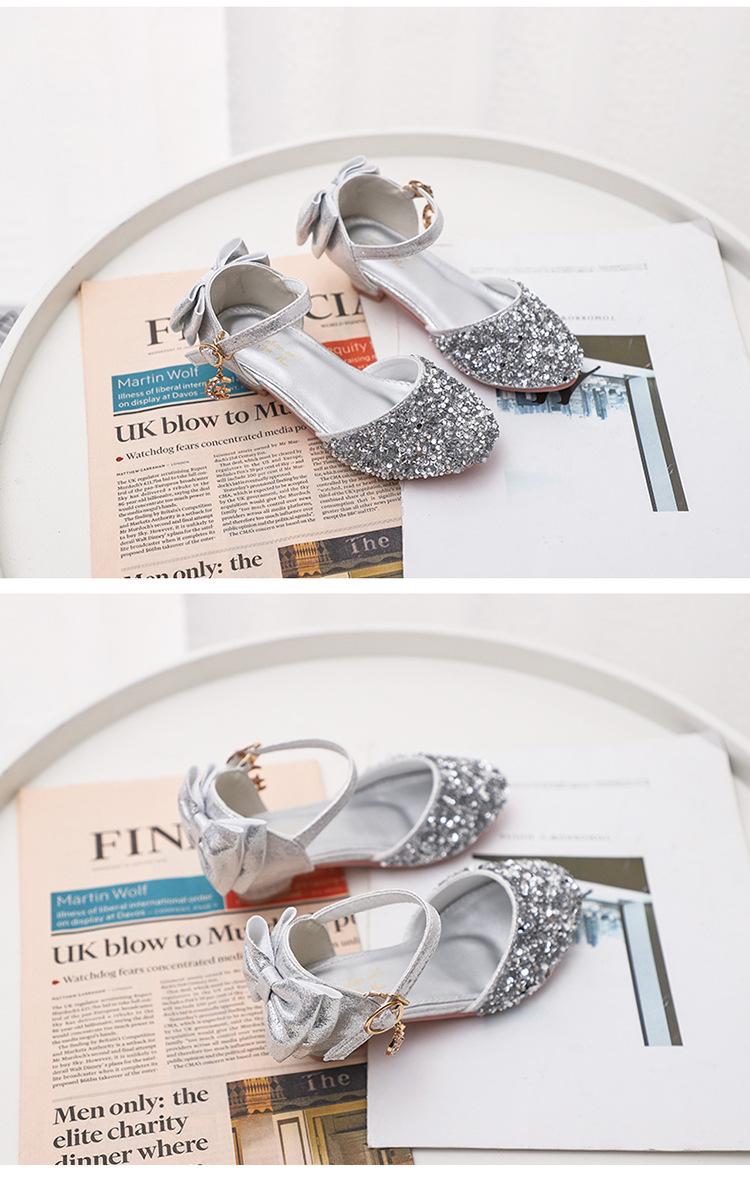 Sandalias para Niñas 2023 Verano Princesa Actuación Plata Tacones Altos para Niños Vestido a Juego Pasarela Escenario Zapatos de Cristal