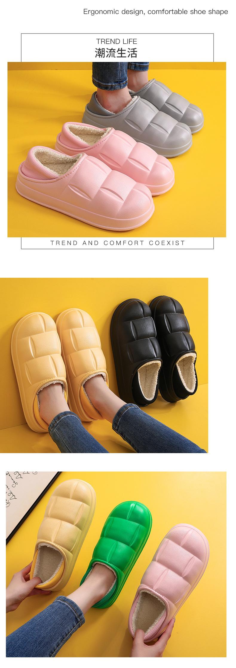 Zapatillas de algodón EVA impermeables para el hogar, con pétalos, para otoño e invierno, cálidas, para parejas, para uso exterior, zapatillas de algodón antideslizantes con forro polar