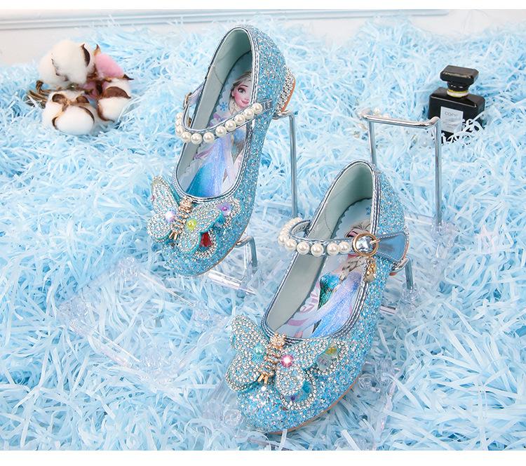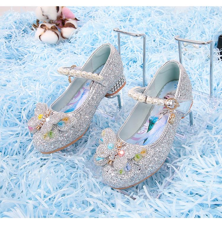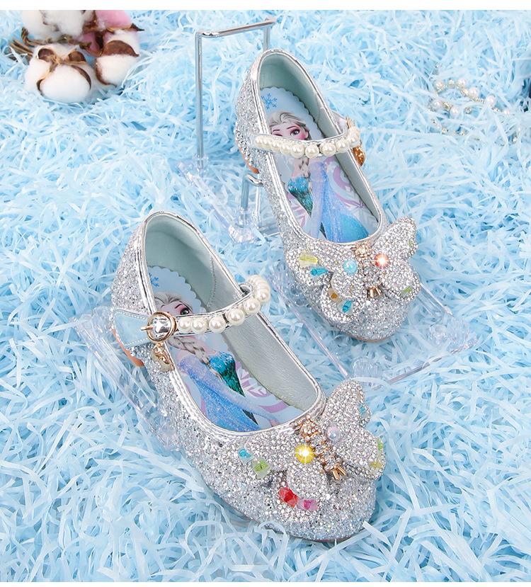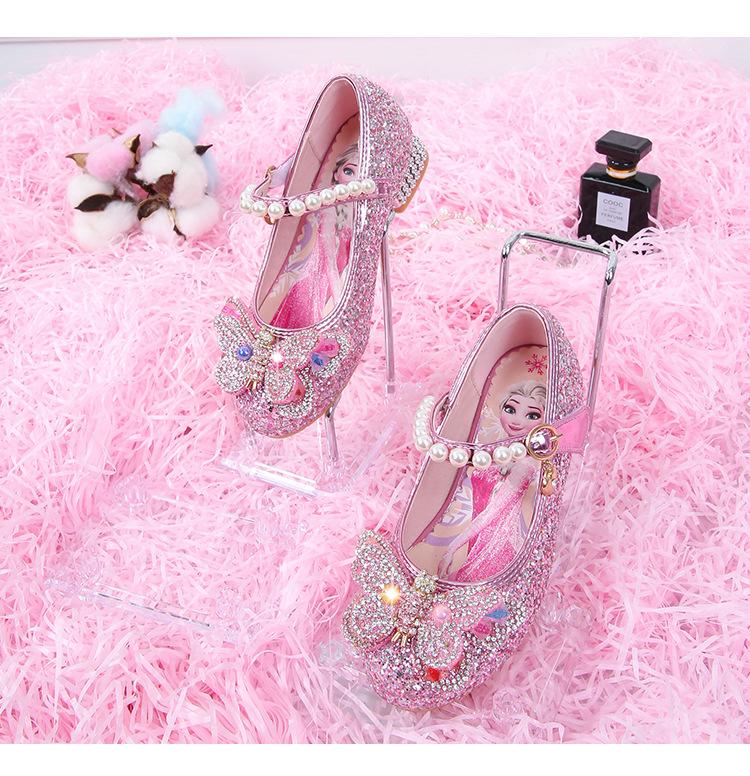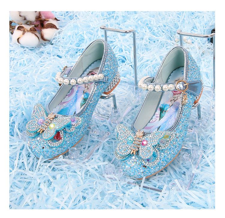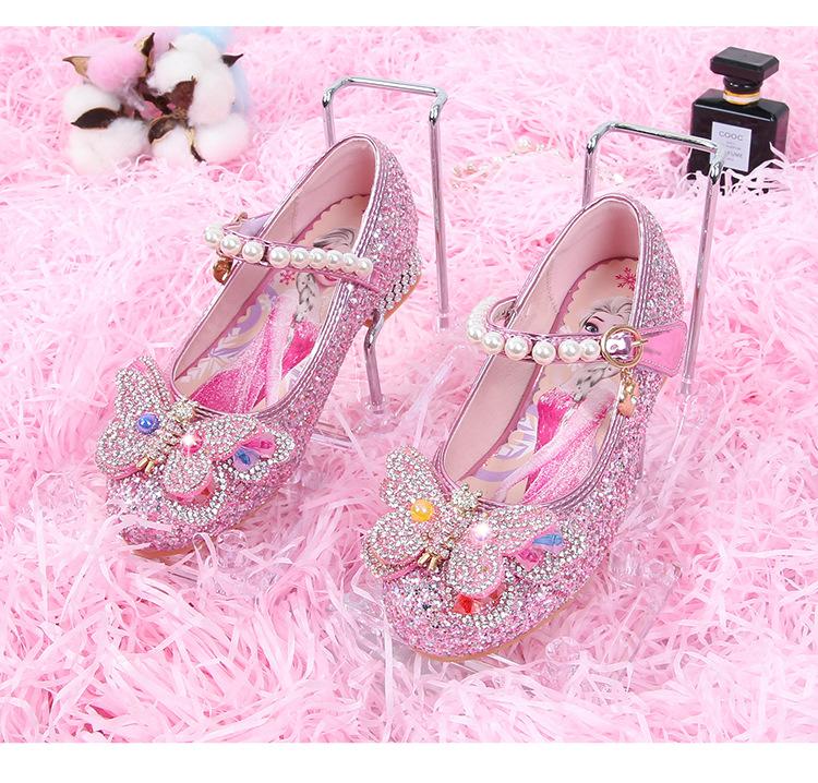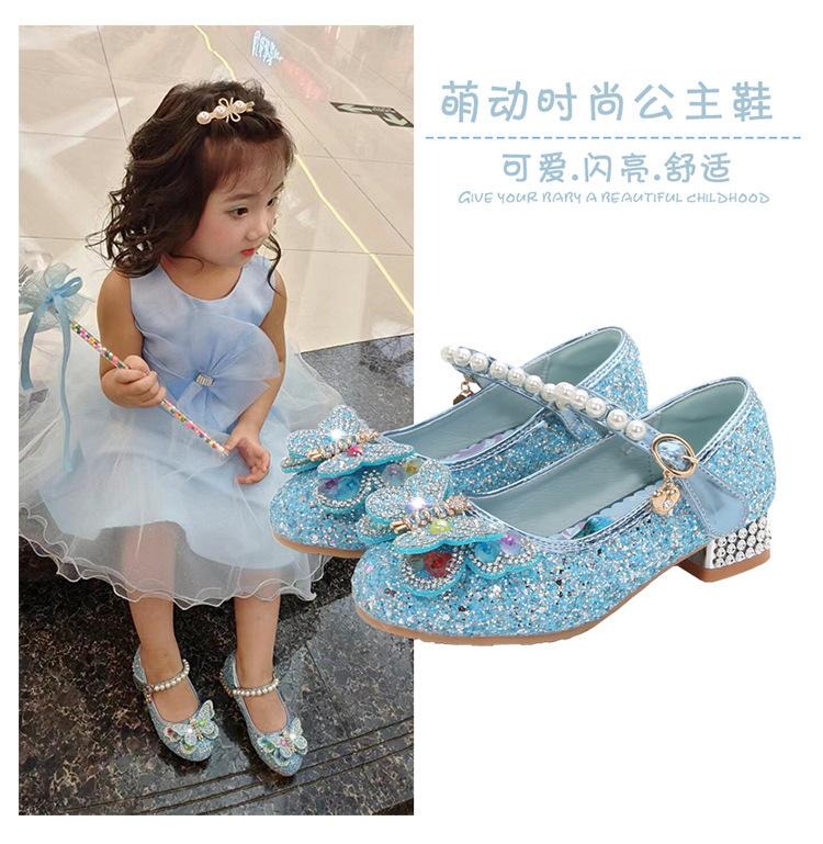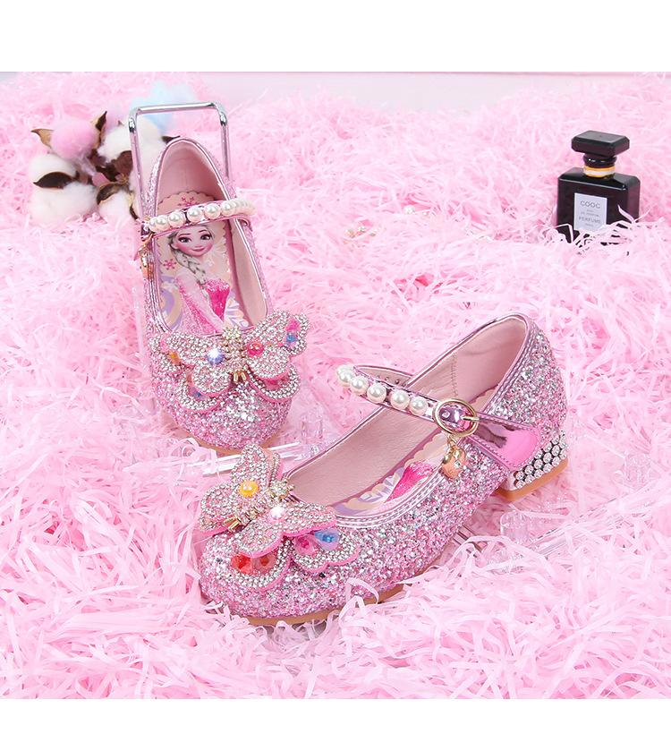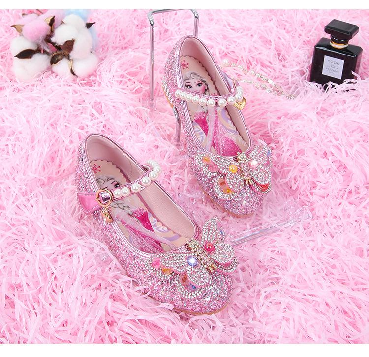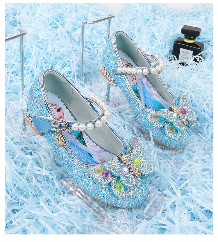 Zapatos de Cuero para Niñas 2025 Primavera y Otoño Nuevos Mariposa Perla Niñitas Elsa Princesa Zapatos Únicos Tacones Altos de Bebé para Actuación