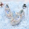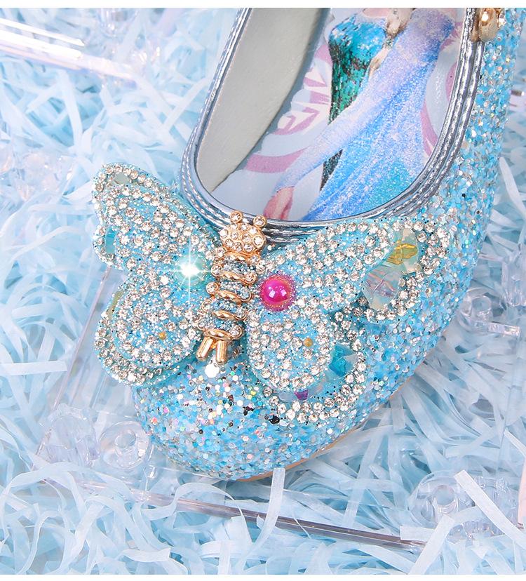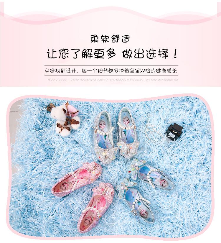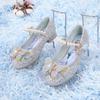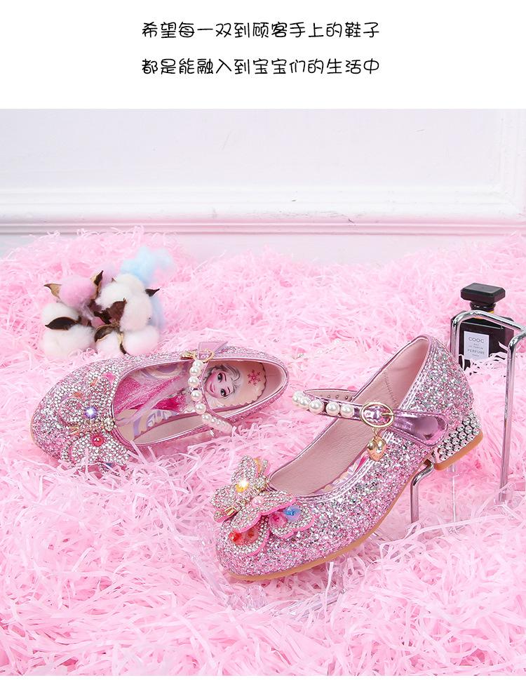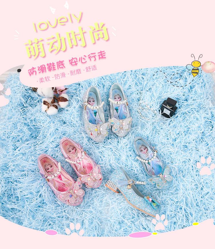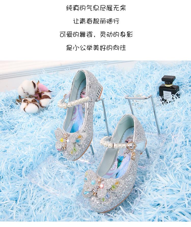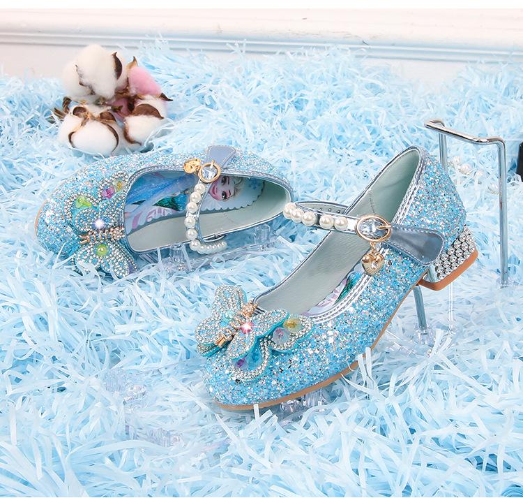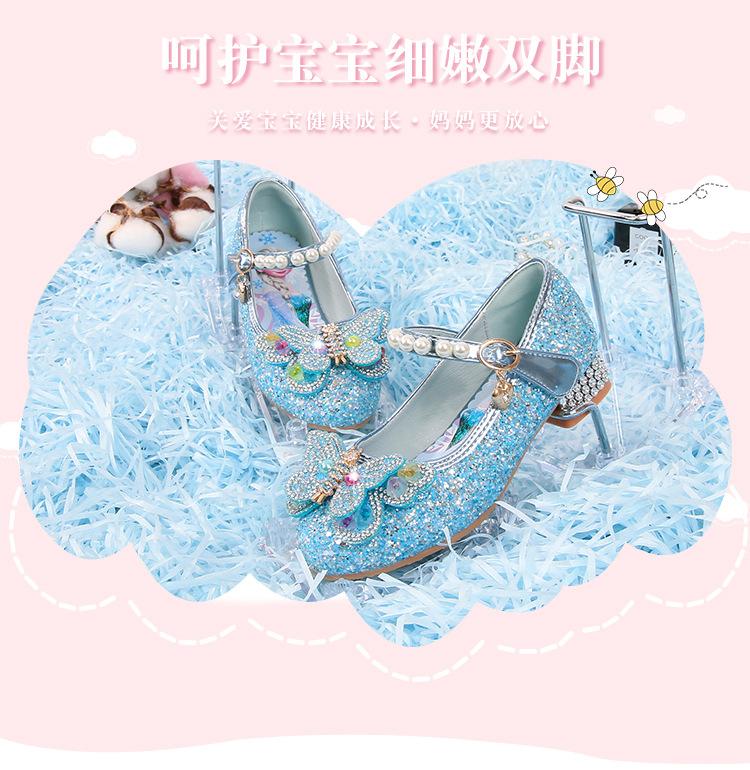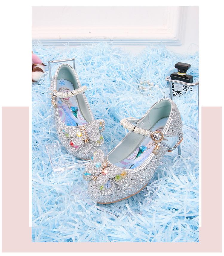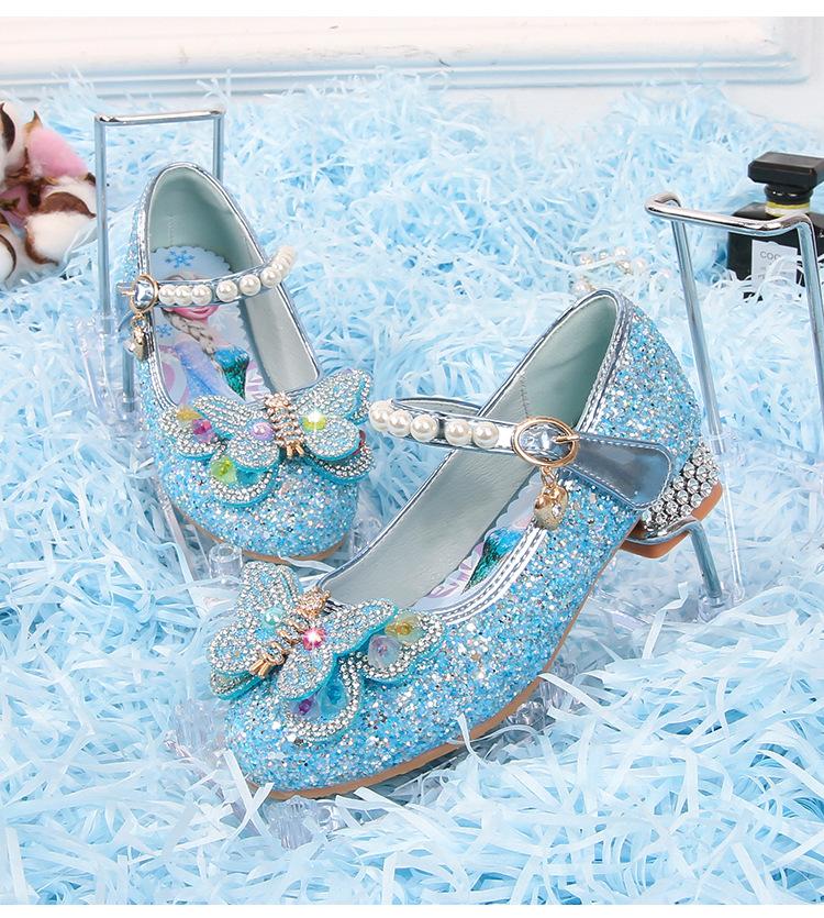 Zapatos de Cuero para Niñas 2025 Primavera y Otoño Nuevos Mariposa Perla Niñitas Elsa Princesa Zapatos Únicos Tacones Altos de Bebé para Actuación