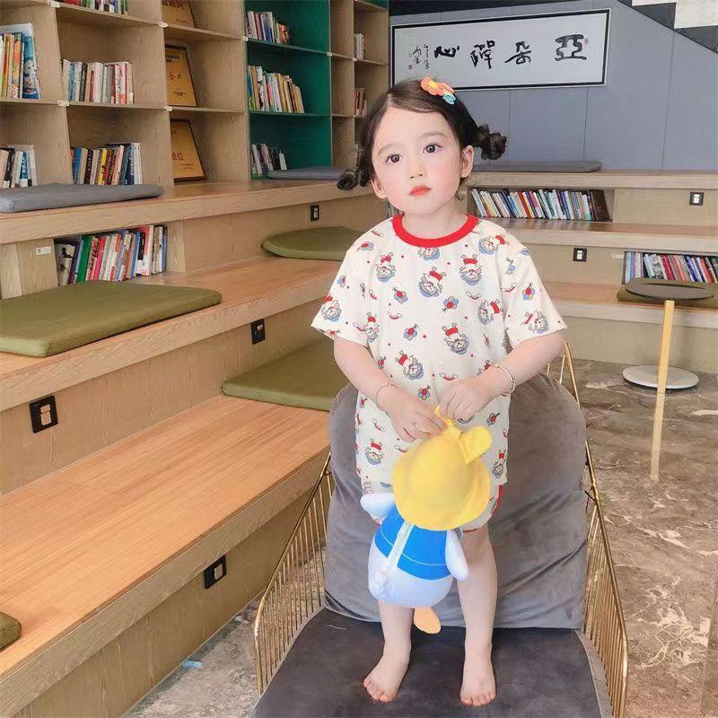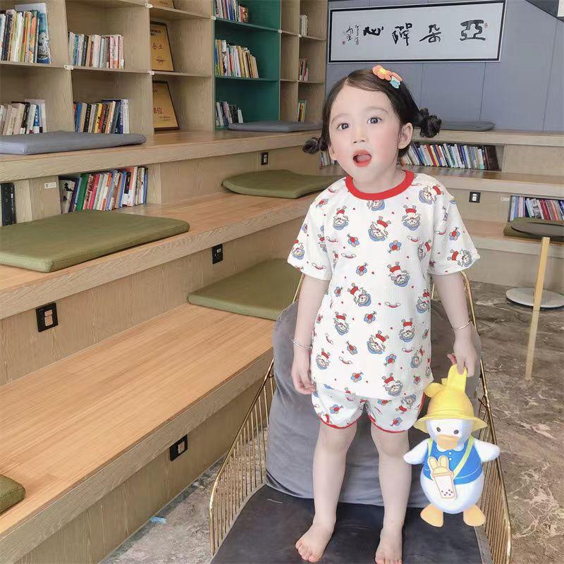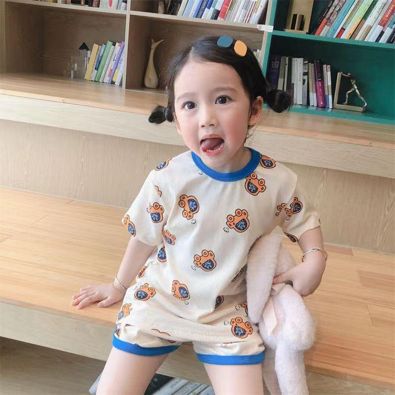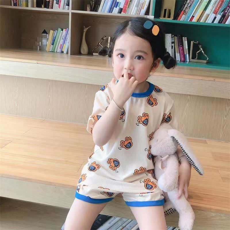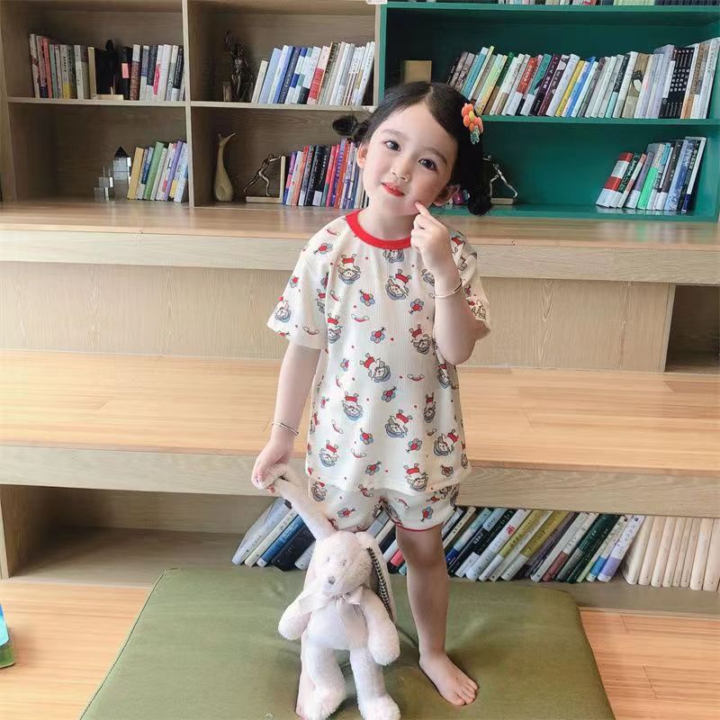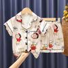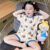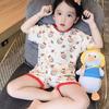 Conjunto para Bebé de Tela de Seda de Hielo Holgado de Verano de Manga Corta y Shorts Pijama para Niños y Niñas de Hielo de Dos Piezas Ropa para el Hogar Ropa para Aire Acondicionado