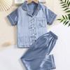 Pijama infantil de primavera y verano tipo seda, traje de pantalones de manga corta, ropa para el hogar para niños medianos y grandes, cárdigan para niños, ropa para el hogar de color sólido