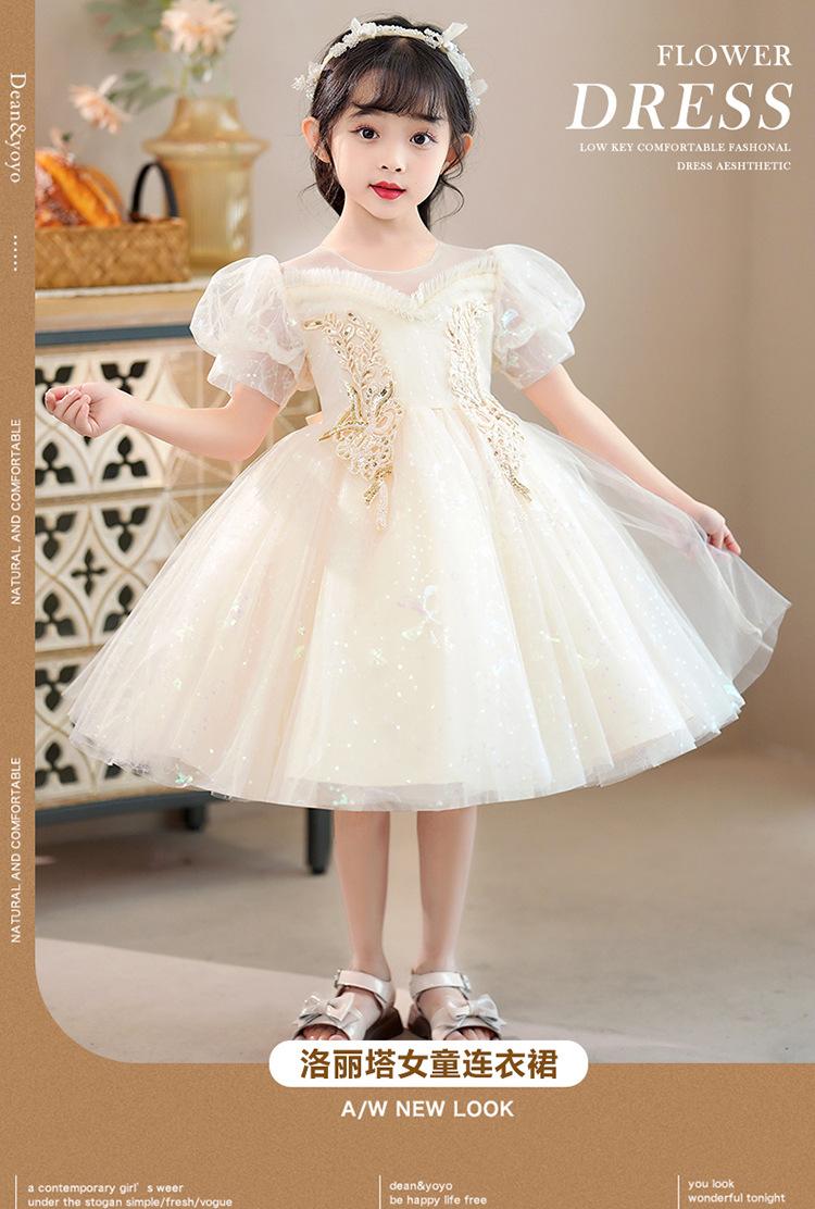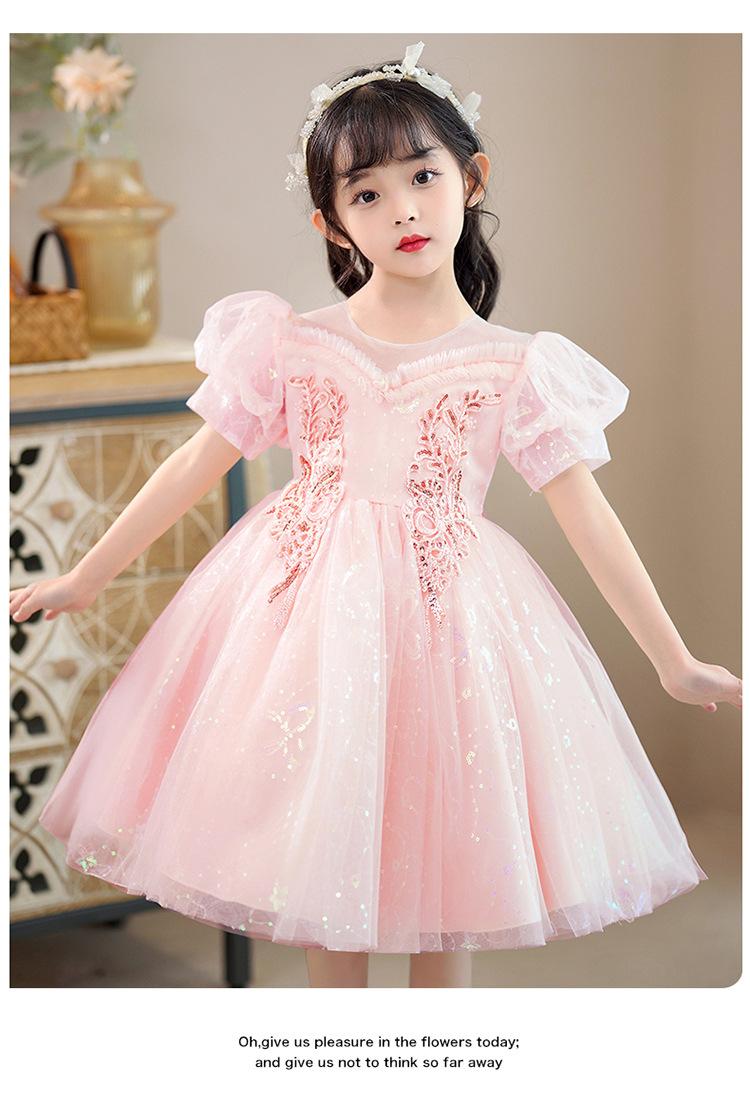 Vestido de Niña Vestido de Princesa 2025 Nuevo Verano Estilo Infantil Vestido de Manga Corta Ropa de Actuación para Festival de Bebé Verano