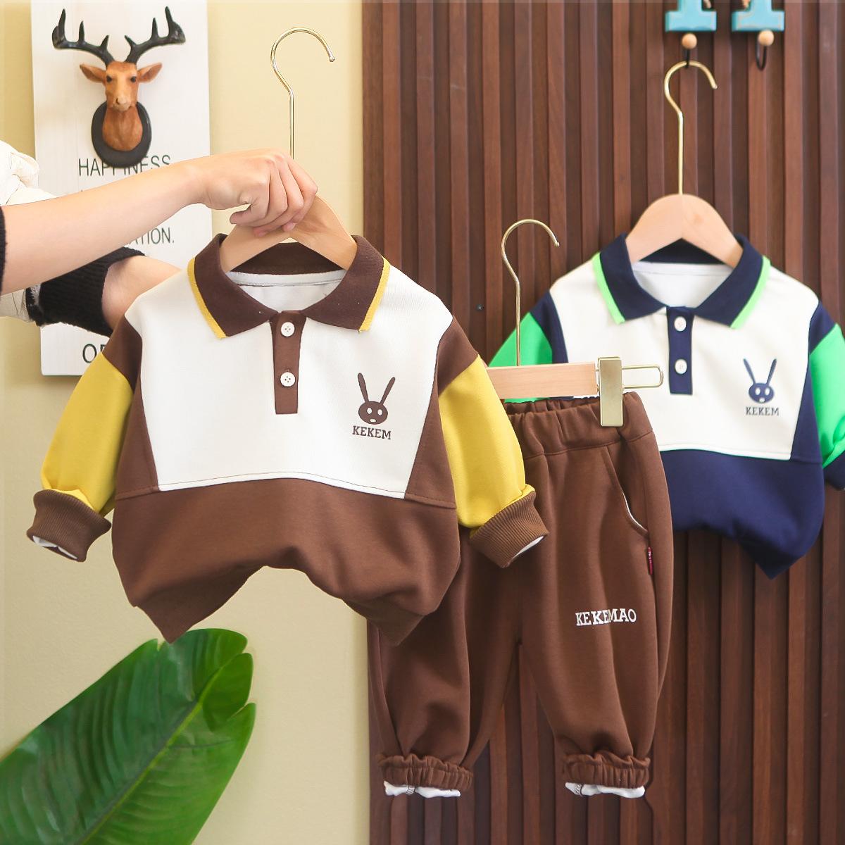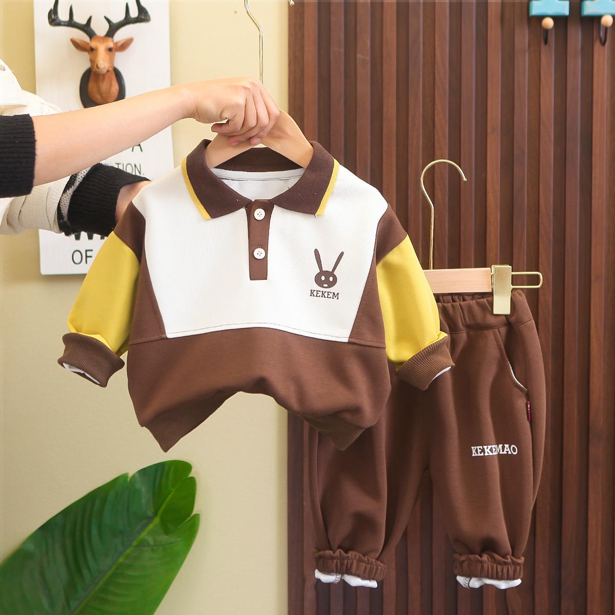 Traje para niños Primavera y otoño 2024 Nuevo conjunto de dos piezas de manga larga de estilo occidental de moda para 3 niños Ropa casual para niños de 6 años