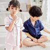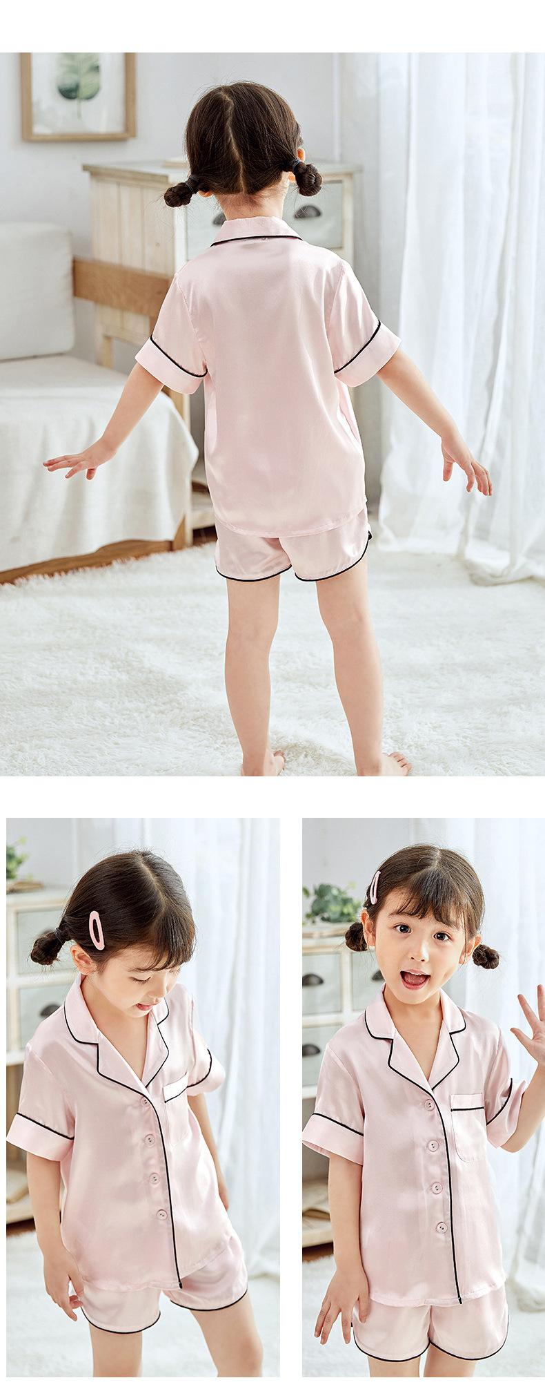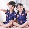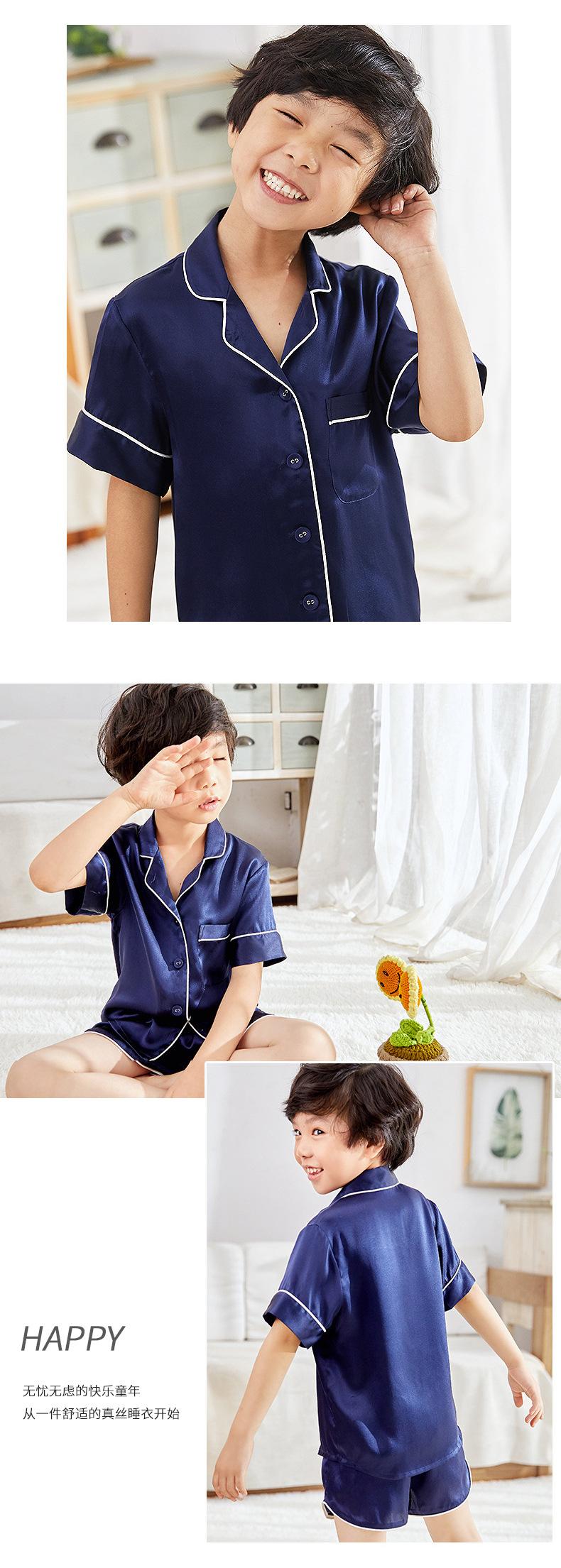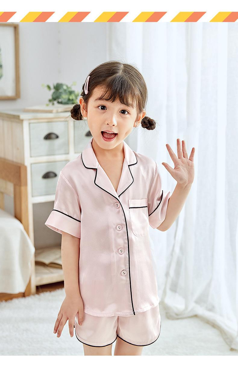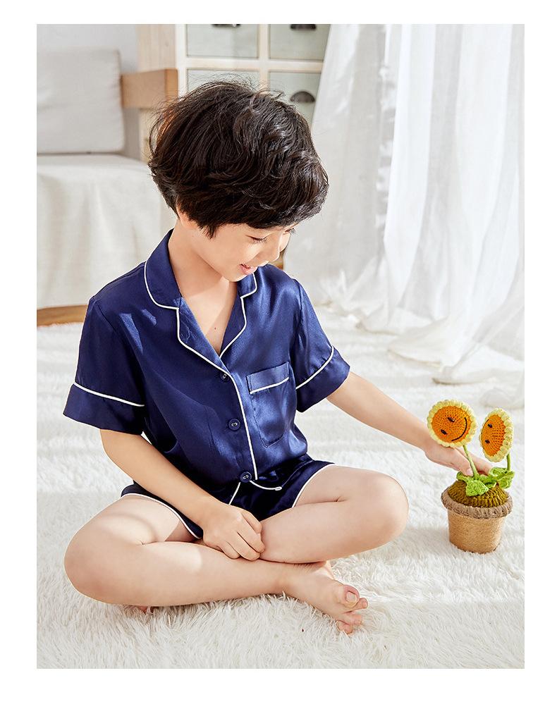 Pijama de seda 100% morera con bordado de mariposas para niños, pantalones cortos de manga corta, traje transpirable para padres e hijos, pijama de seda de verano