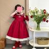 Vestido de verano de estilo coreano para niñas, nuevo vestido de princesa de color sólido con mangas abullonadas y cuello de muñeca a la moda para niños
