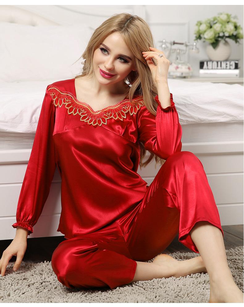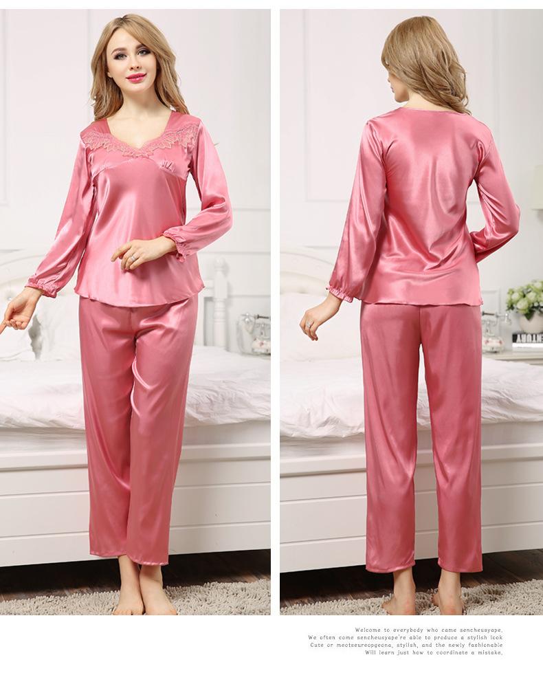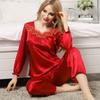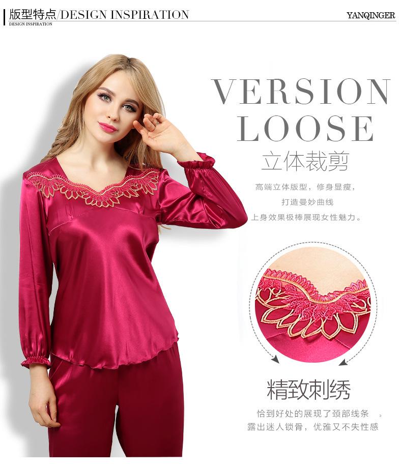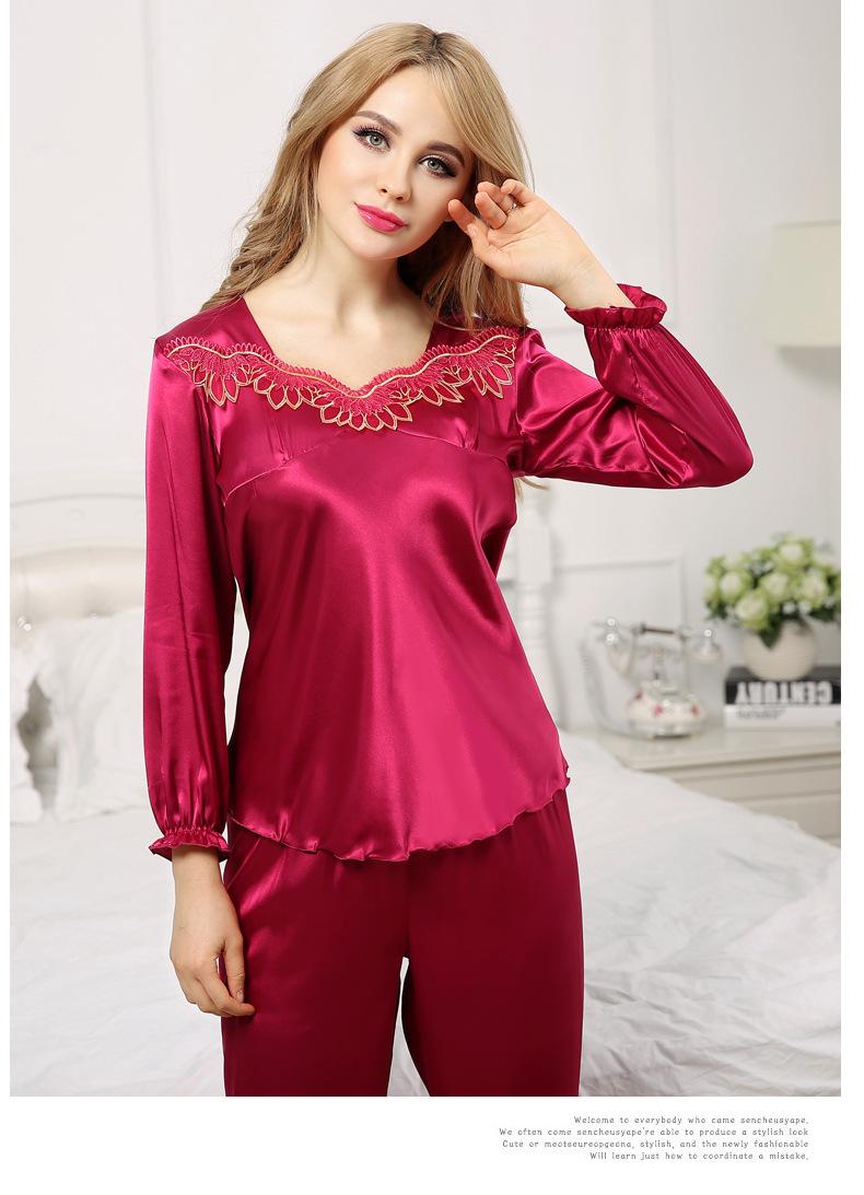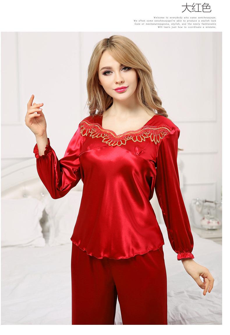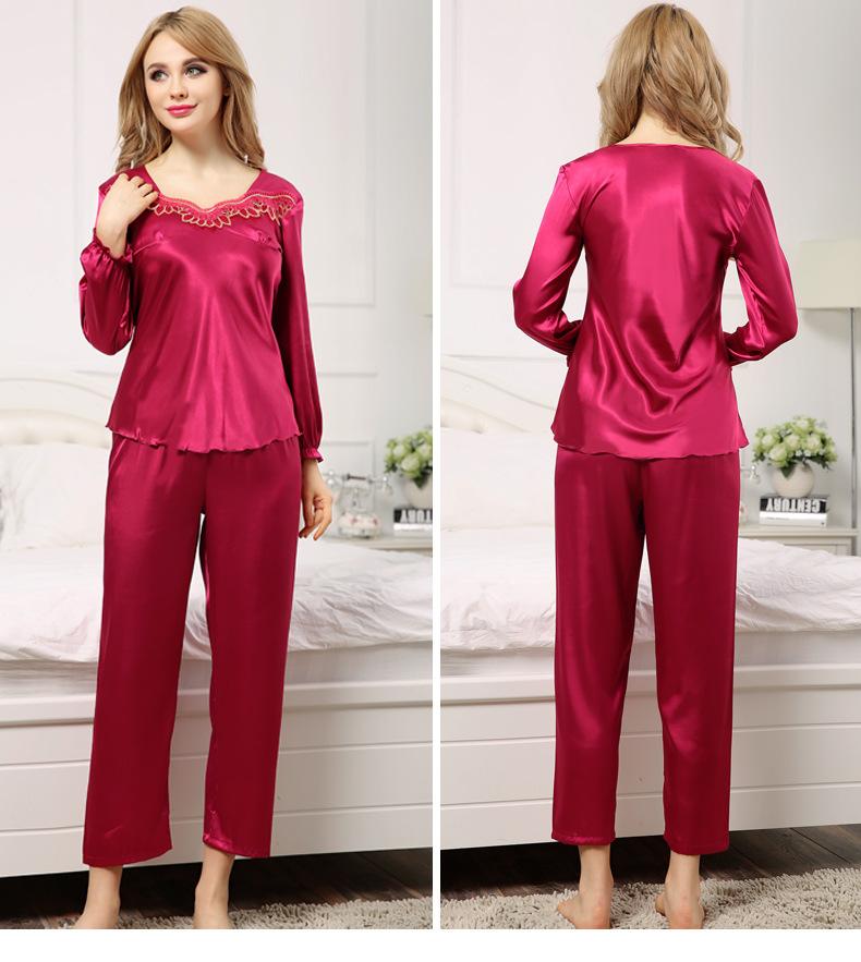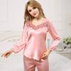 Nuevo Conjunto de Pijama de Primavera y Otoño para Mujer Ropa de Casa de Seda Pijama Delgado de Manga Larga de Seda para Mujer