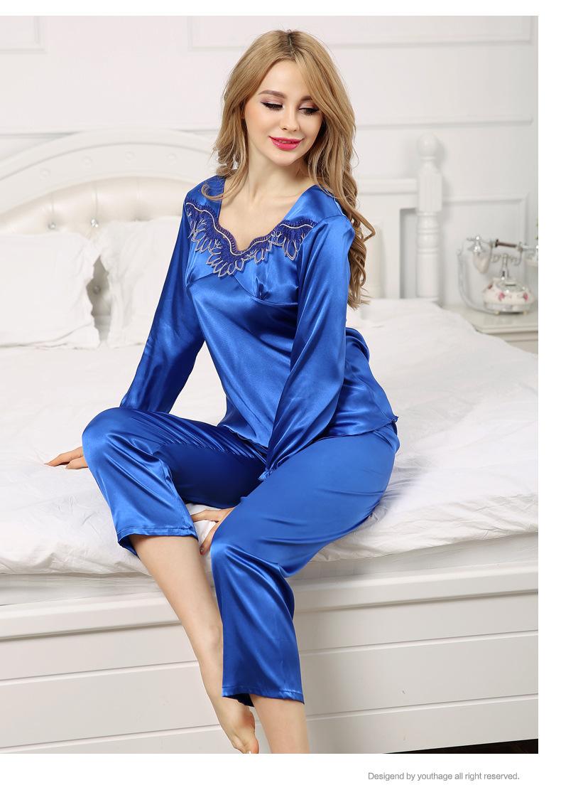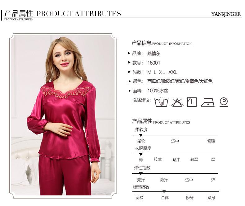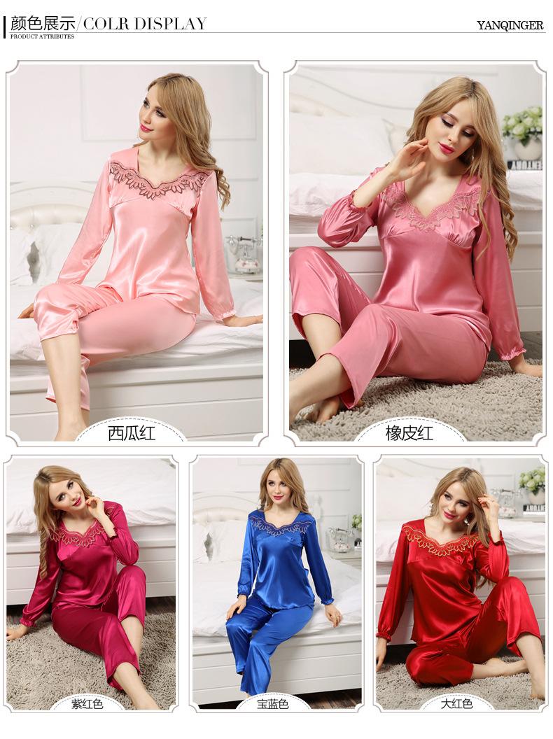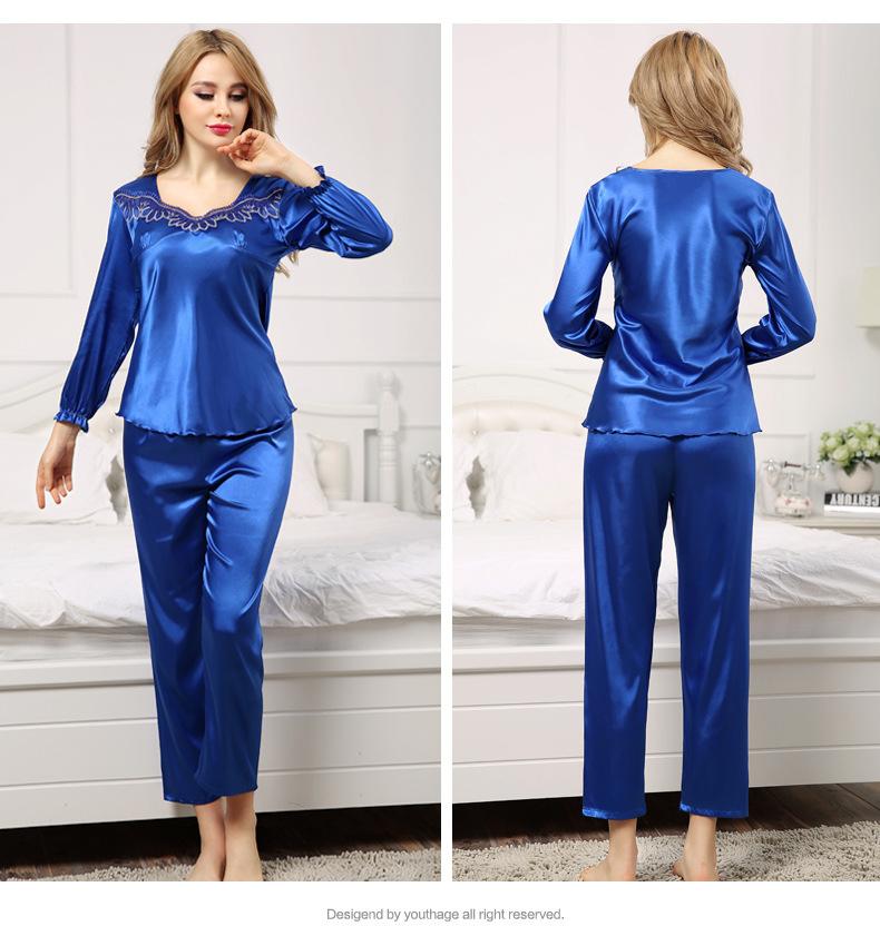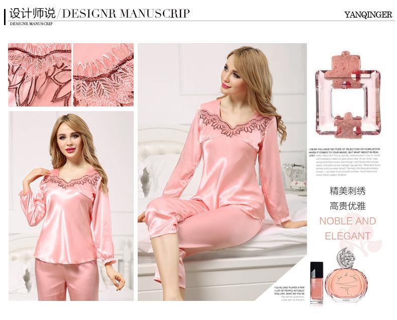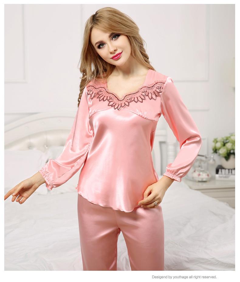 Nuevo Conjunto de Pijama de Primavera y Otoño para Mujer Ropa de Casa de Seda Pijama Delgado de Manga Larga de Seda para Mujer