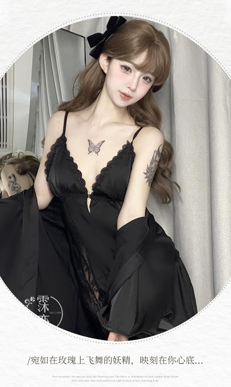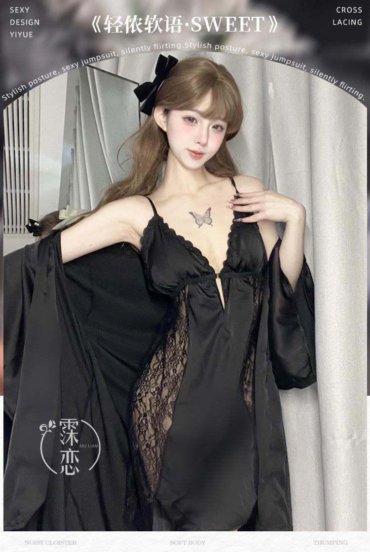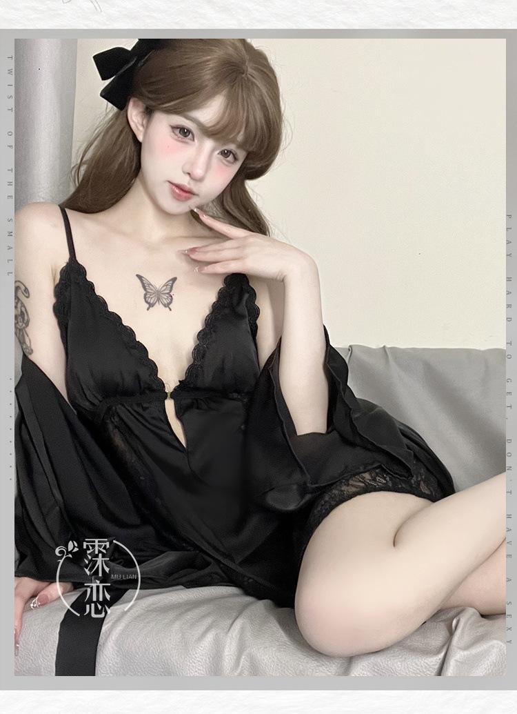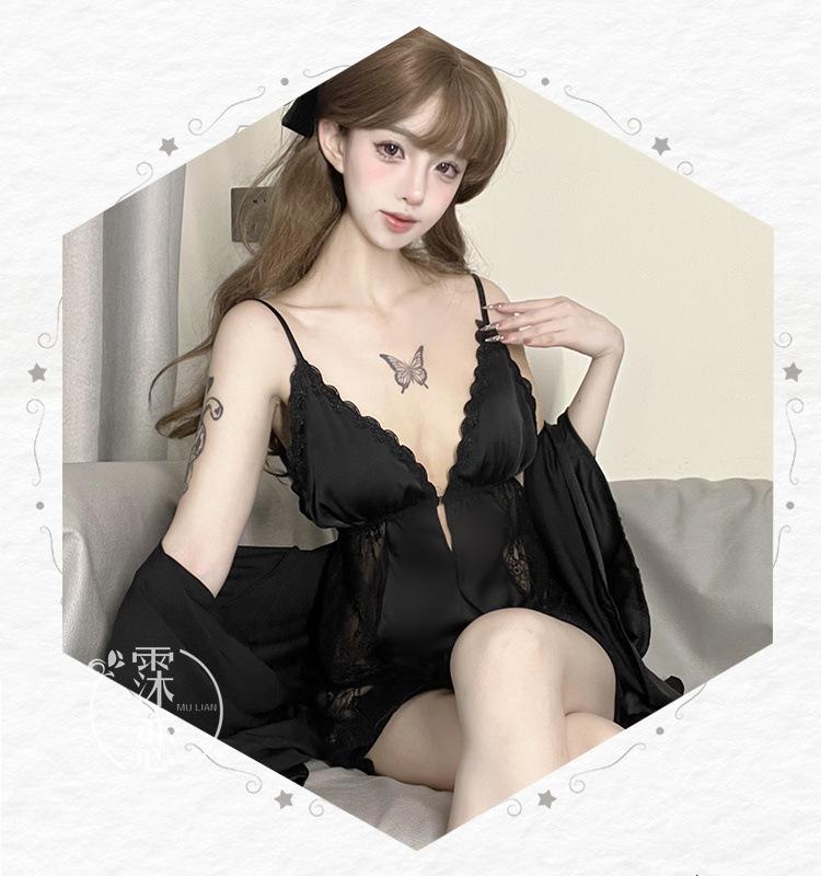 Lencería sexy Milian, camisón sexy sin mangas de talla grande, ropa de casa de estilo coreano, tirantes de encaje, ropa sexy de puro deseo |