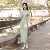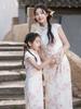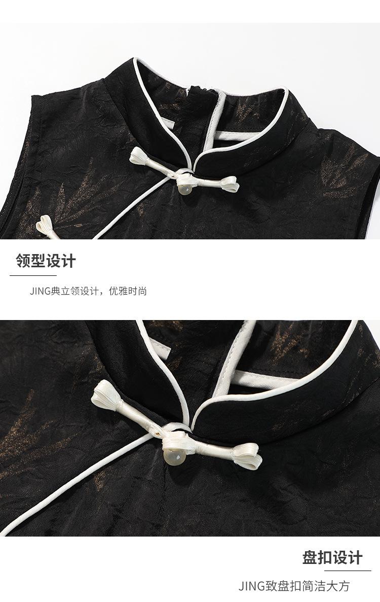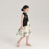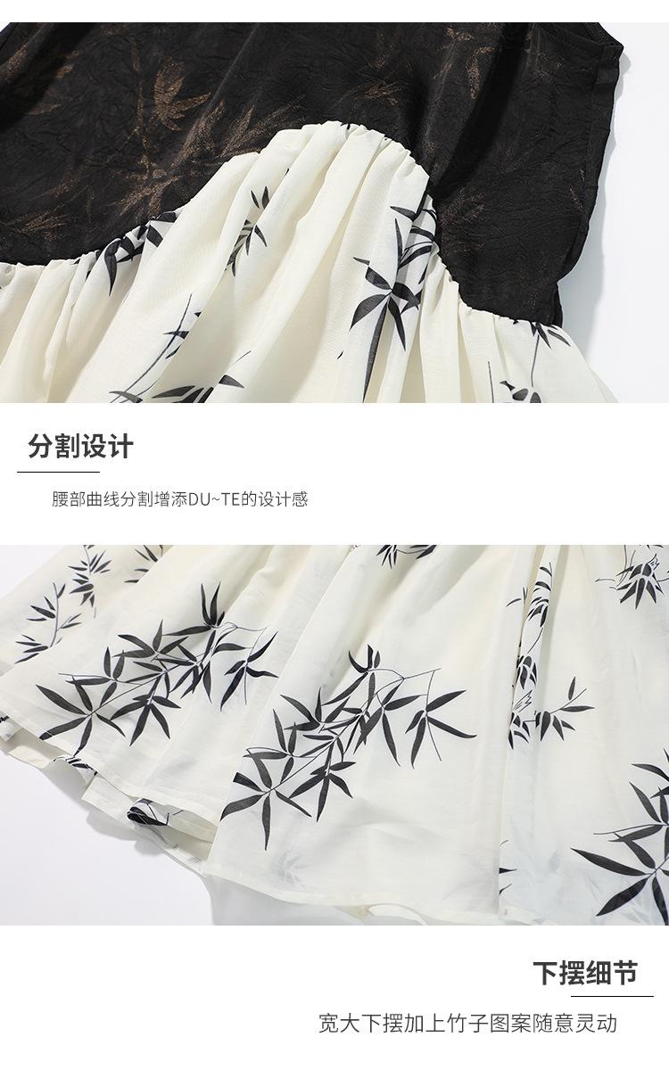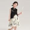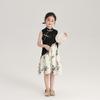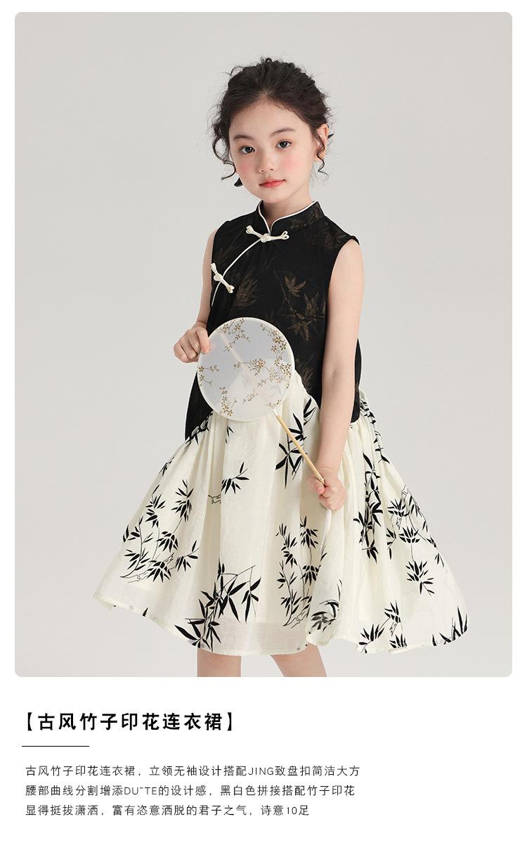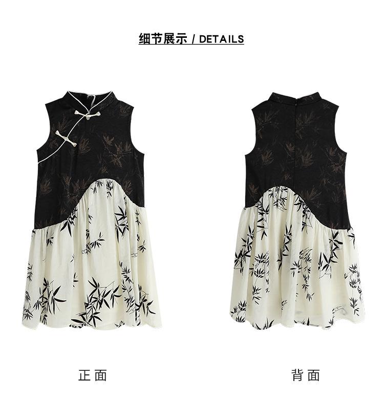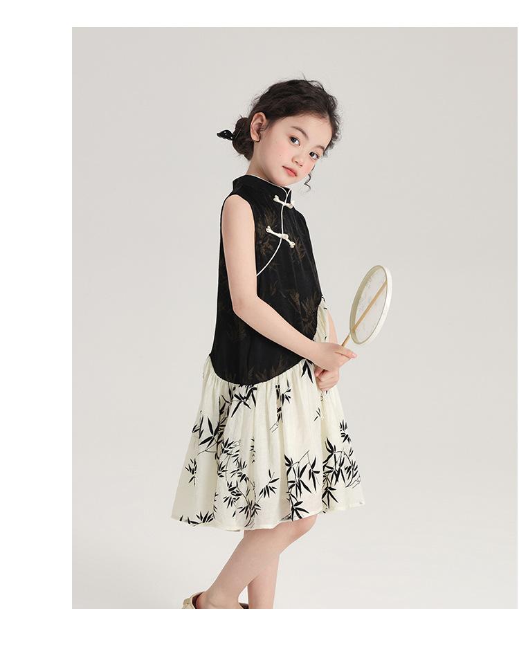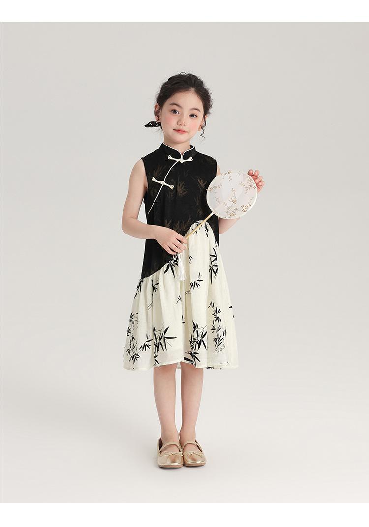 Vestido cheongsam elegante para niña, estilo nacional, estampado de bambú, blanco y negro, novedad de verano de 2024