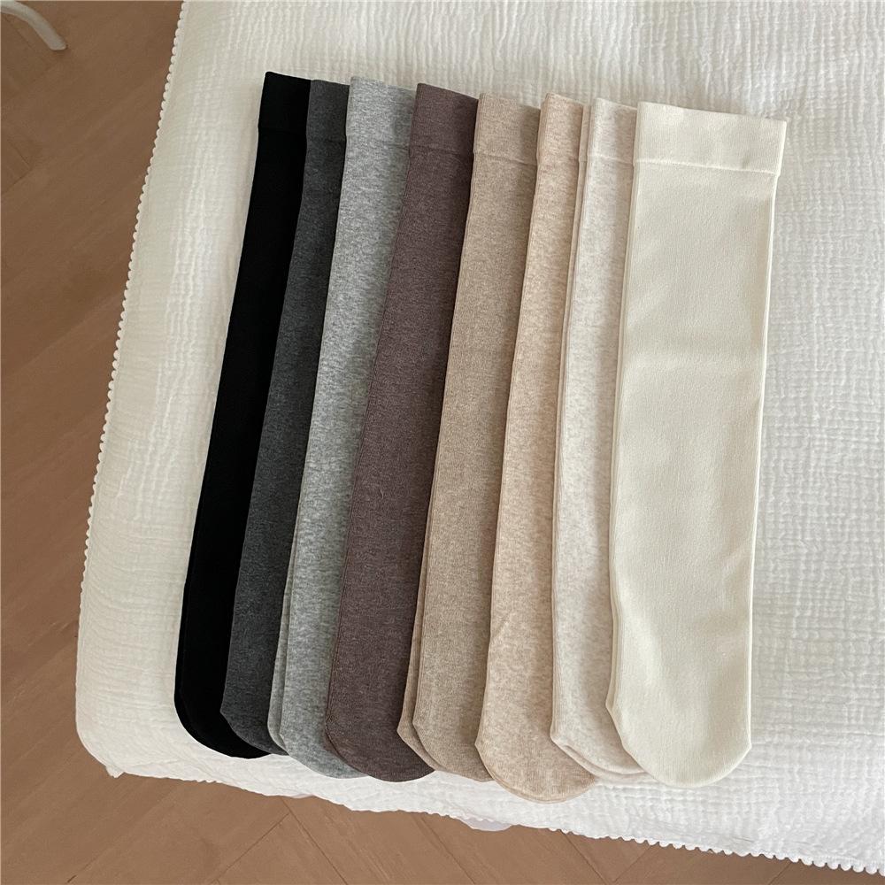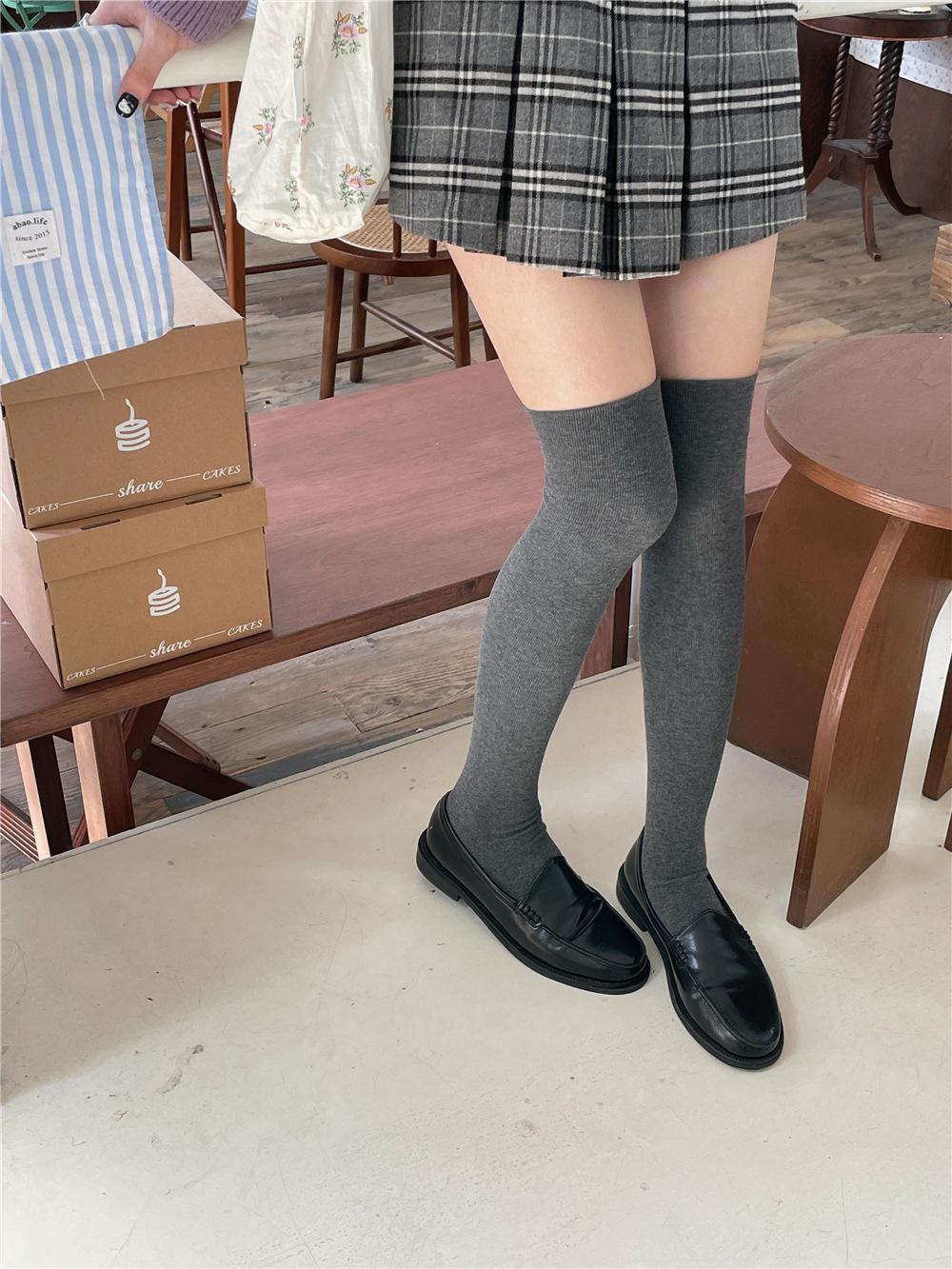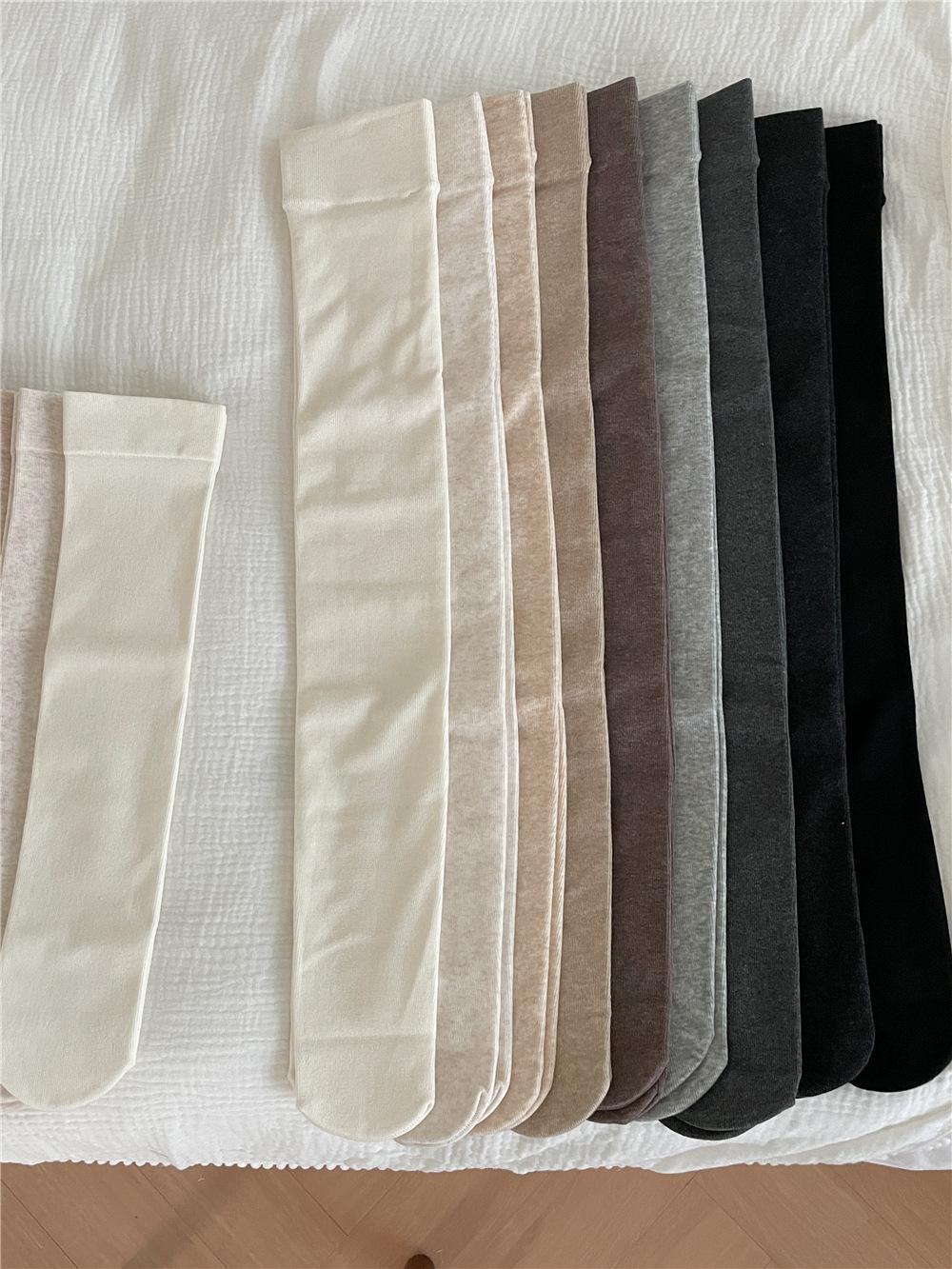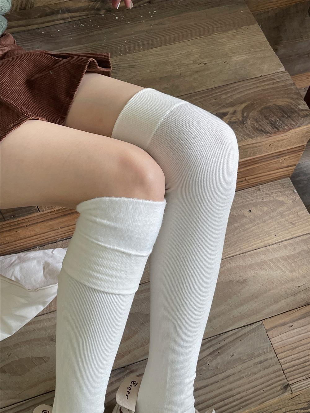 Calcetines por encima de la rodilla, medias adelgazantes JK, botas altas negras, calcetines planos con forro polar.