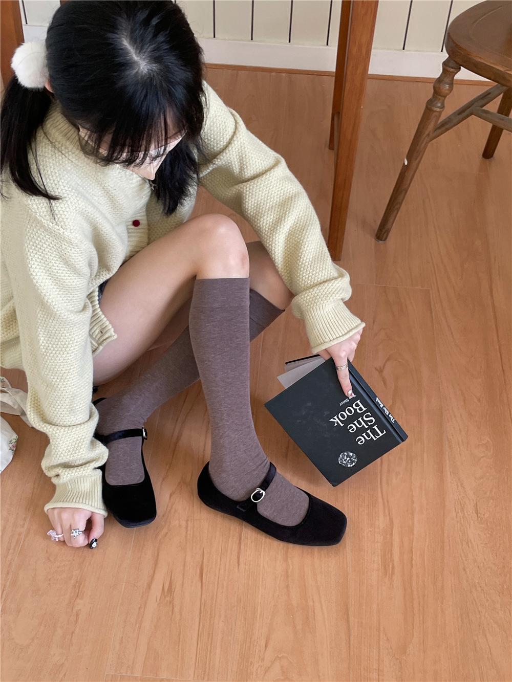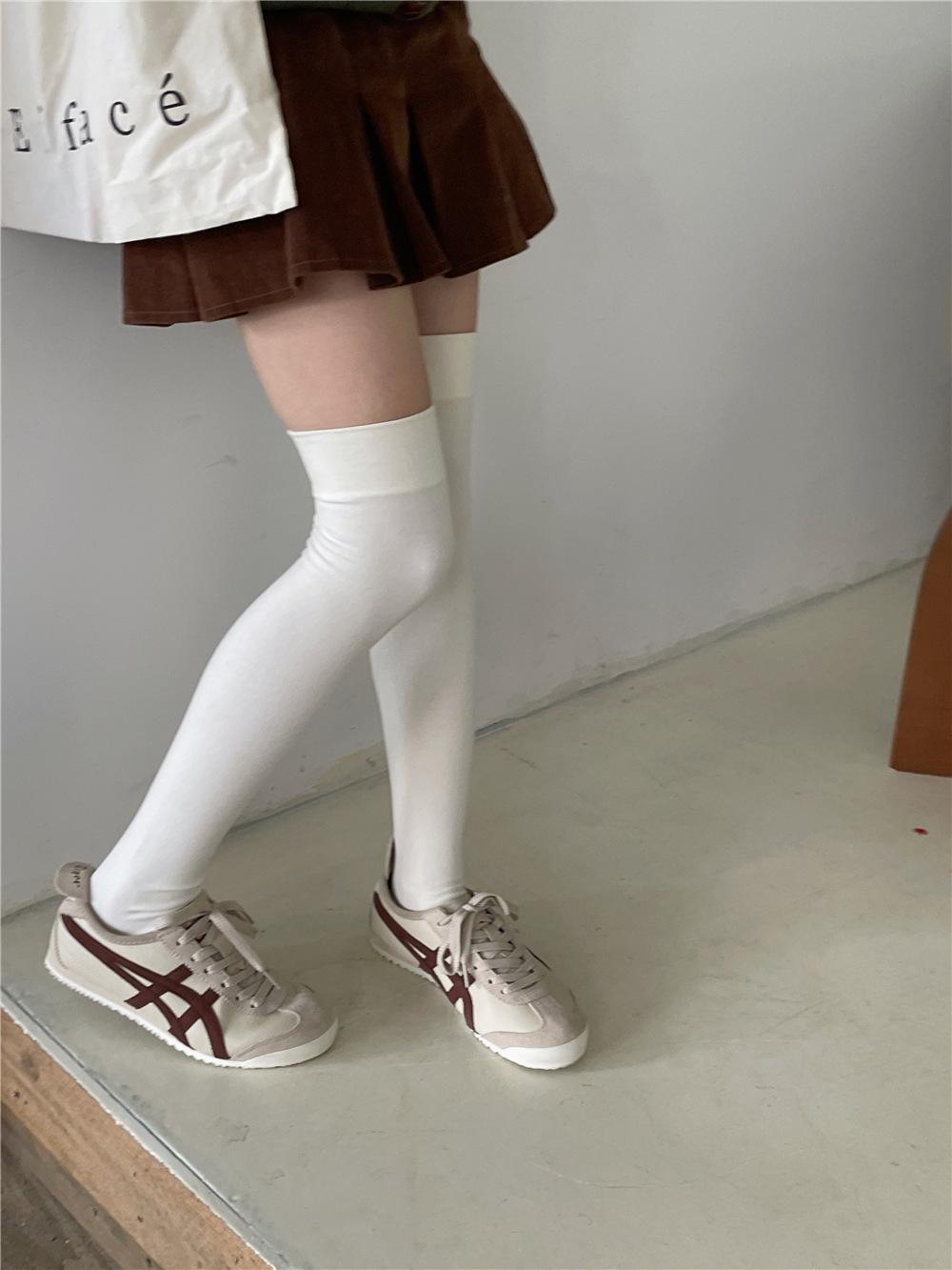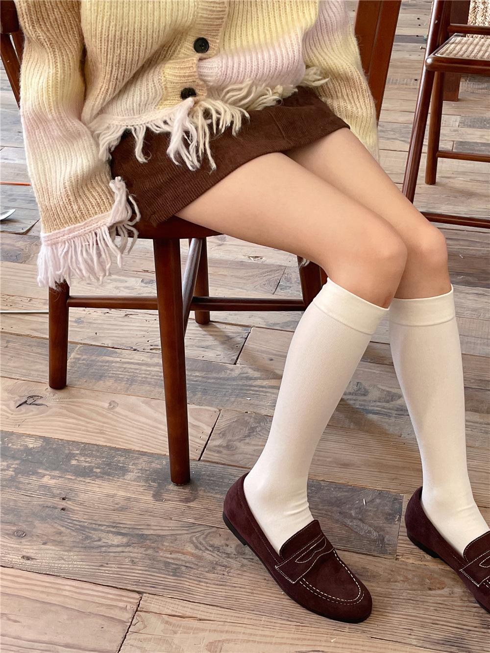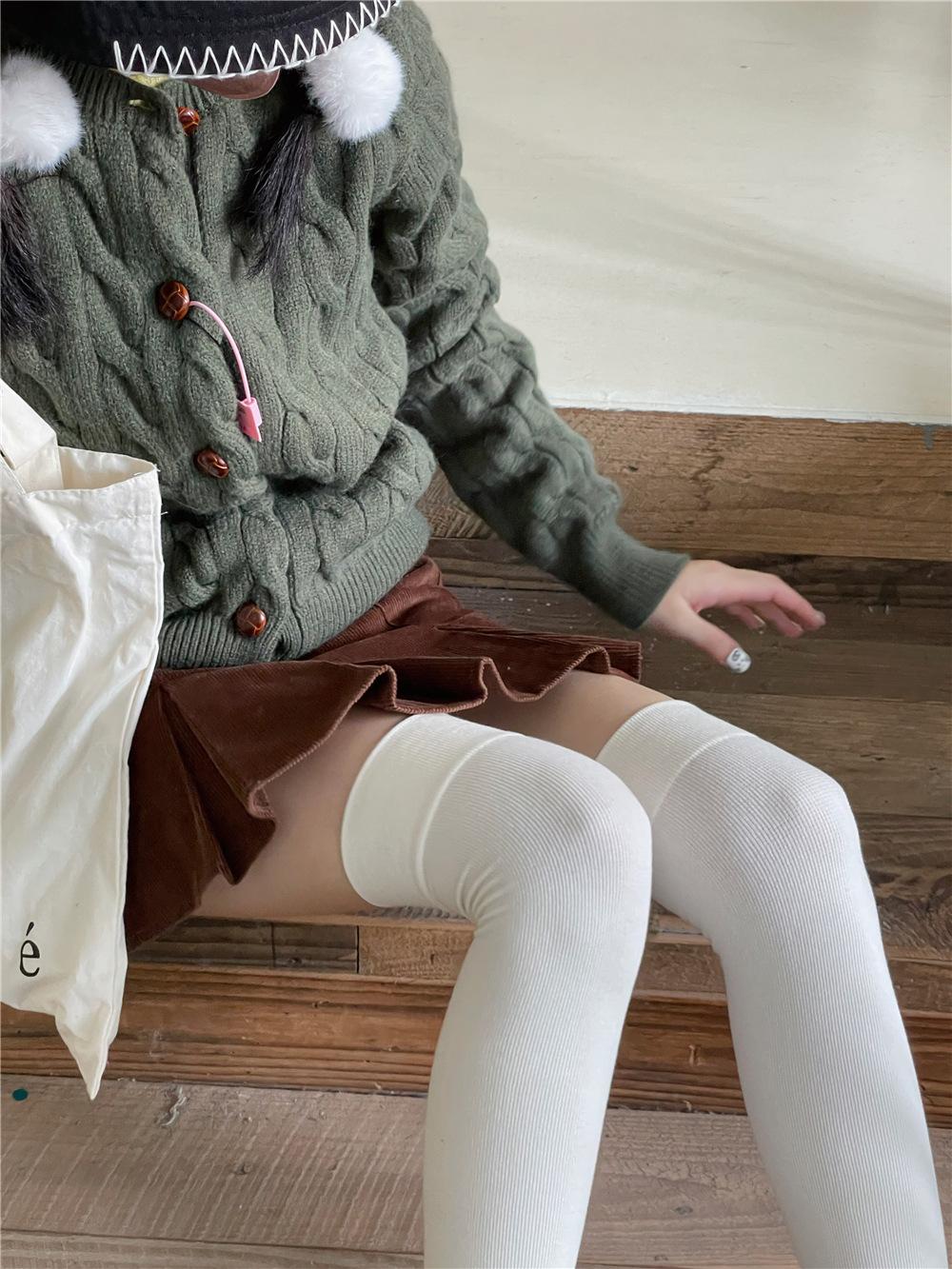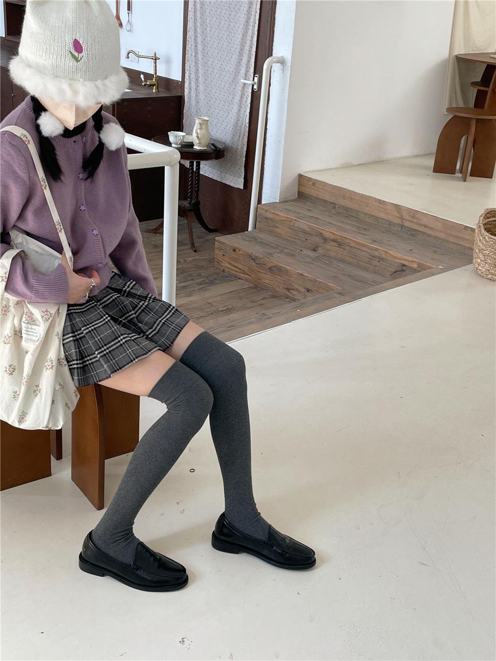 Calcetines por encima de la rodilla, medias adelgazantes JK, botas altas negras, calcetines planos con forro polar.