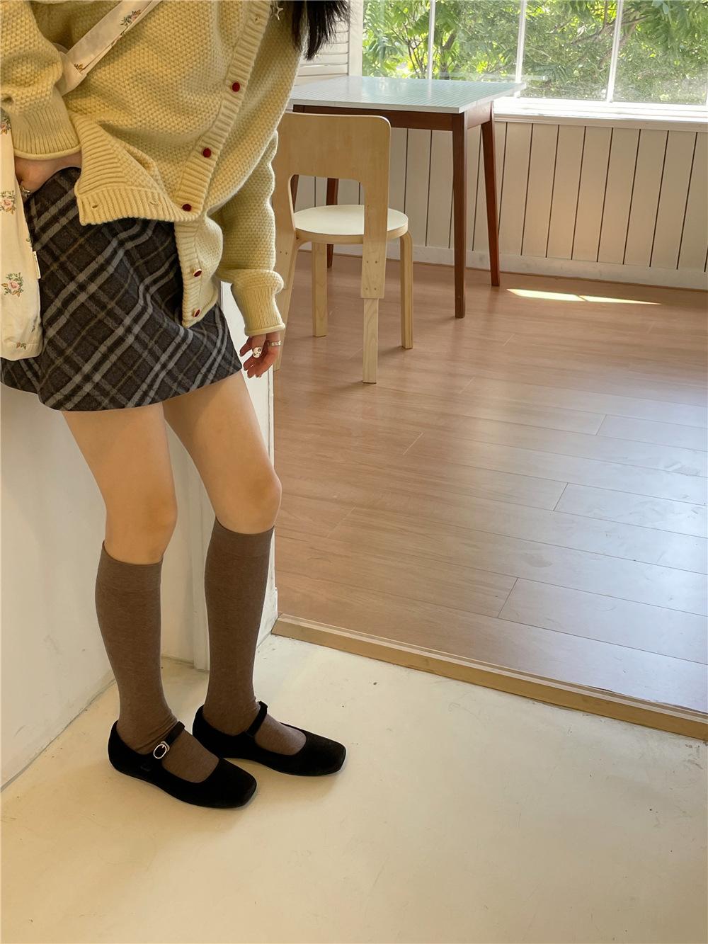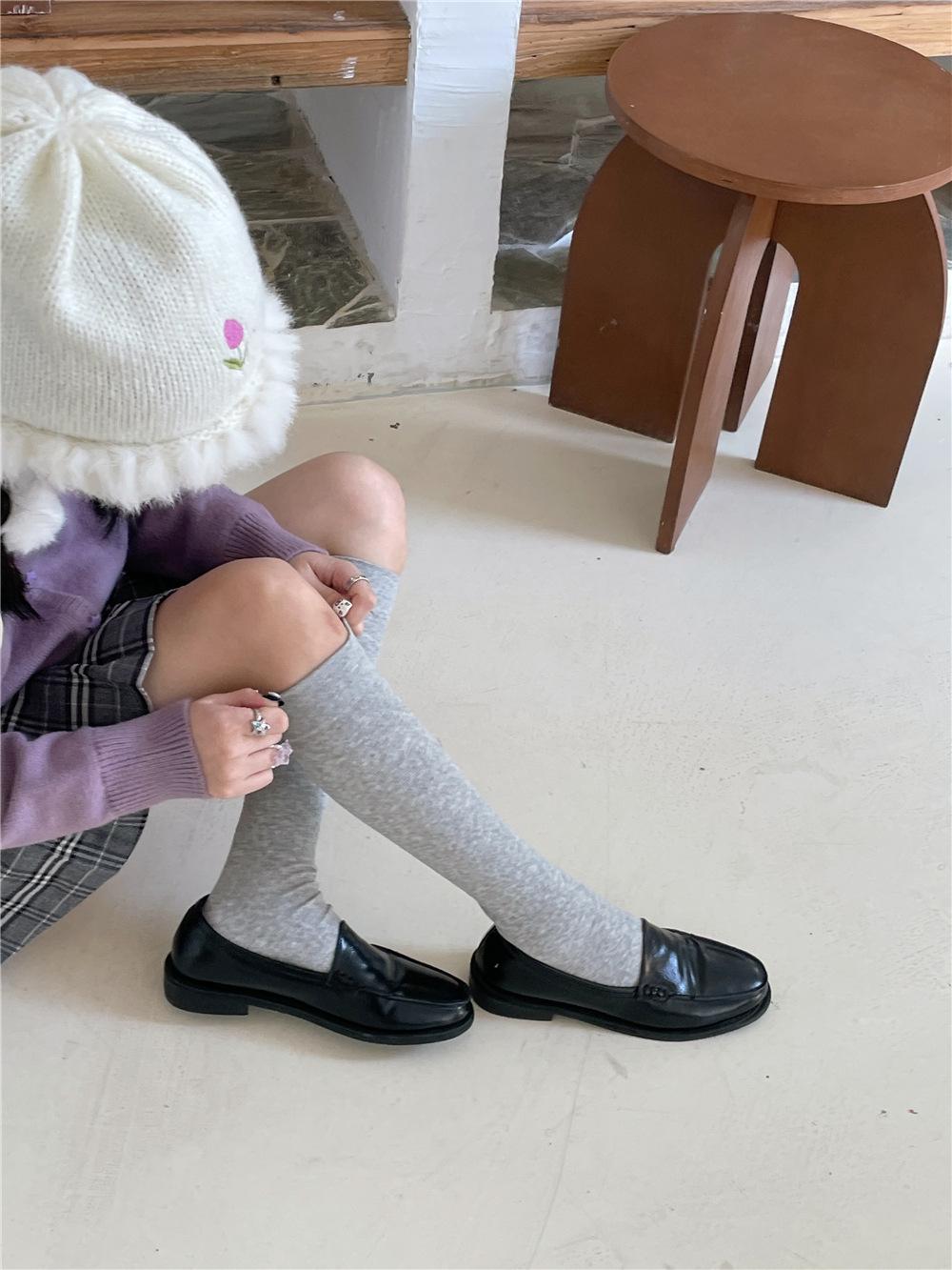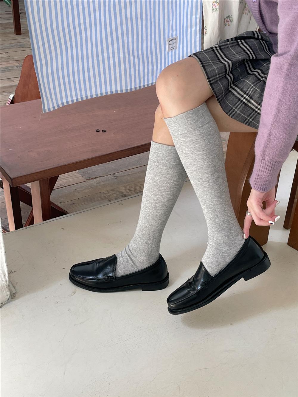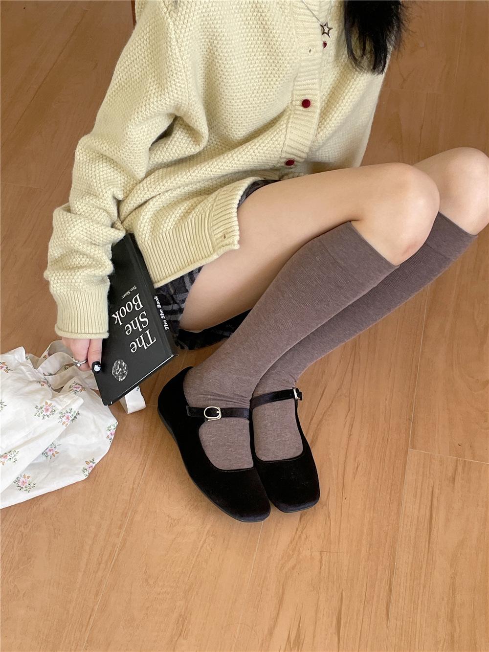 Calcetines por encima de la rodilla, medias adelgazantes JK, botas altas negras, calcetines planos con forro polar.