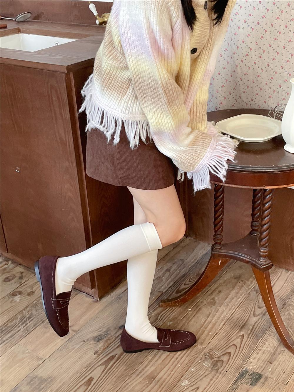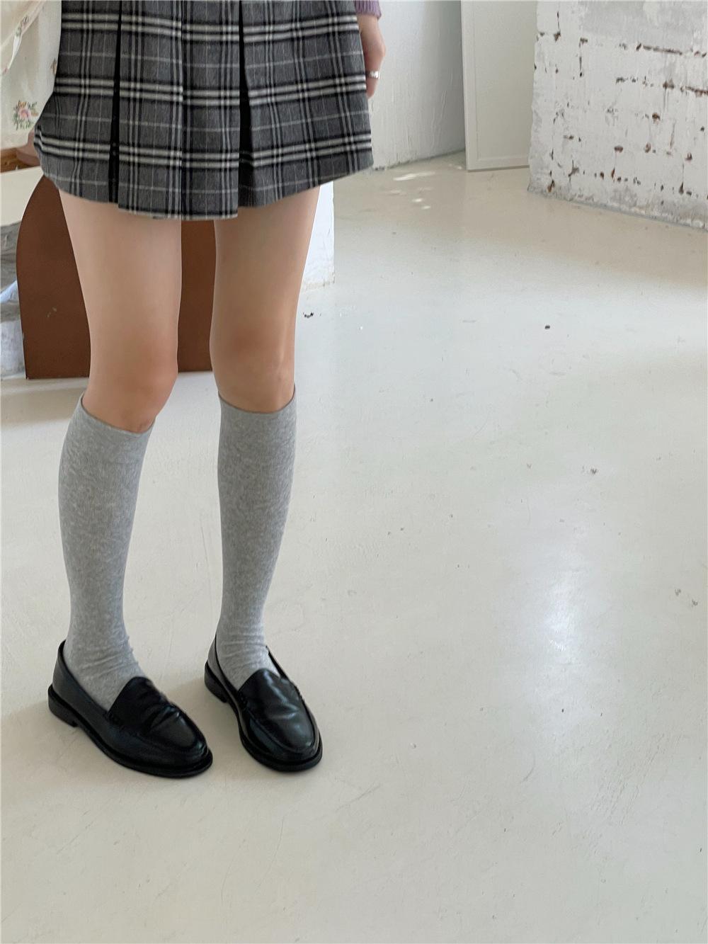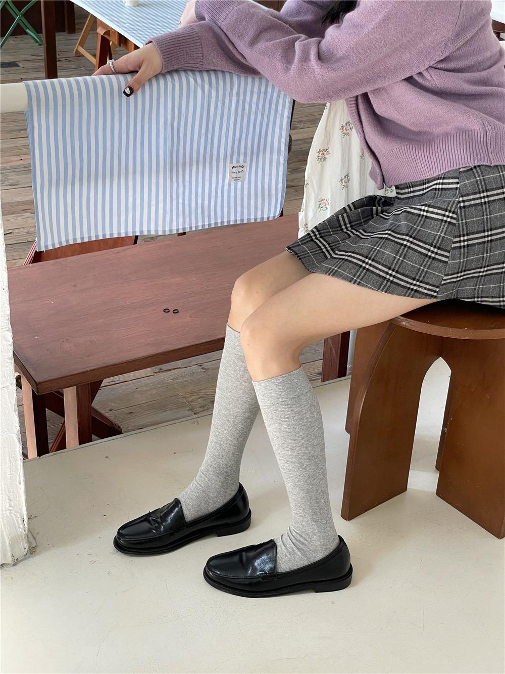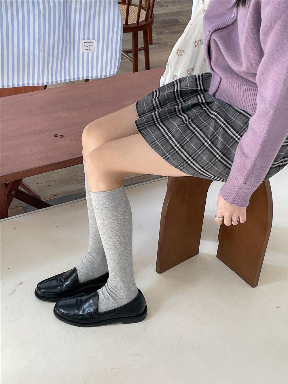 Calcetines por encima de la rodilla, medias adelgazantes JK, botas altas negras, calcetines planos con forro polar.