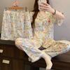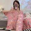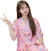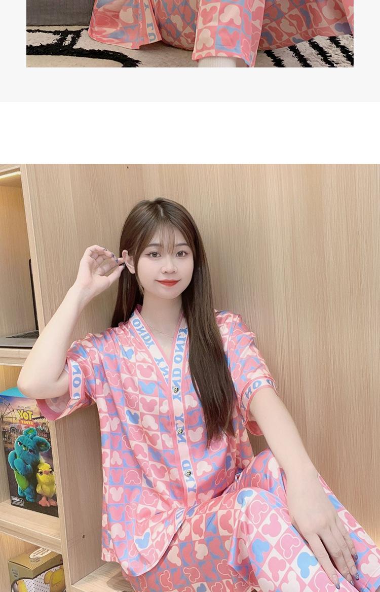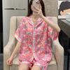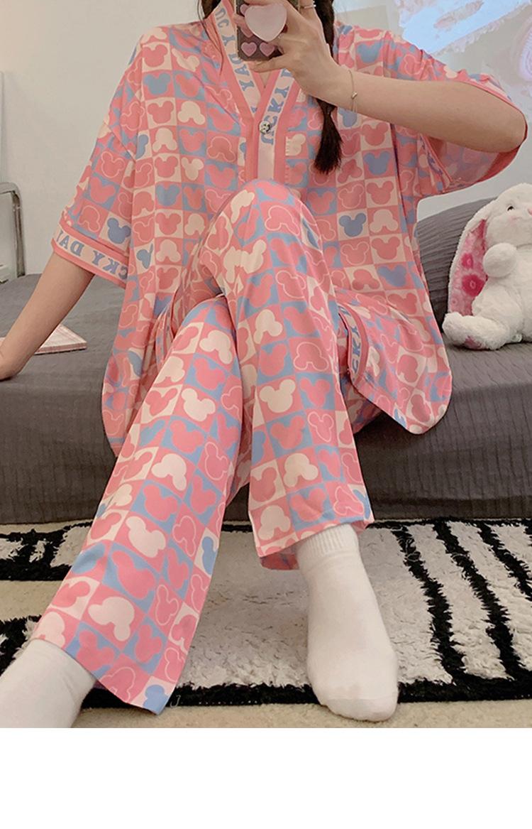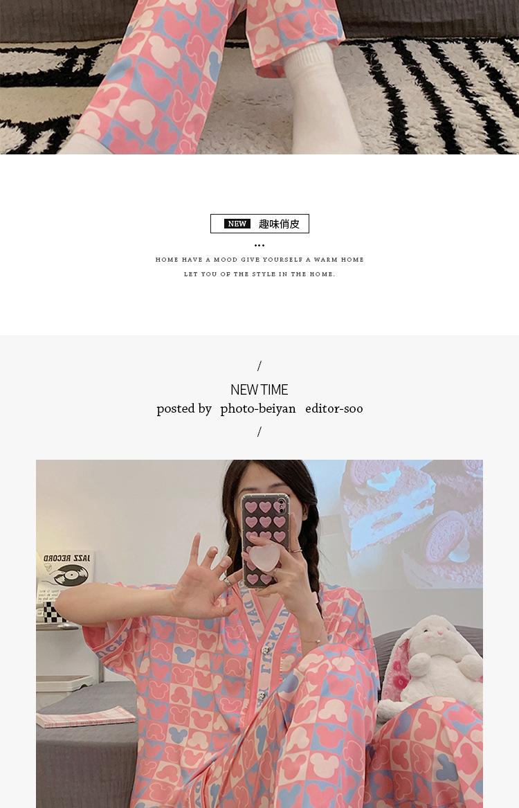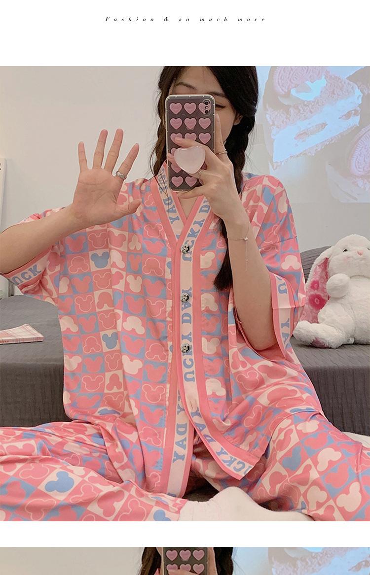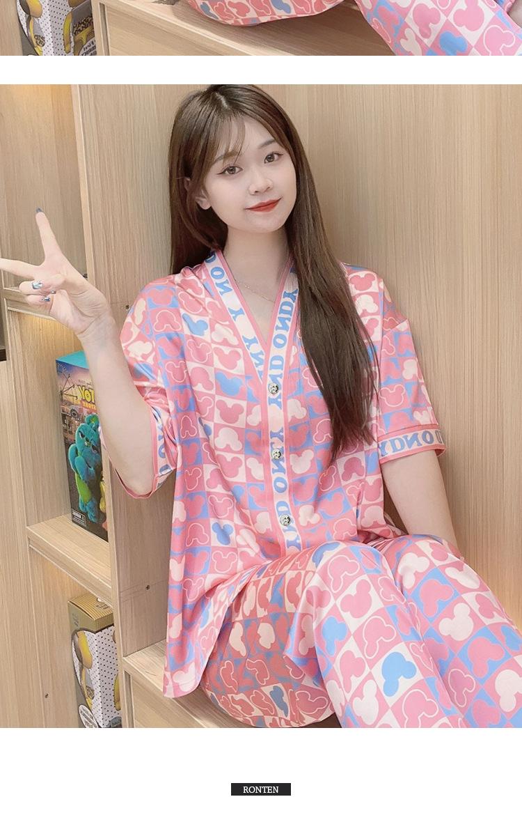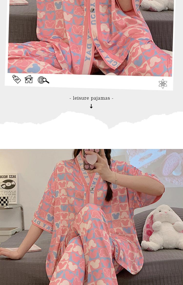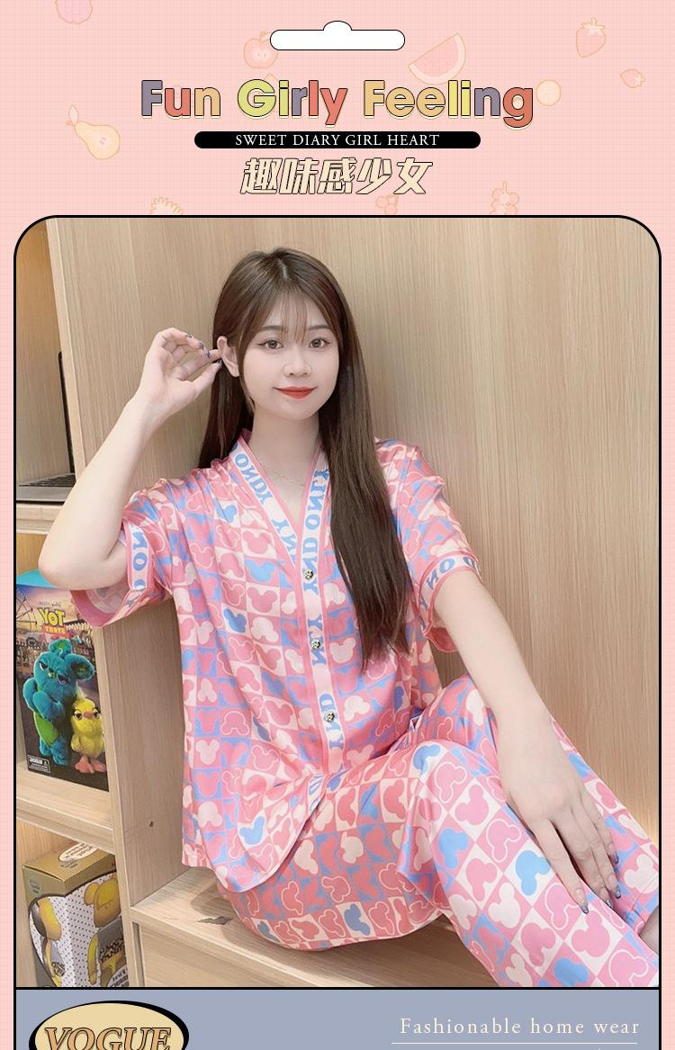 Pijamas Lindos Holgados de Seda de Hielo Estilo Dulce para Mujer Delgados de Verano de Manga Corta Pantalones Pijama Ropa para el Hogar Conjunto de Dos Piezas Venta al por Mayor