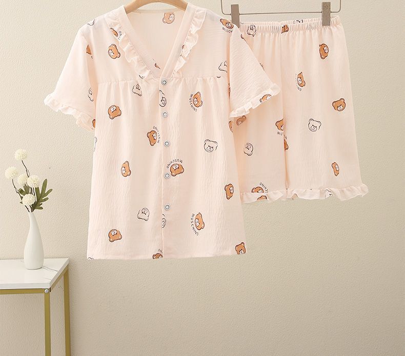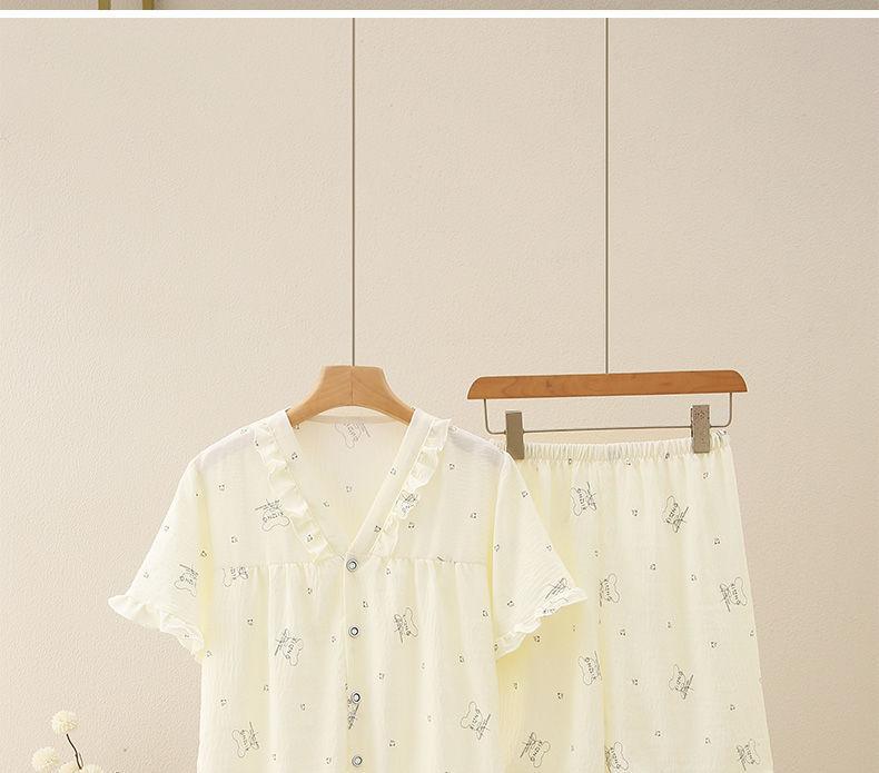 Pijamas de verano para mujer, pantalones cortos de manga corta, de algodón fino y transpirable, novedad de 2024, ropa para el hogar, traje de verano.
