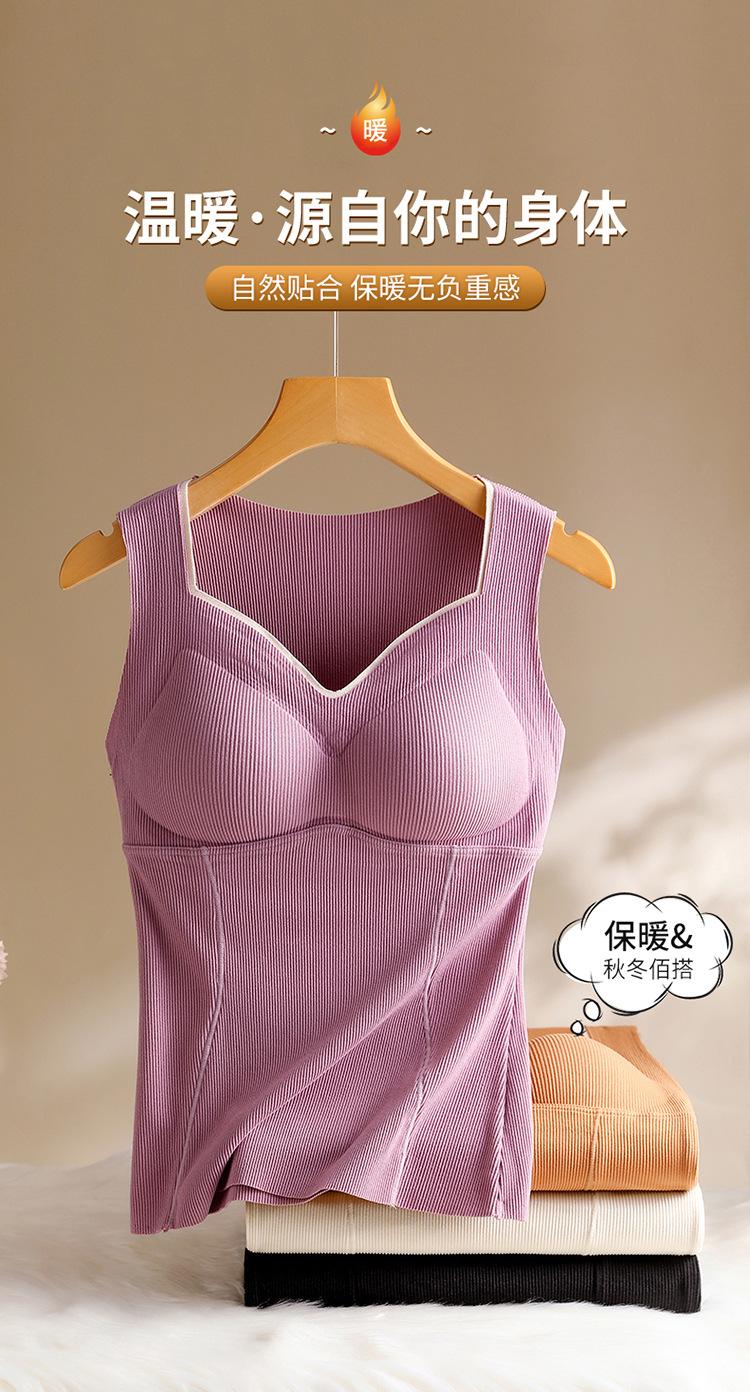 Nuevo brasier sin aros de terciopelo, chaleco térmico con calefacción, camisa base sin costuras gruesa para otoño e invierno con almohadilla en el pecho, ropa interior