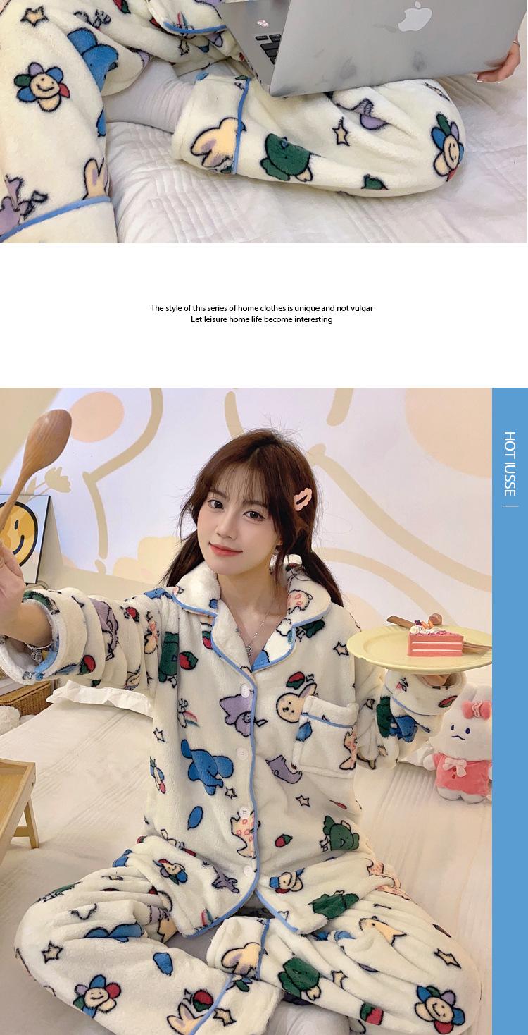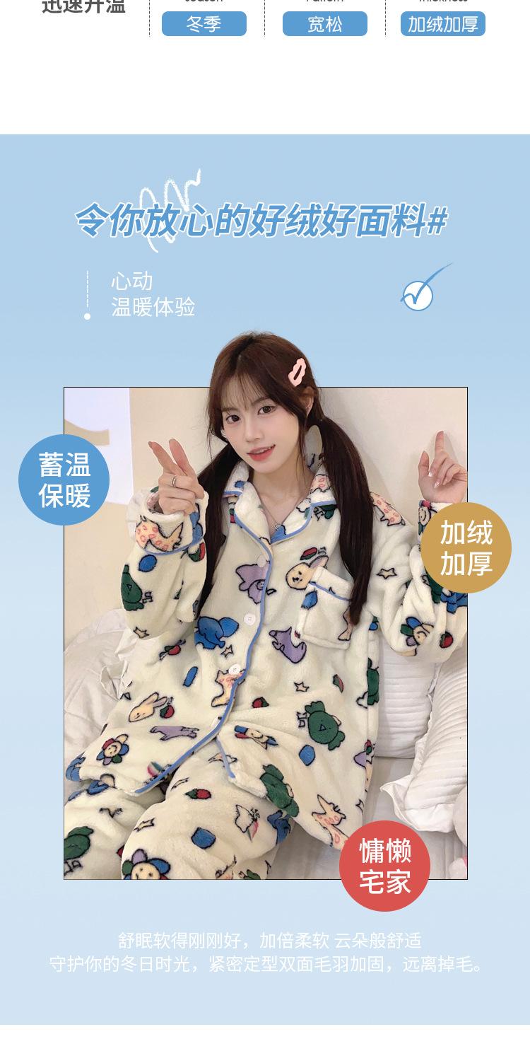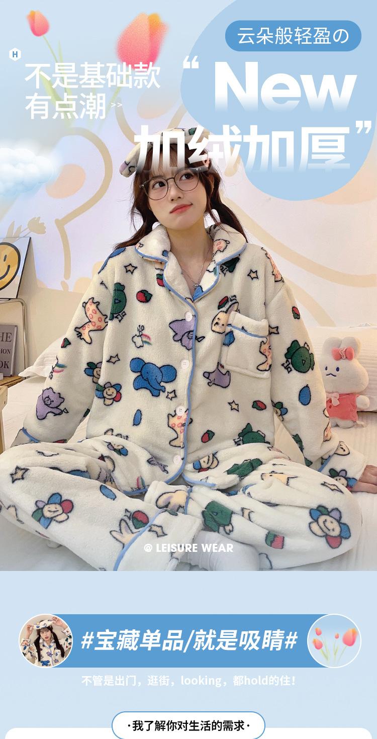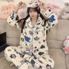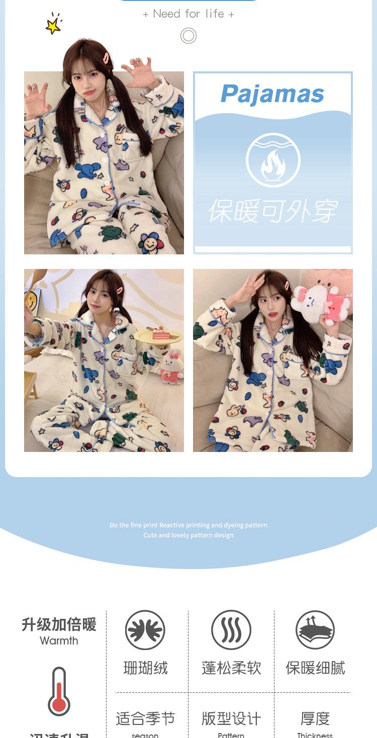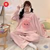 Pijamas de lana coral de viento rojo para mujer, otoño e invierno, lindos dibujos animados, franela con forro polar, ropa de hogar gruesa, traje al por mayor