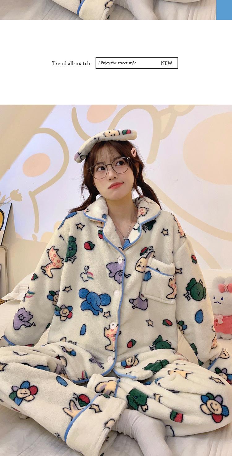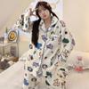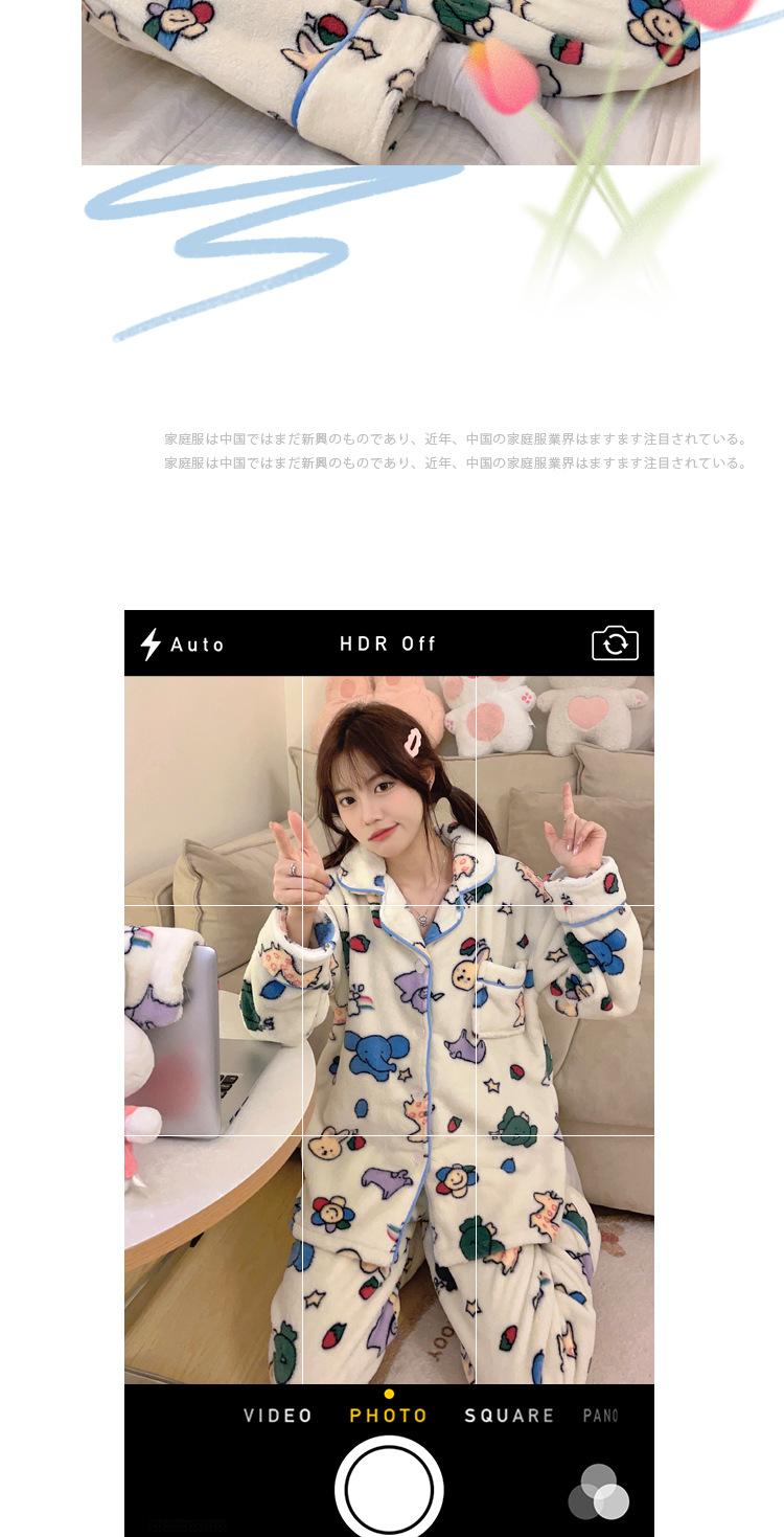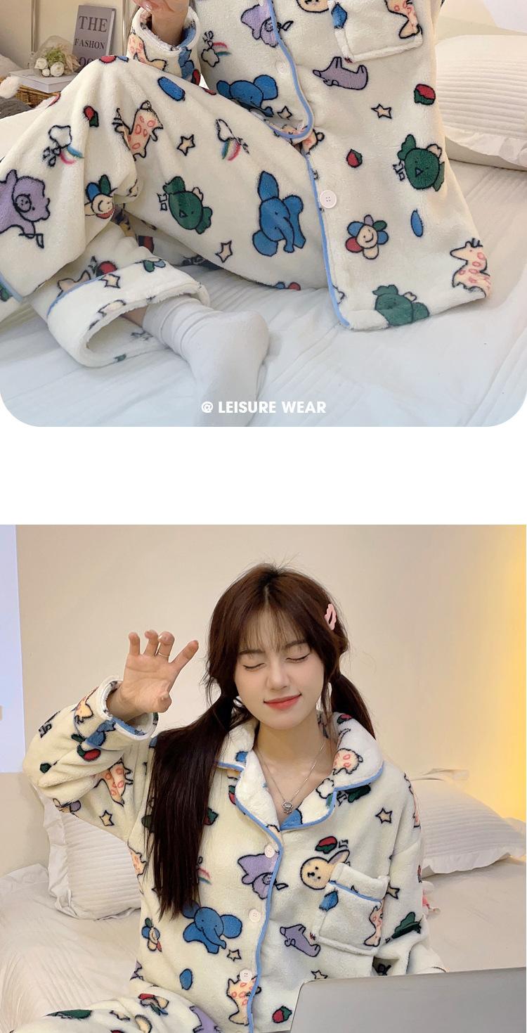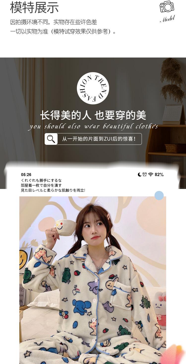 Pijamas de lana coral de viento rojo para mujer, otoño e invierno, lindos dibujos animados, franela con forro polar, ropa de hogar gruesa, traje al por mayor