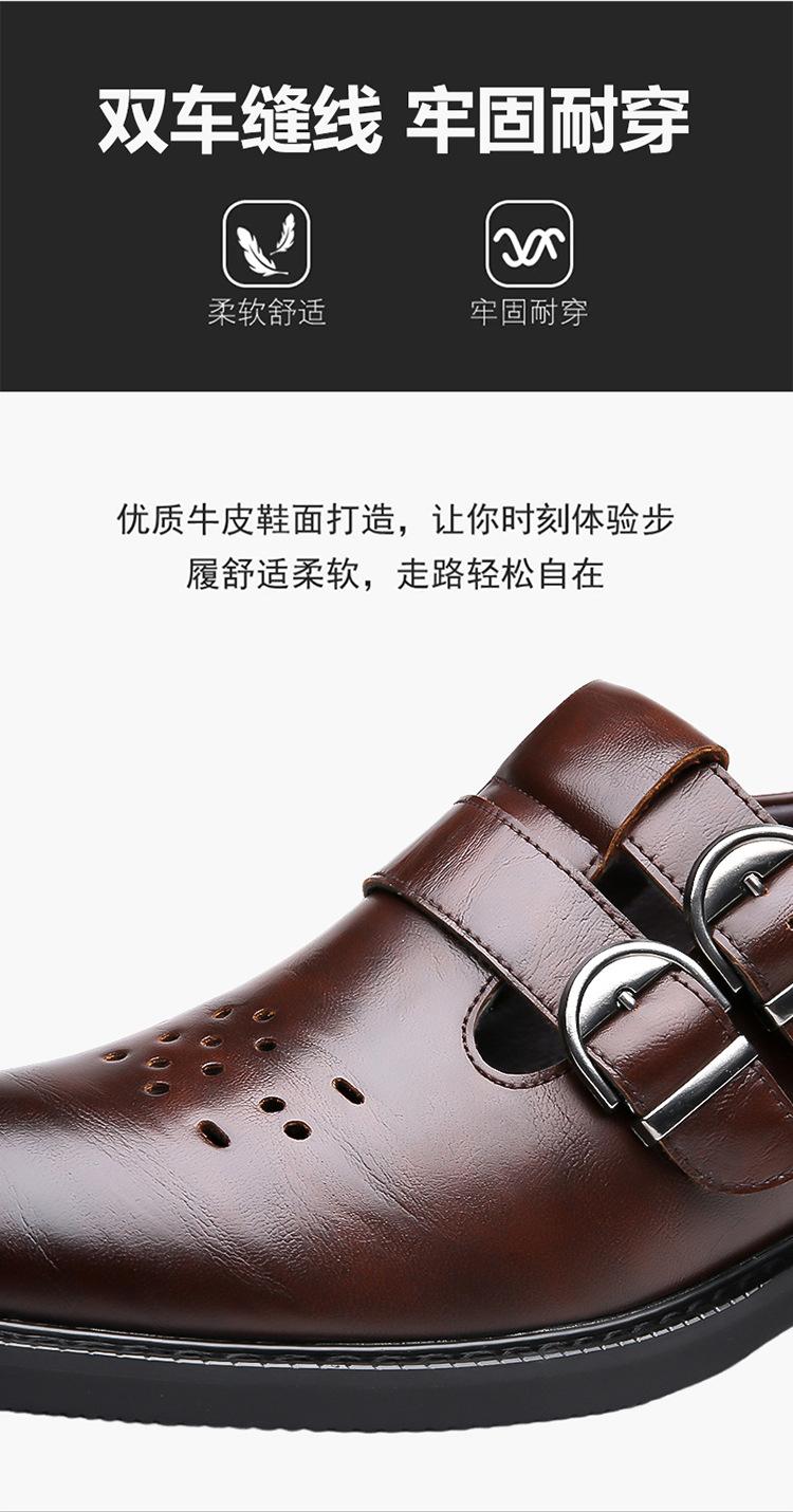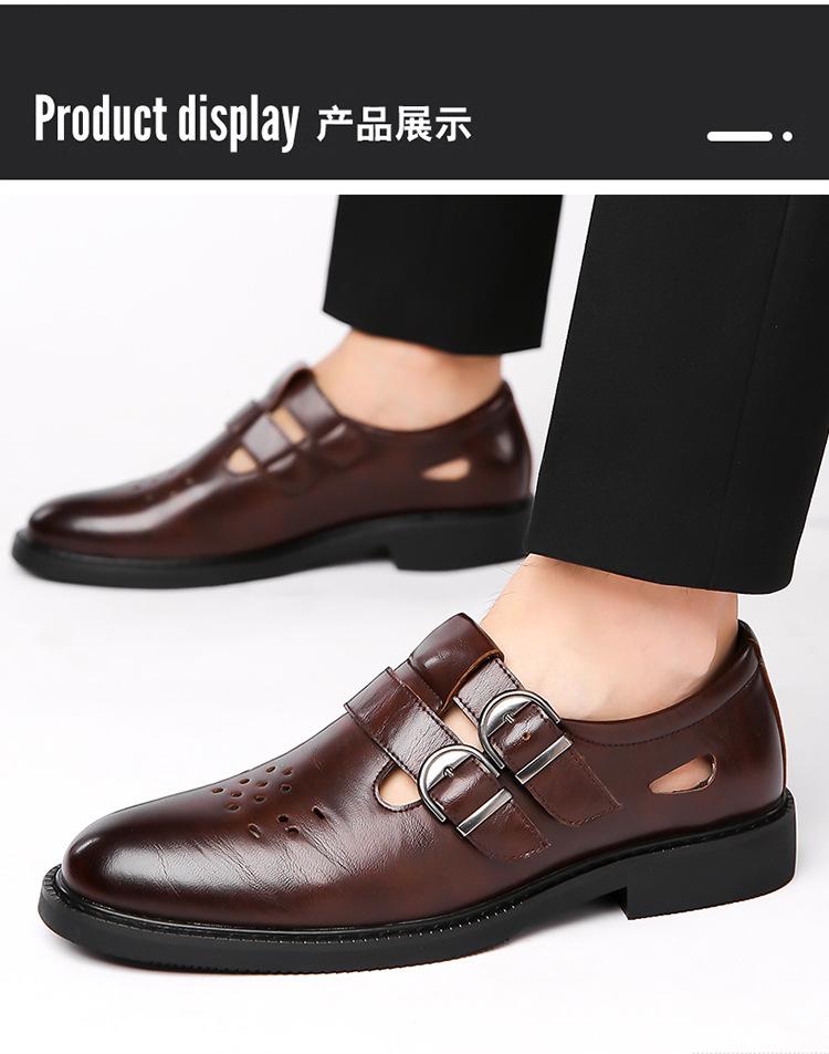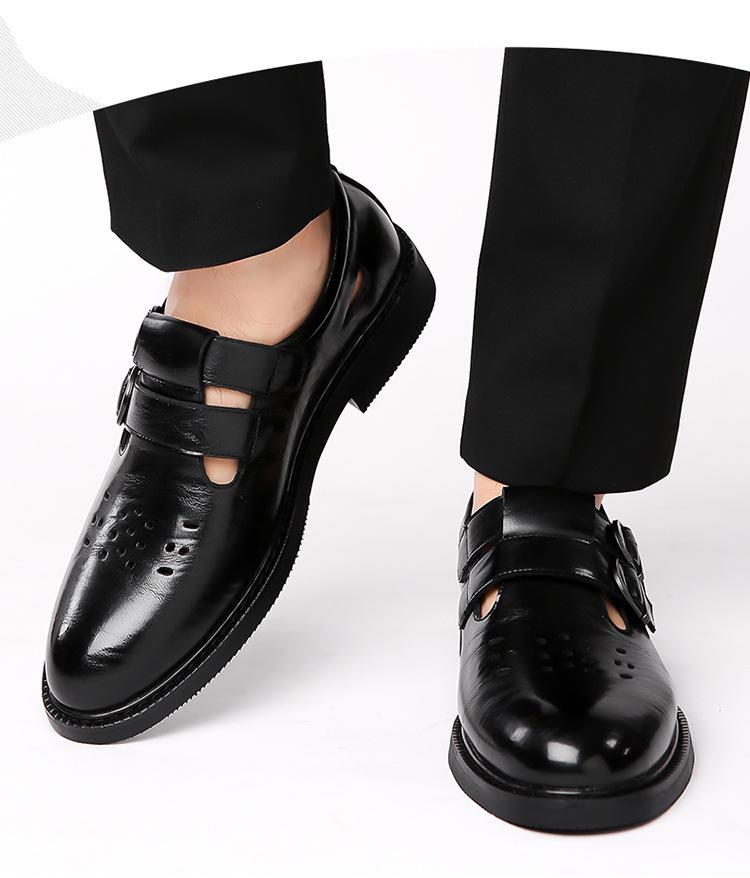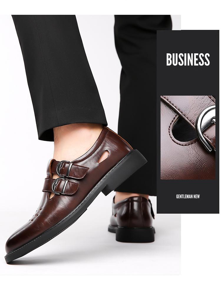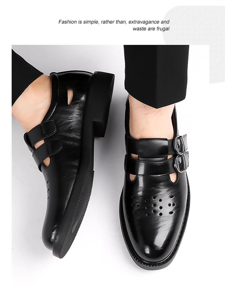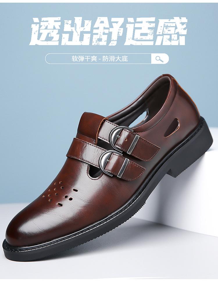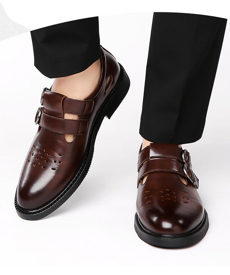 Sandalias de Hombre Cuero Genuino para Hombre Casual de Negocios Transpirables Zapatos de Agujeros Huecos Antideslizantes Suela Suave Zapatos para Papá de Mediana Edad