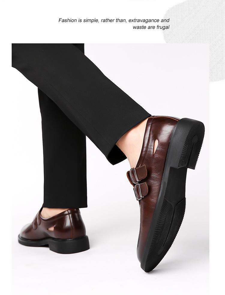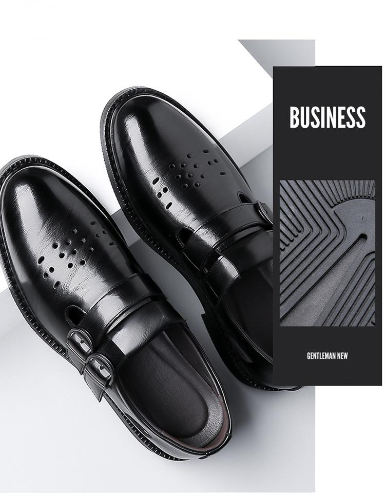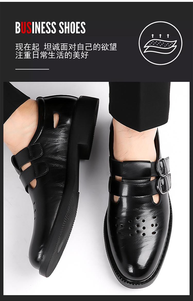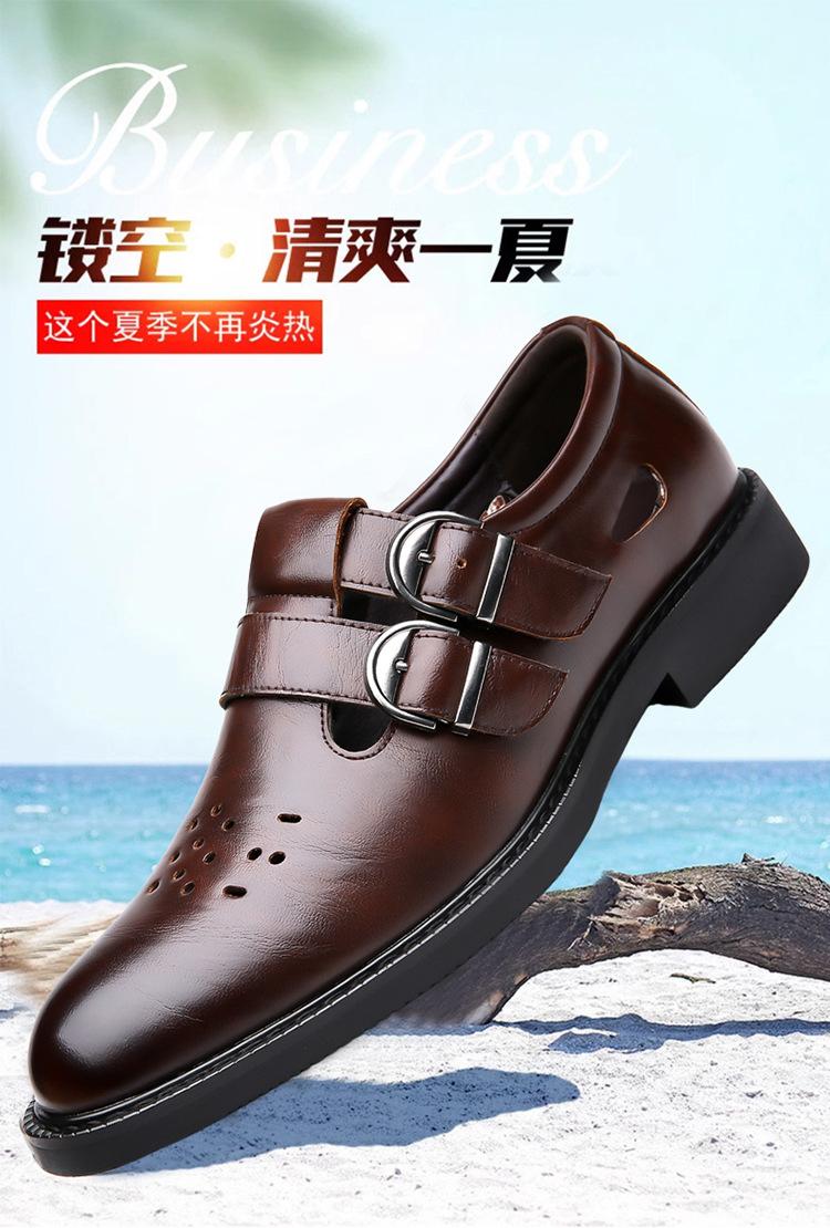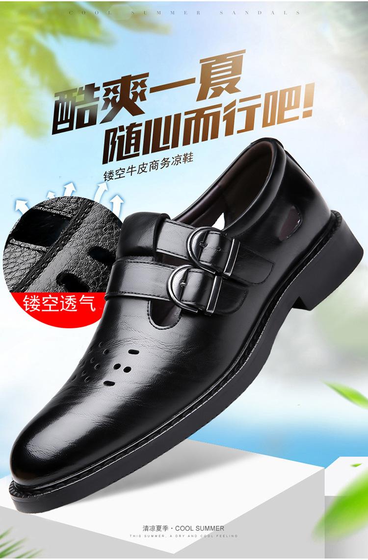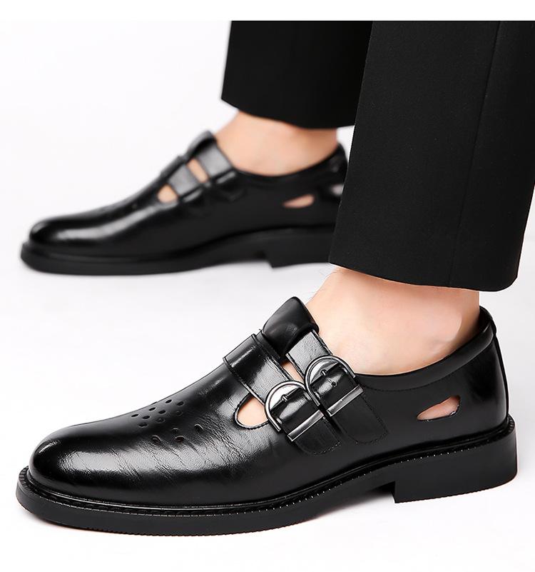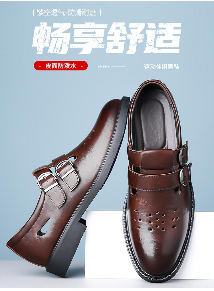 Sandalias de Hombre Cuero Genuino para Hombre Casual de Negocios Transpirables Zapatos de Agujeros Huecos Antideslizantes Suela Suave Zapatos para Papá de Mediana Edad