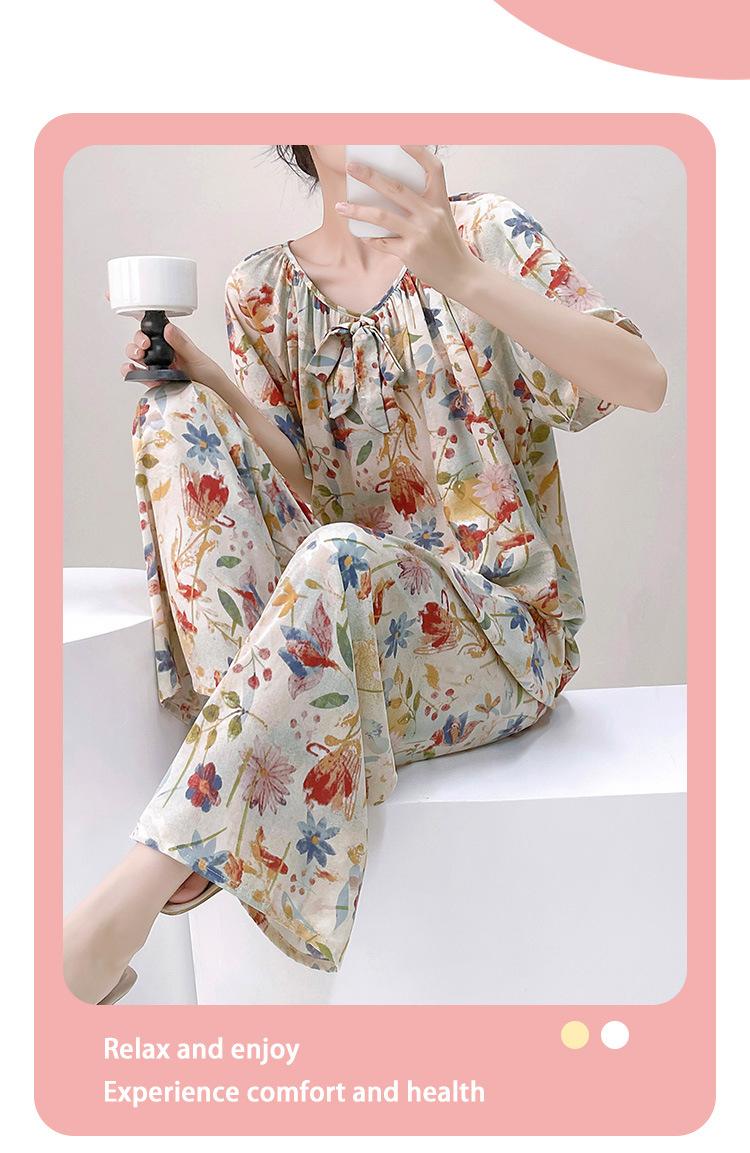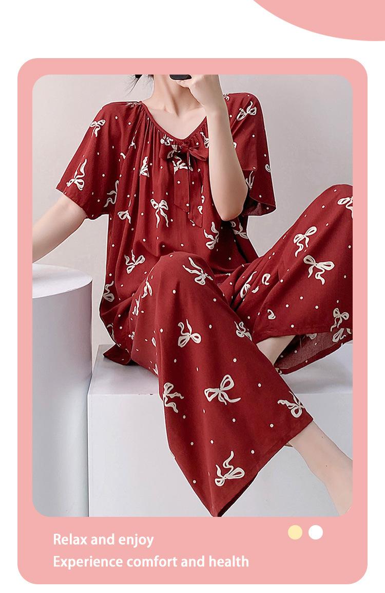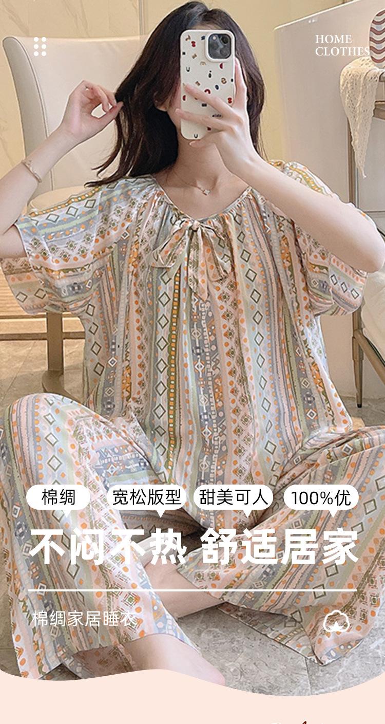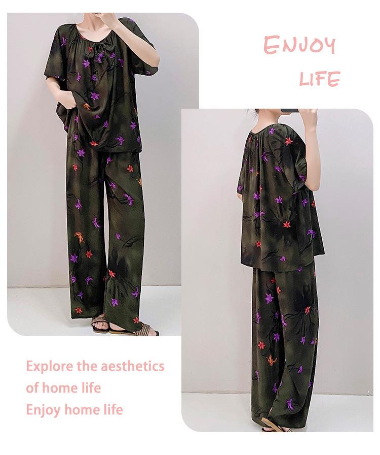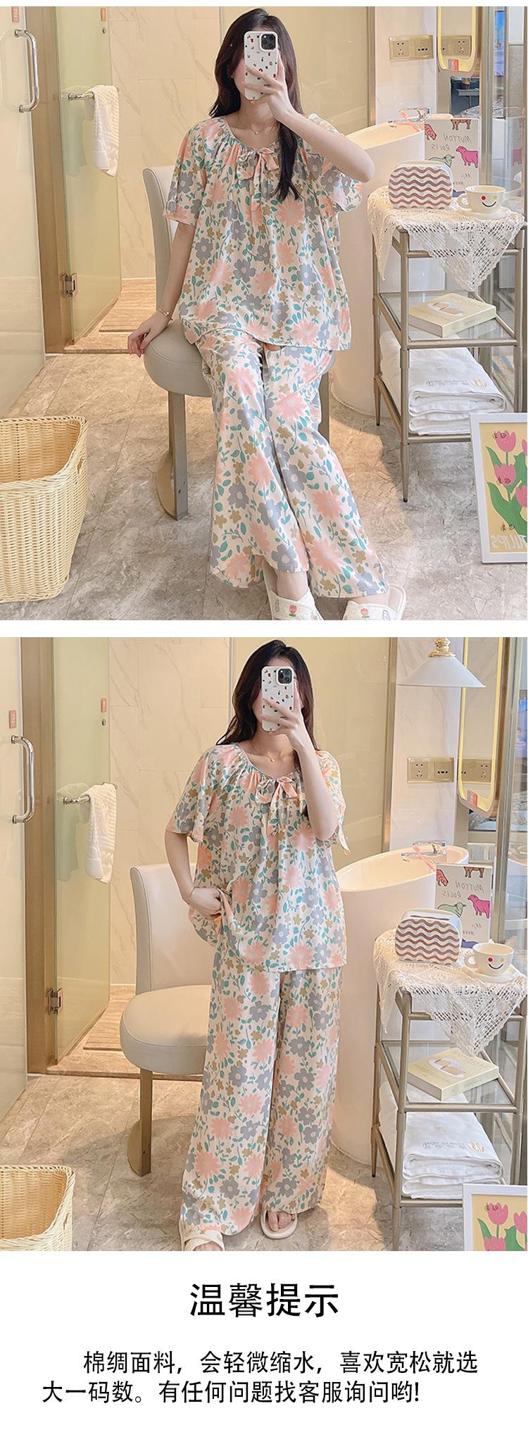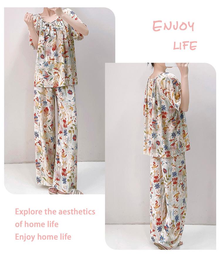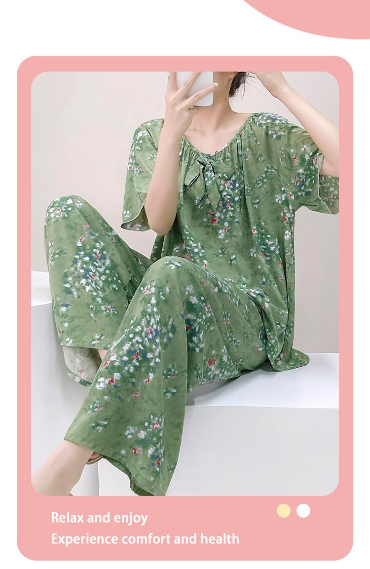 Pijamas de verano para mujer, de alta calidad, de manga corta, con pantalones anchos, de algodón y seda, ropa de casa, dulce nuevo traje de algodón y seda de estilo chino