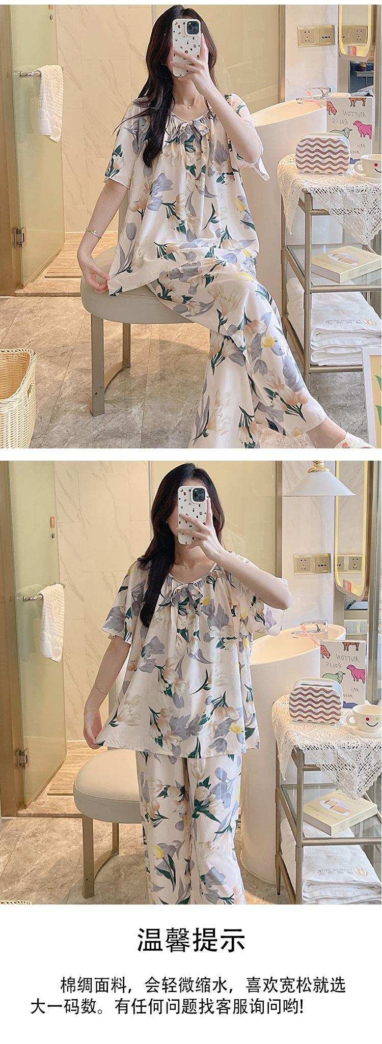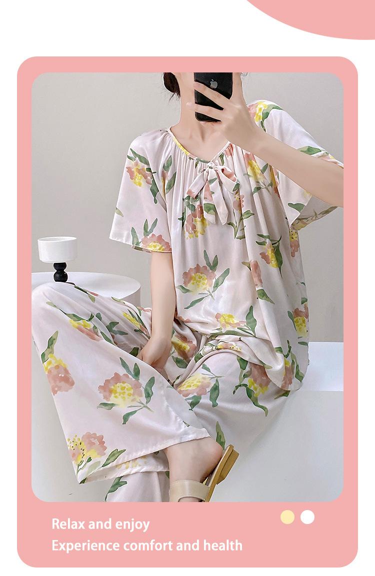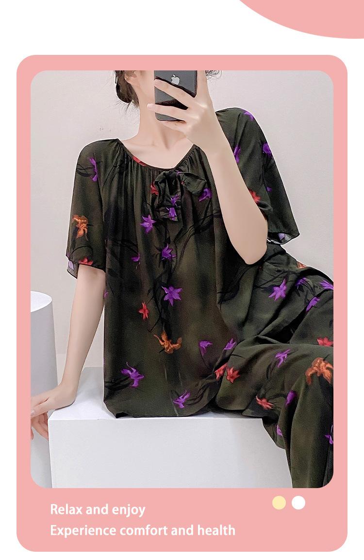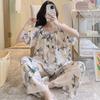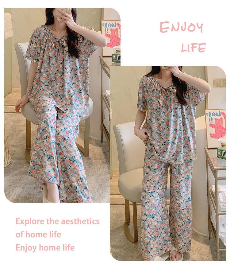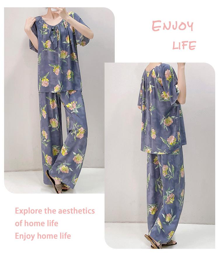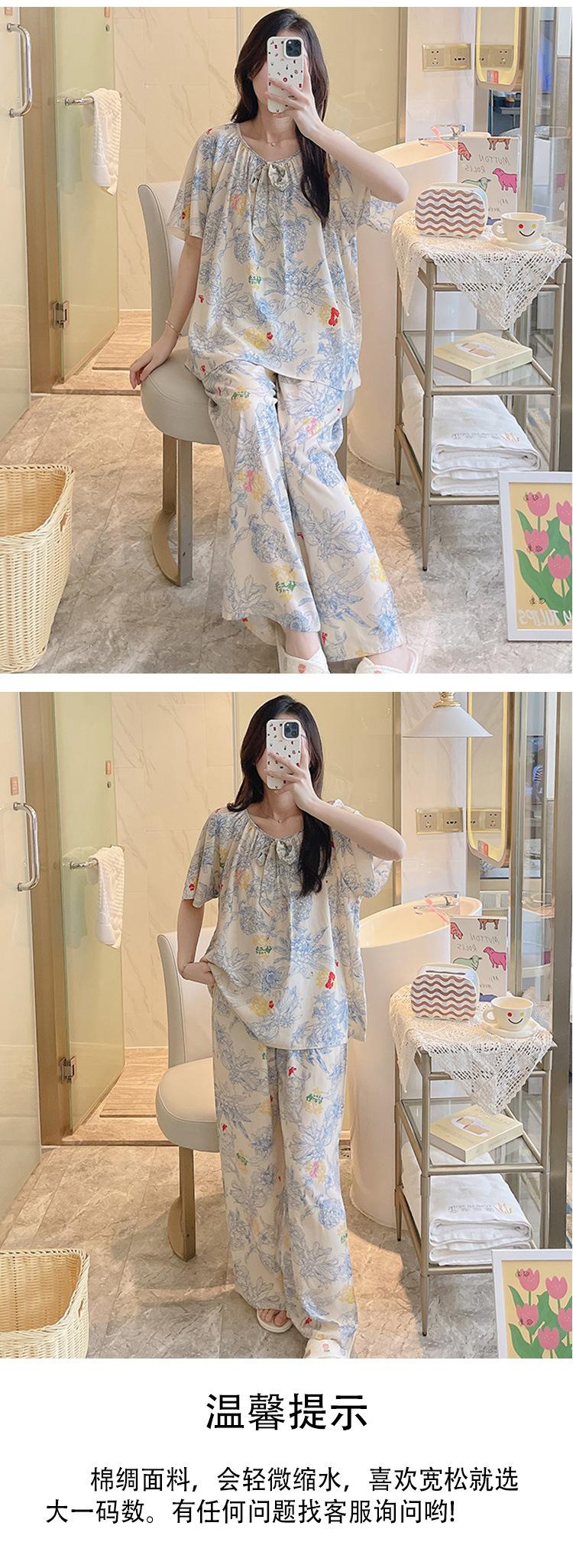 Pijamas de verano para mujer, de alta calidad, de manga corta, con pantalones anchos, de algodón y seda, ropa de casa, dulce nuevo traje de algodón y seda de estilo chino