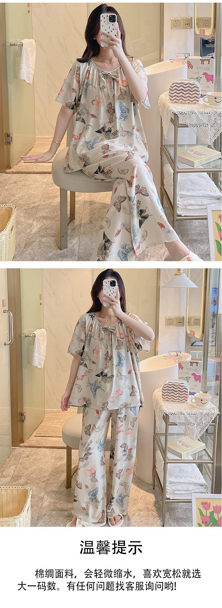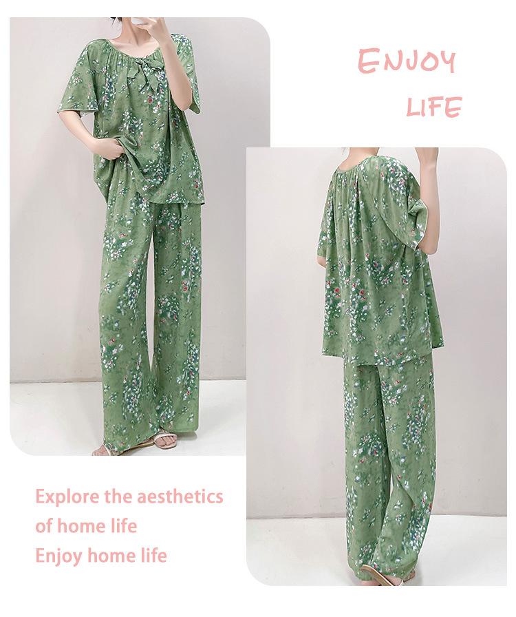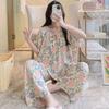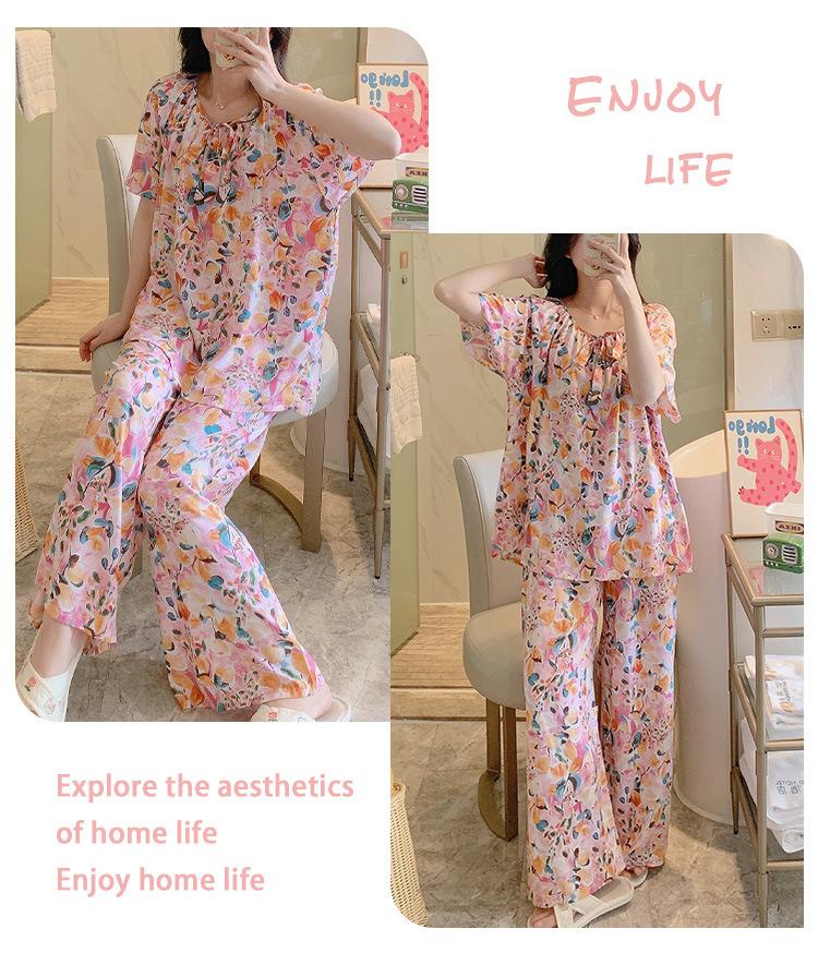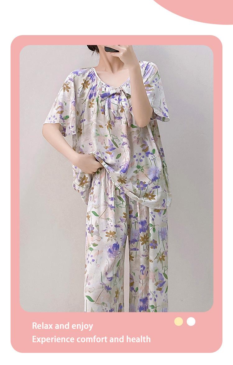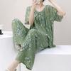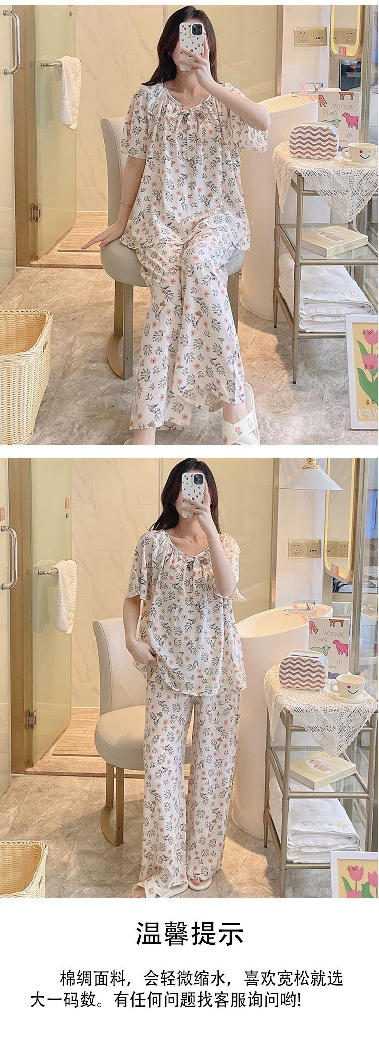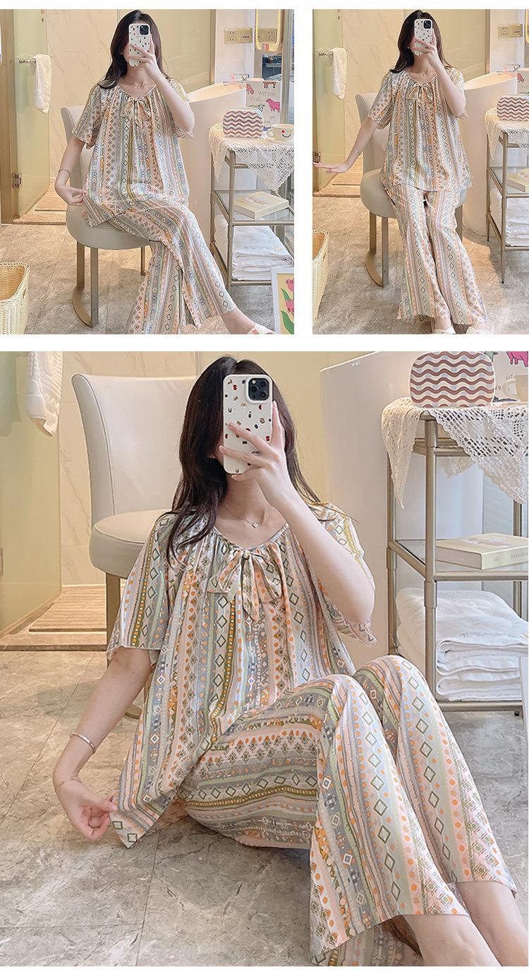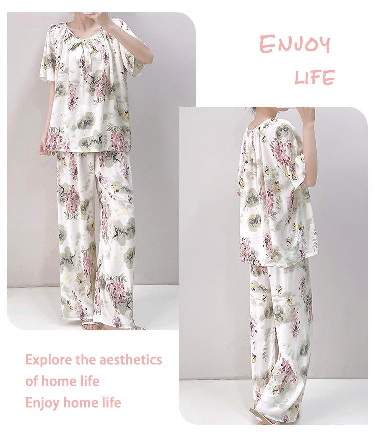 Pijamas de verano para mujer, de alta calidad, de manga corta, con pantalones anchos, de algodón y seda, ropa de casa, dulce nuevo traje de algodón y seda de estilo chino