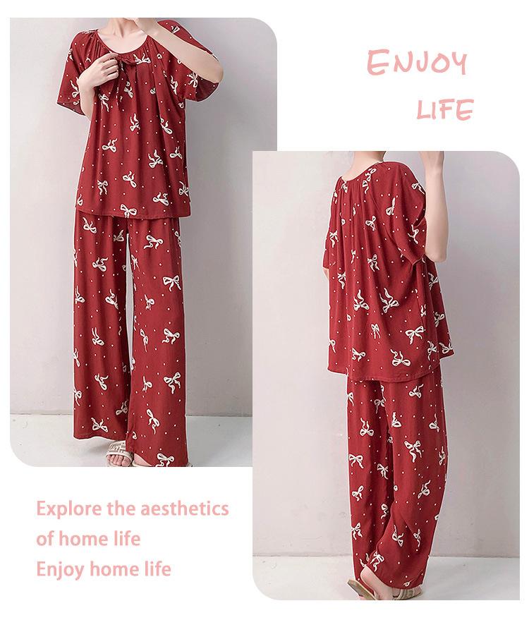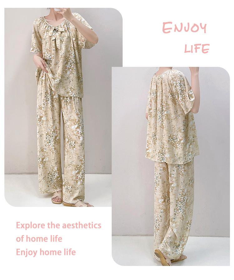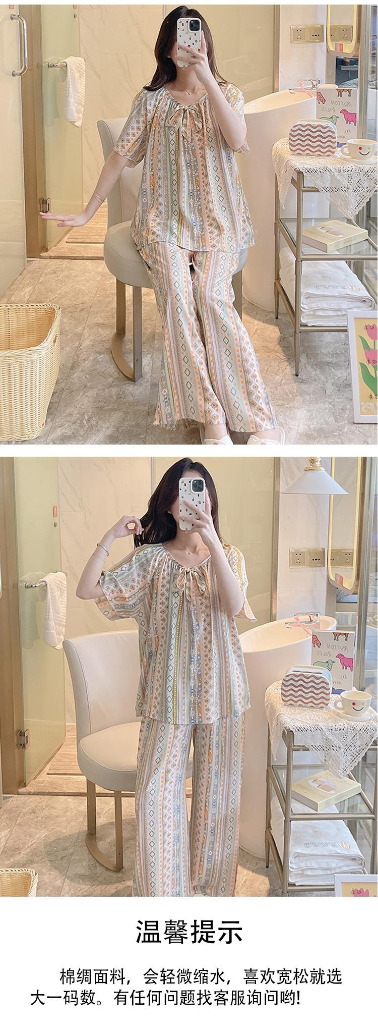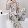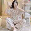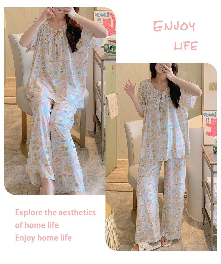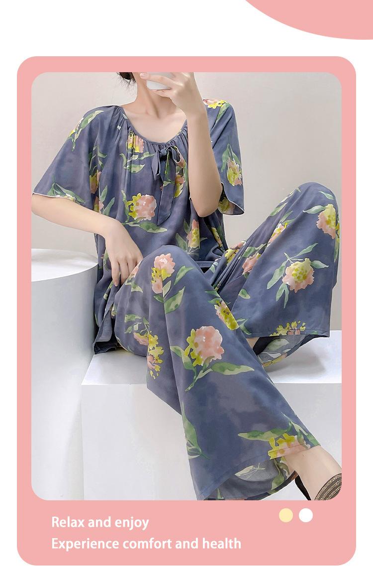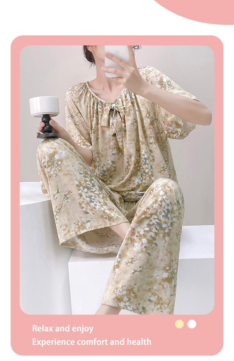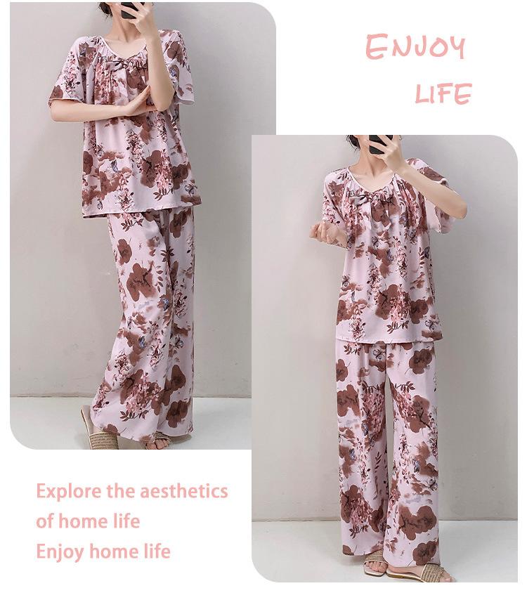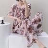 Pijamas de verano para mujer, de alta calidad, de manga corta, con pantalones anchos, de algodón y seda, ropa de casa, dulce nuevo traje de algodón y seda de estilo chino